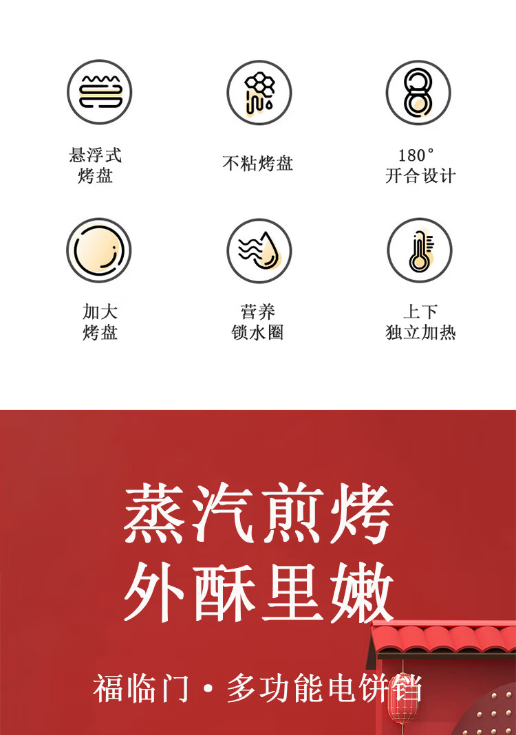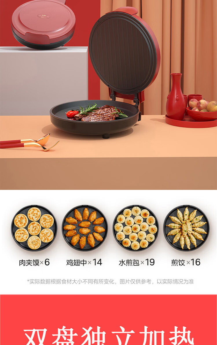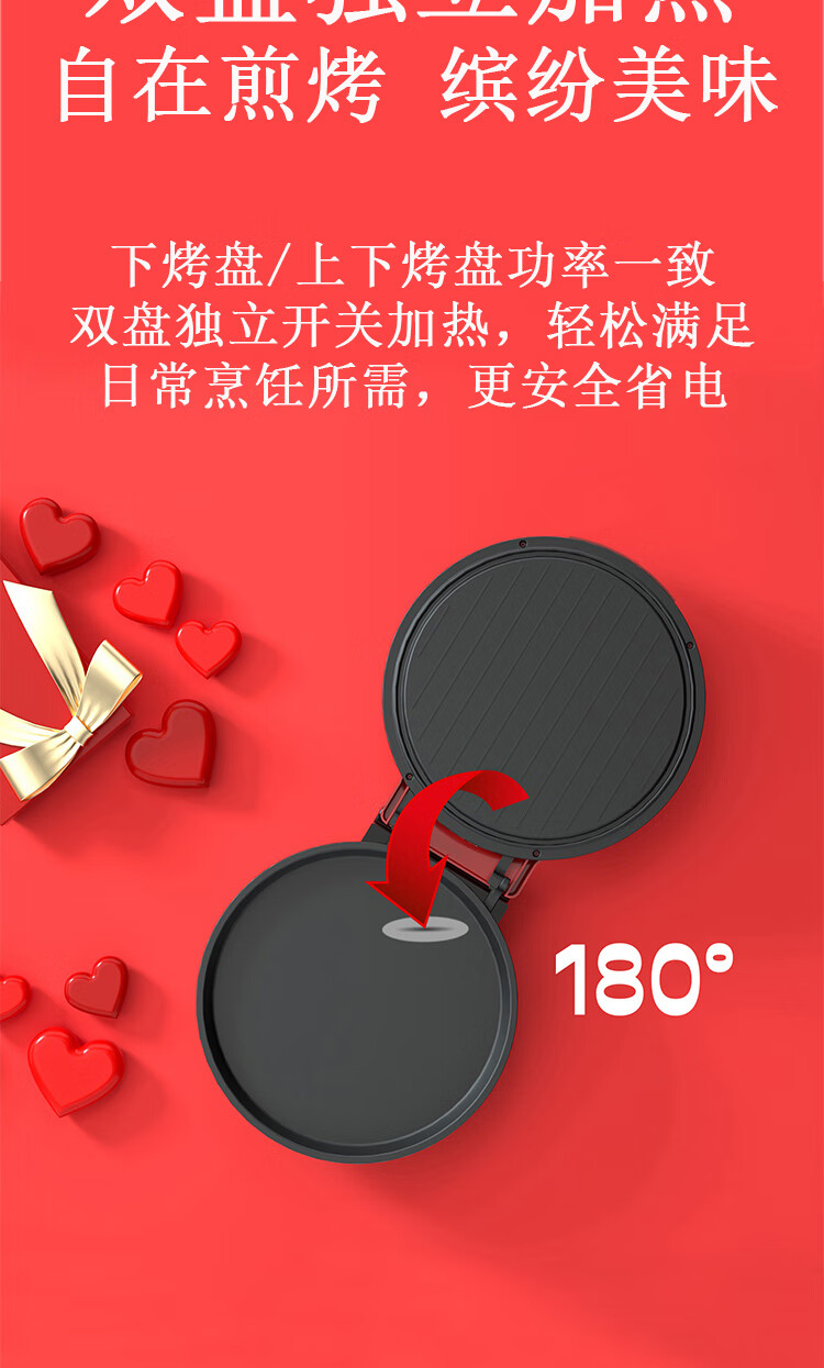 都市太太都市太太福临门多功能电饼铛家用煎饼锅煎烤机烙饼锅上下盘双面加热早餐机