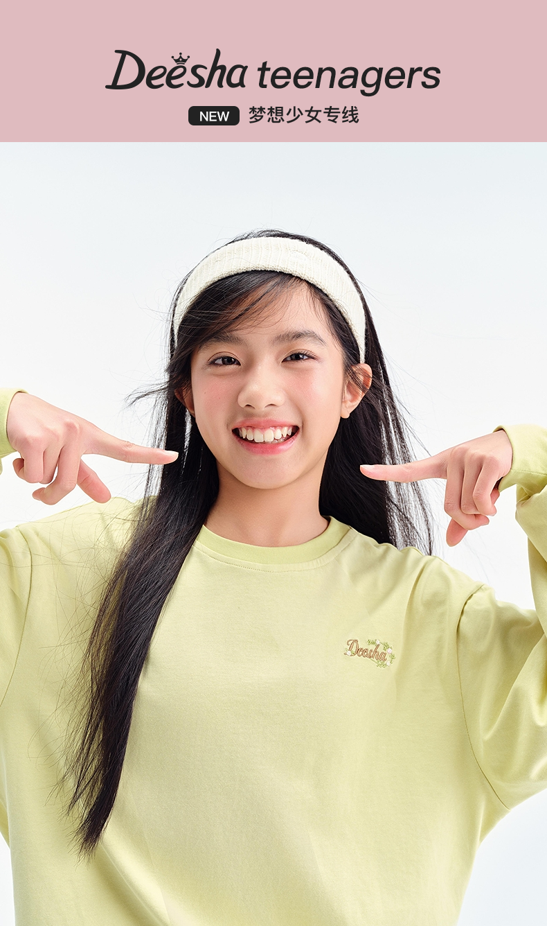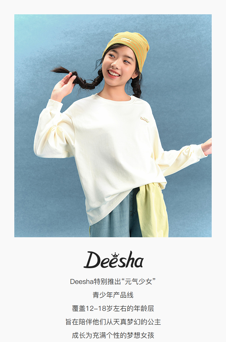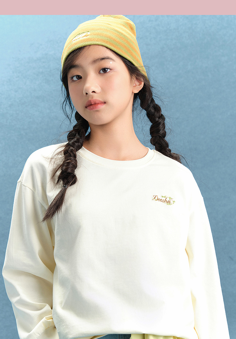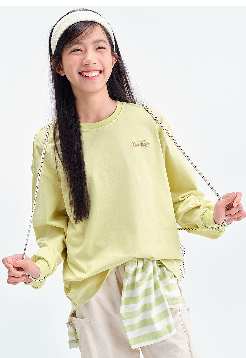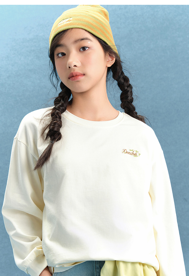 笛莎Deesha青少年女童T恤2025春季女童精致绣花基础长袖T恤