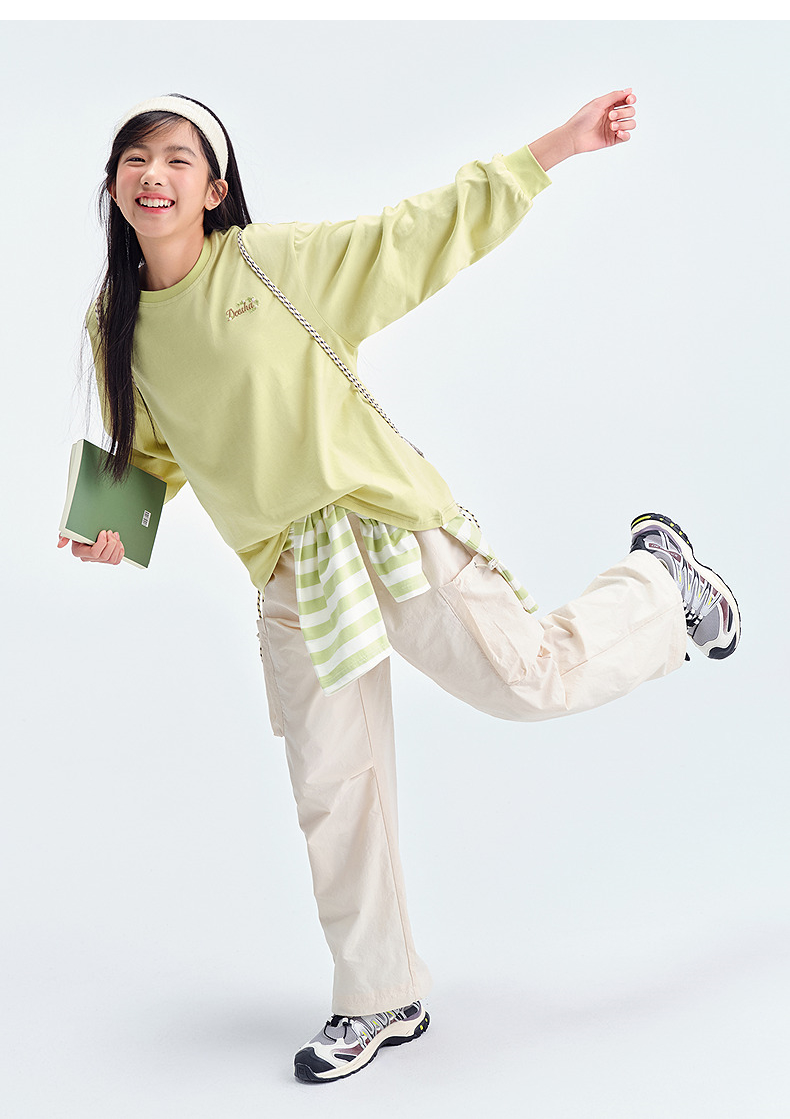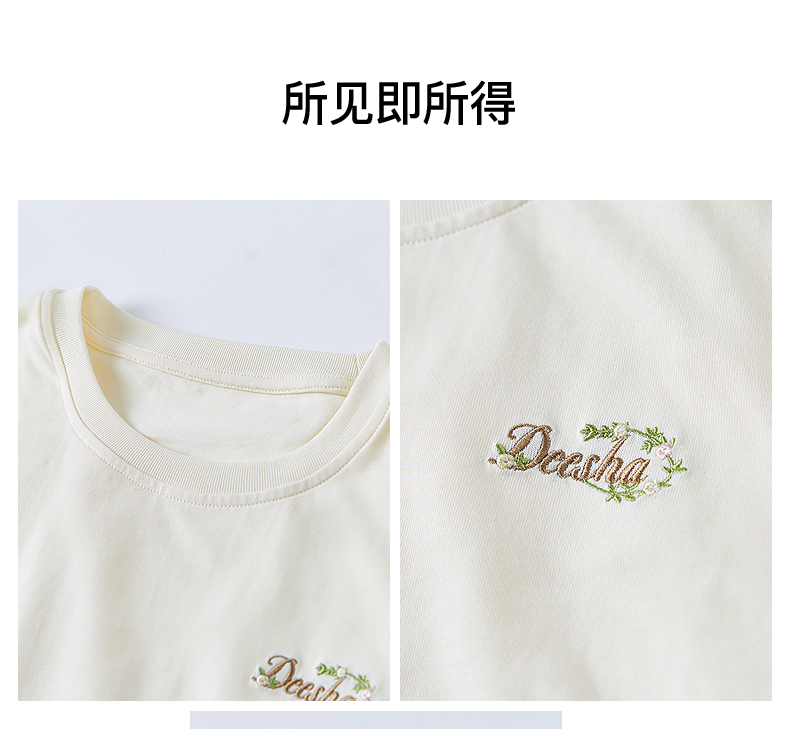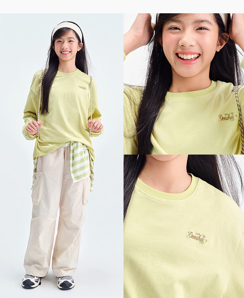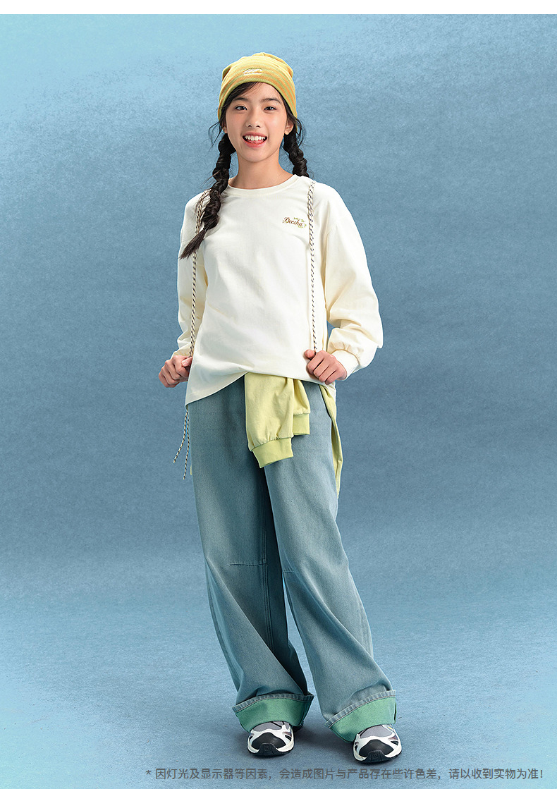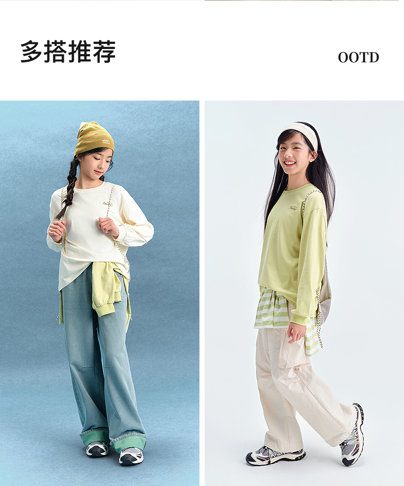 笛莎Deesha青少年女童T恤2025春季女童精致绣花基础长袖T恤