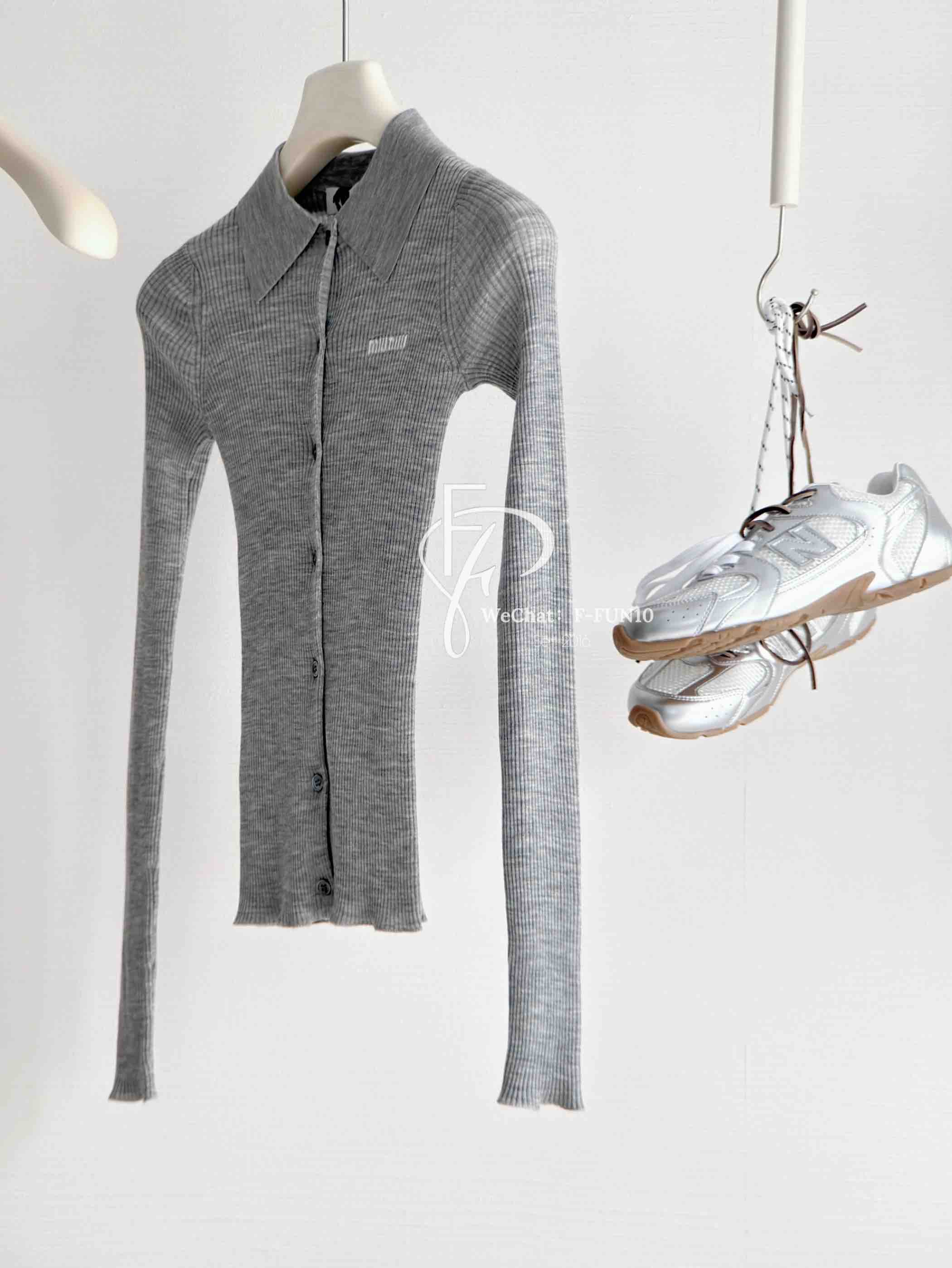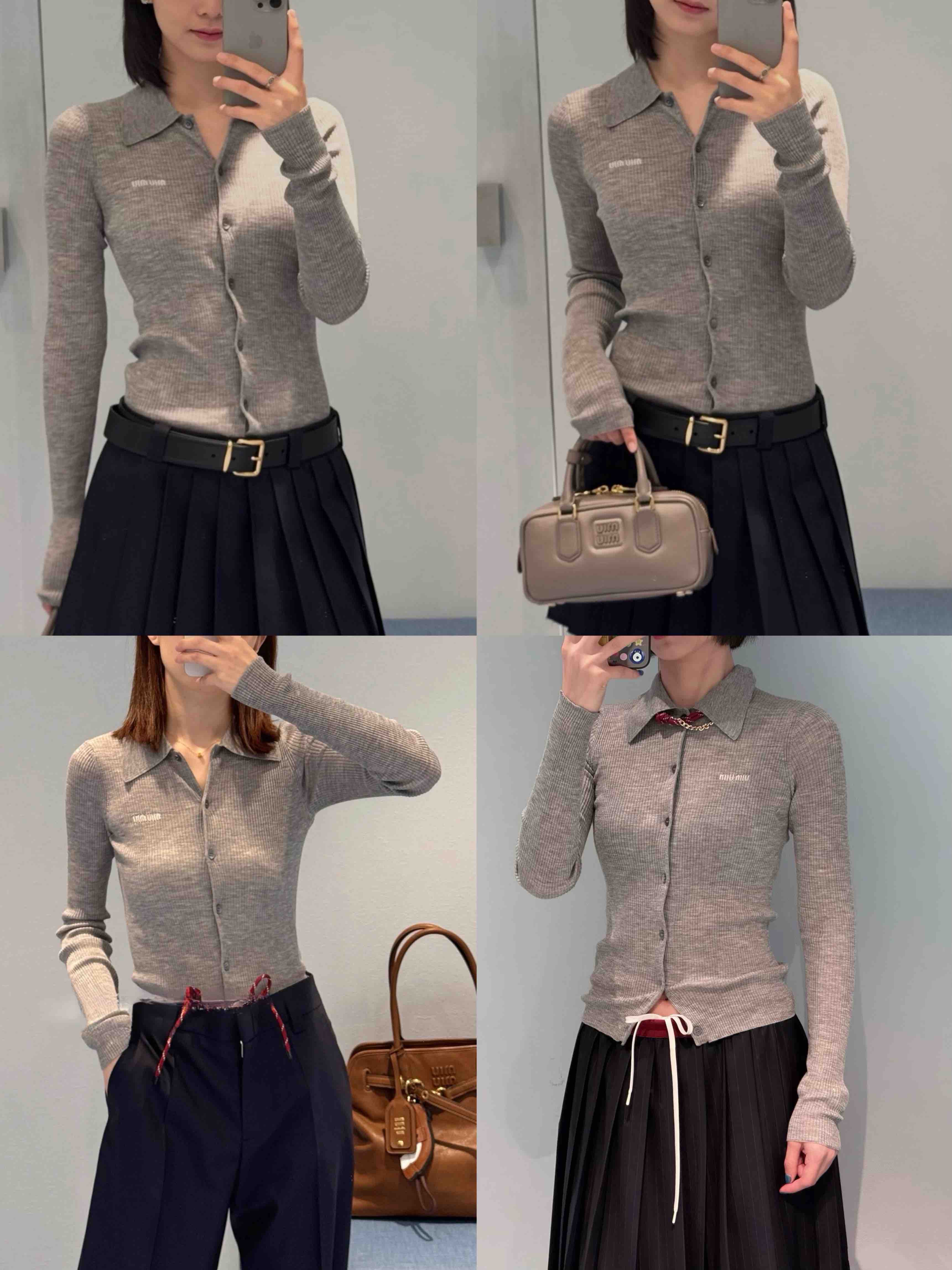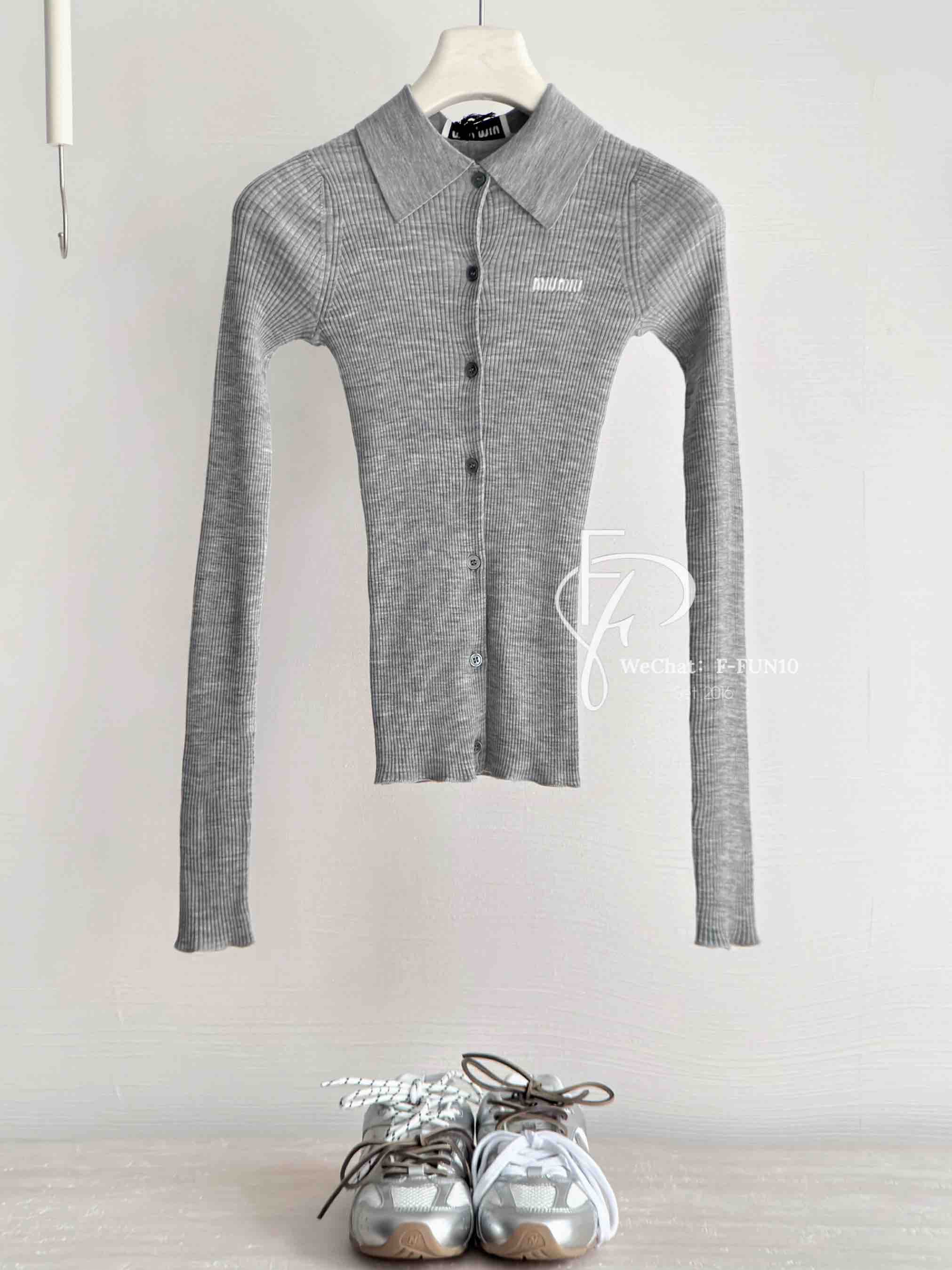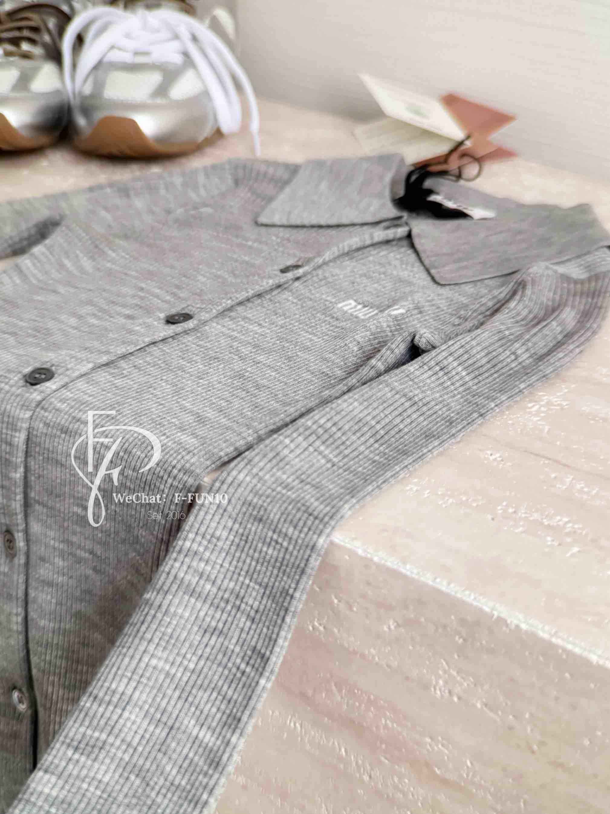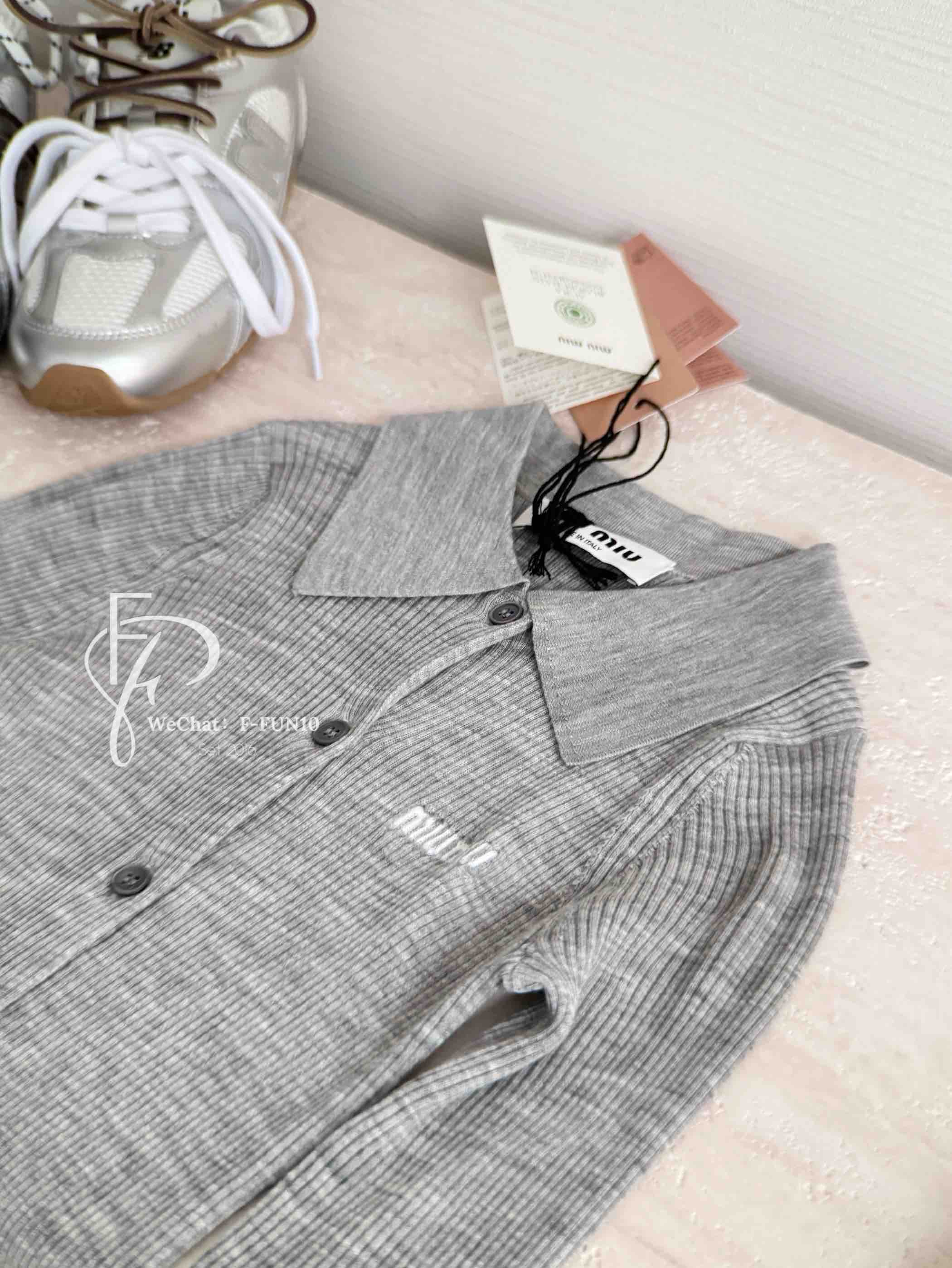MIU-S 藏蓝菱格纹羊绒开衫.