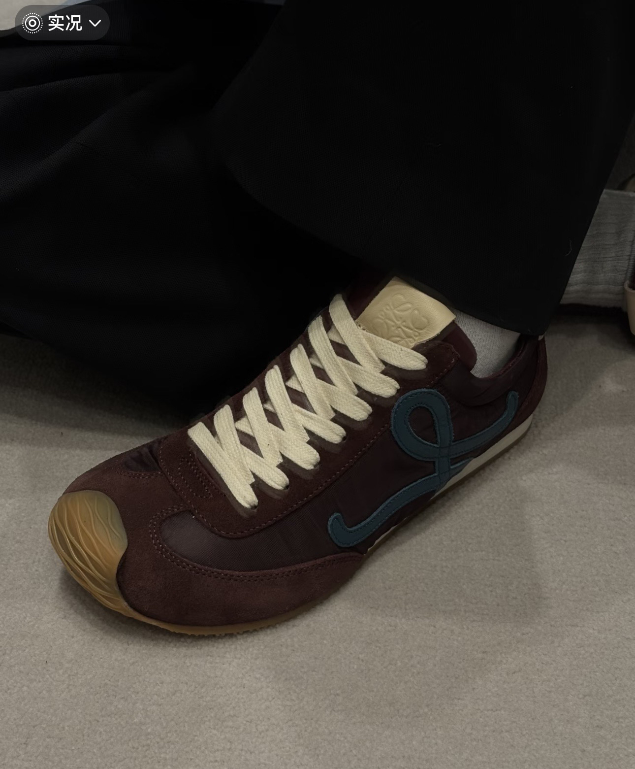 头层牛皮拼接磨砂皮,侧边全皮徽标logo,写意流畅,上脚轻便好跑的不得了