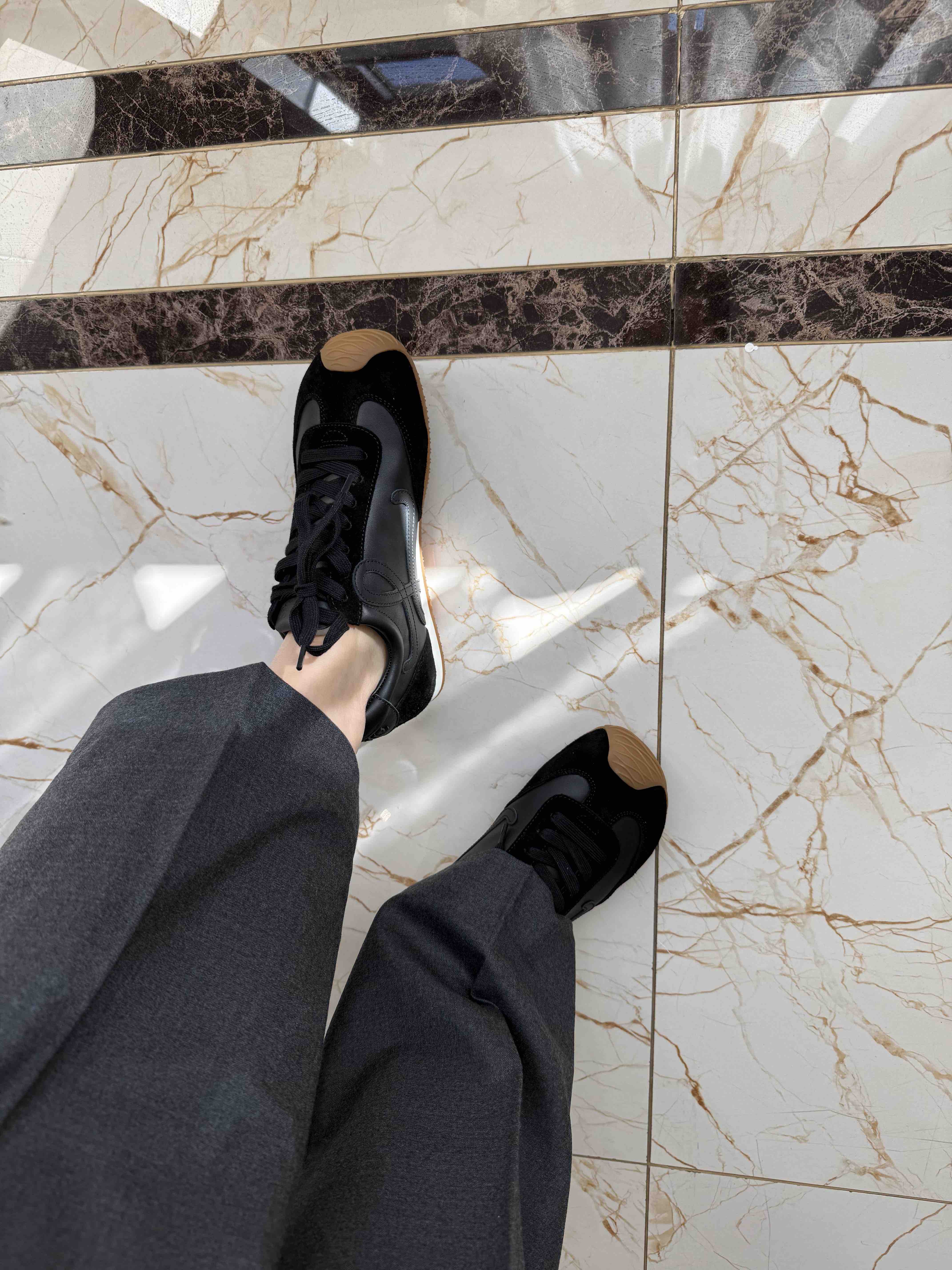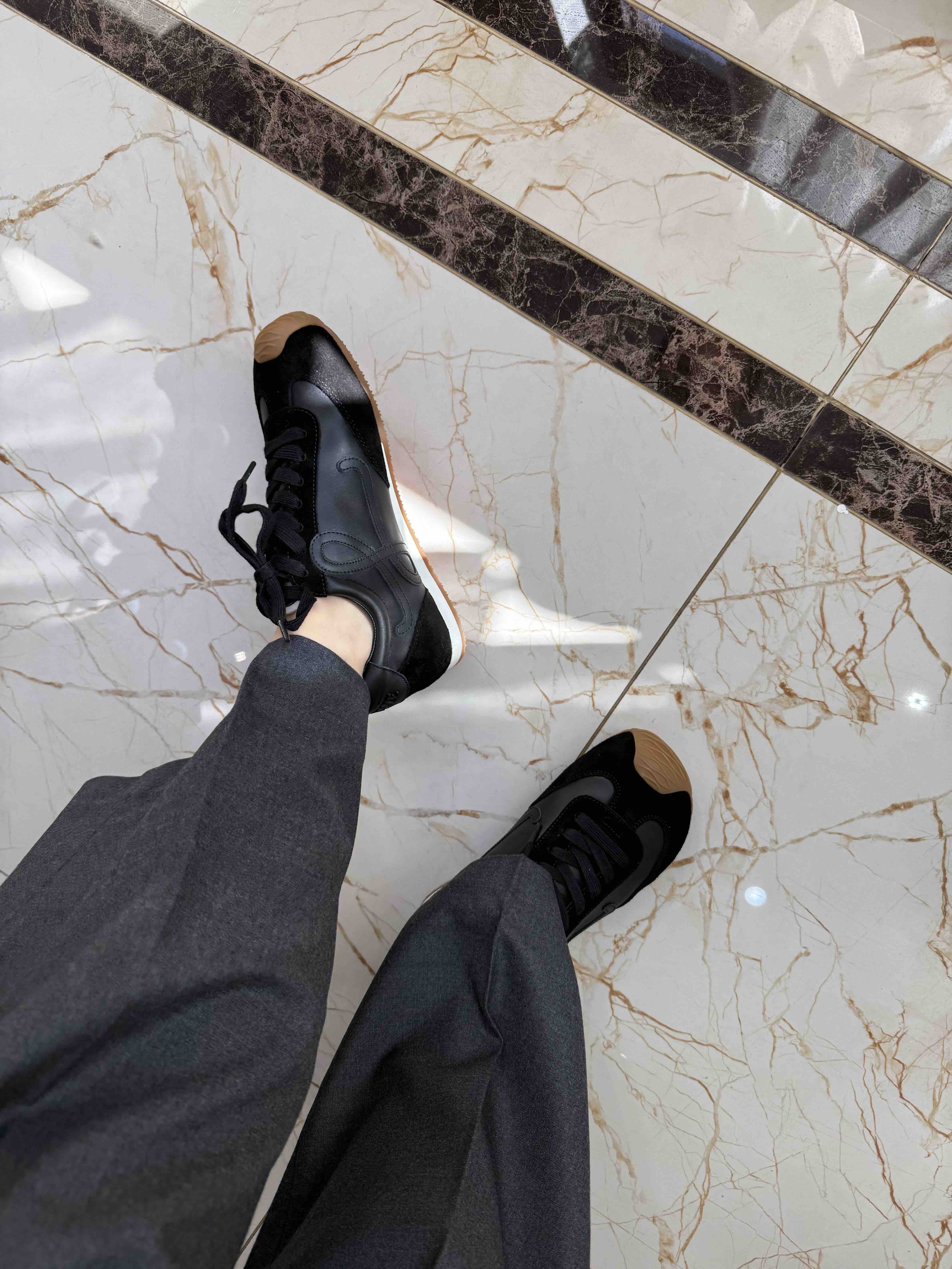 肥脚36.5穿37还是偏大,说明号很足很足,不要选大,35-45码,虽然是薄底,跟高2.5估计有的了。年轻人的轻快利落感觉,Ballet Runner 系列,王炸阿甘鞋,不吹牛的话,没有输过谁?