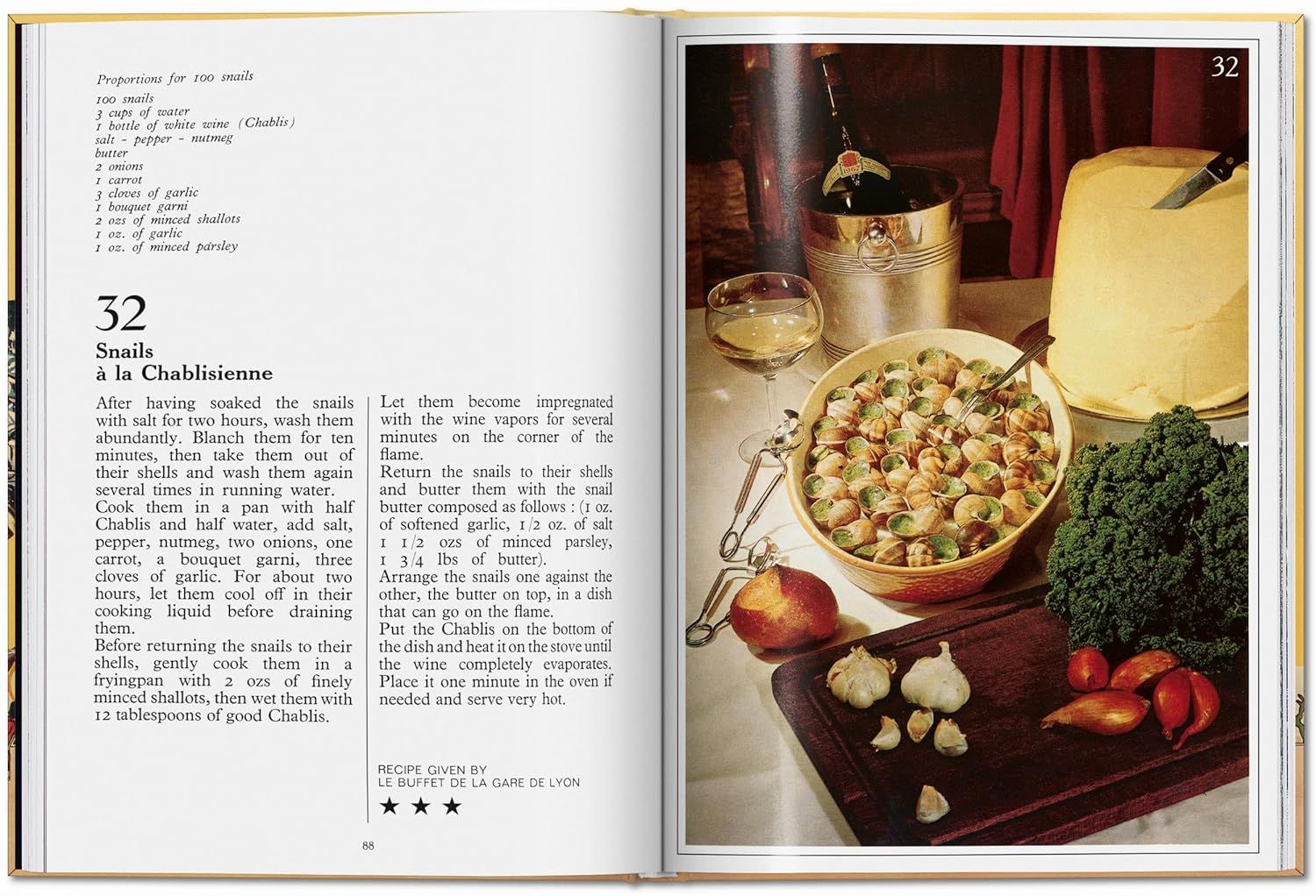 所有这些丰富的食谱都可以在家里烹饪,不过有些需要熟练的技巧和充足的储备。这是由法国名厨主理的老派美食。无论多么丰盛,好味道永远不会过时。TASCHEN 将这本极为罕见的书提供给广大读者,为今天的厨房带来了一件艺术品、一本实用的烹饪书和一次多感官的探险。
