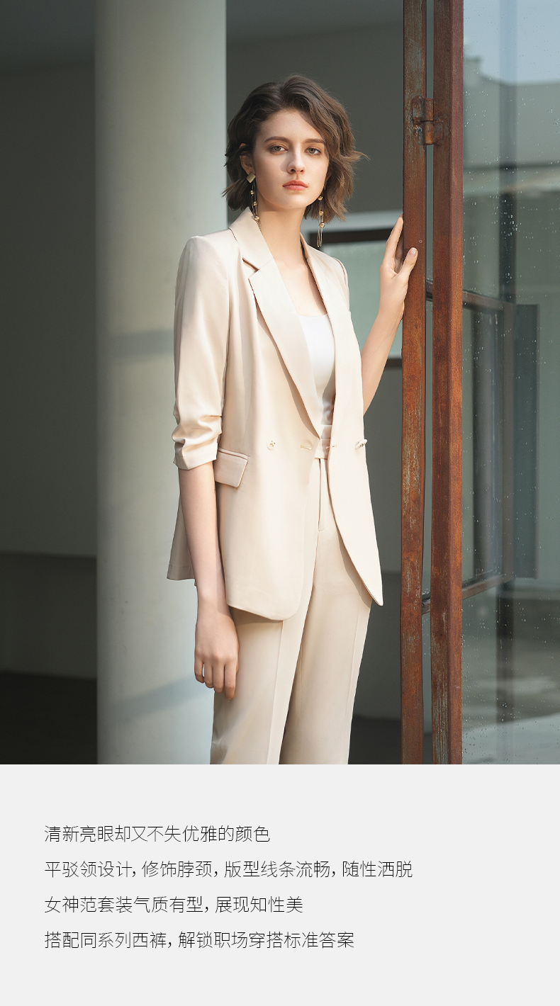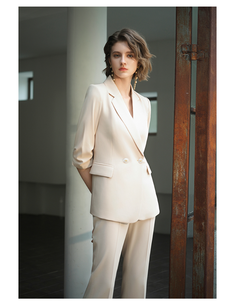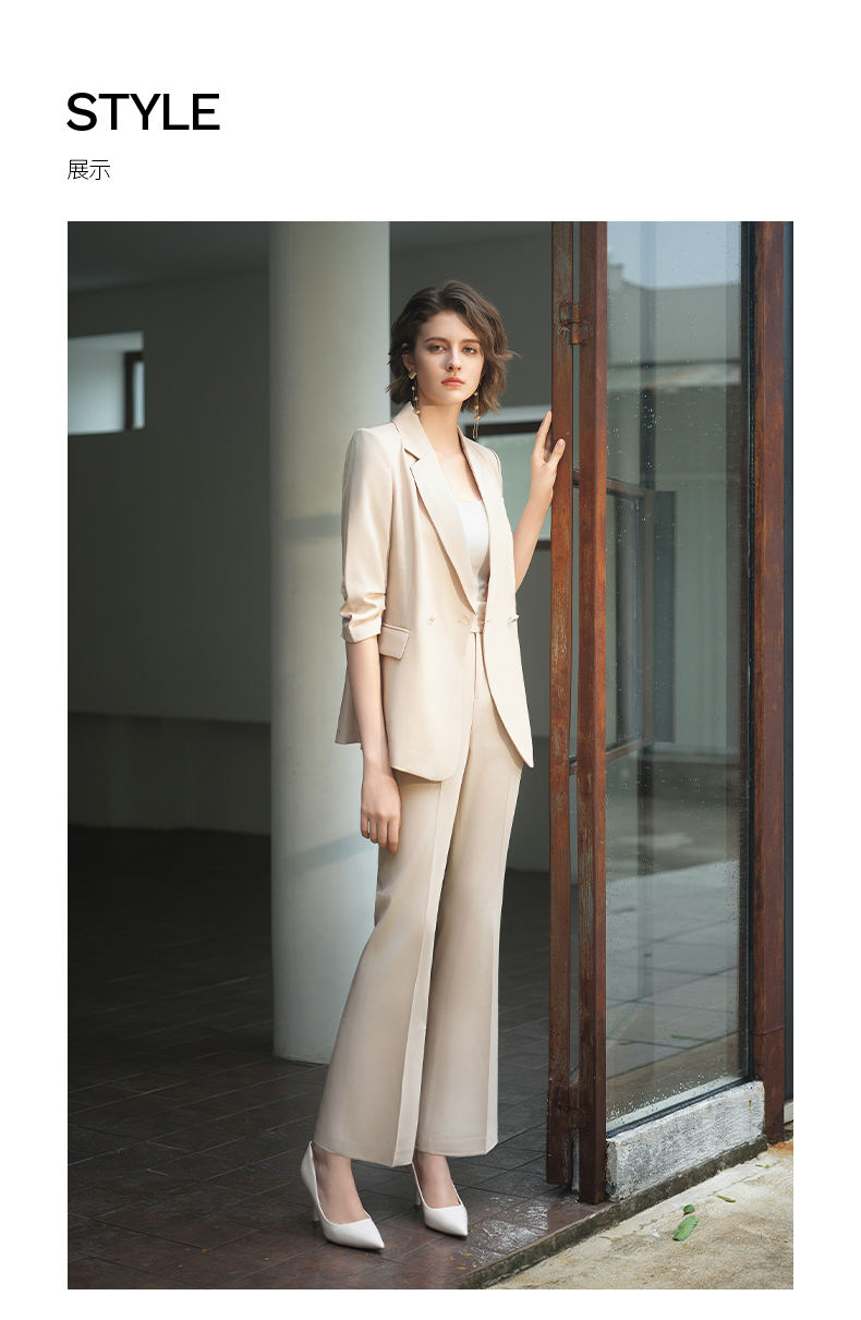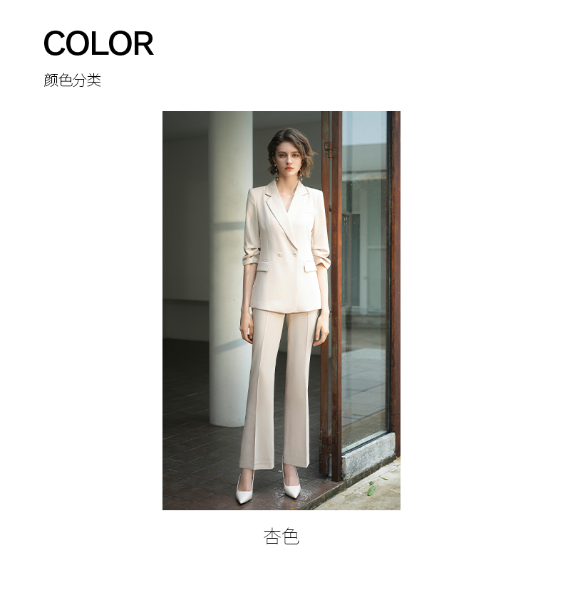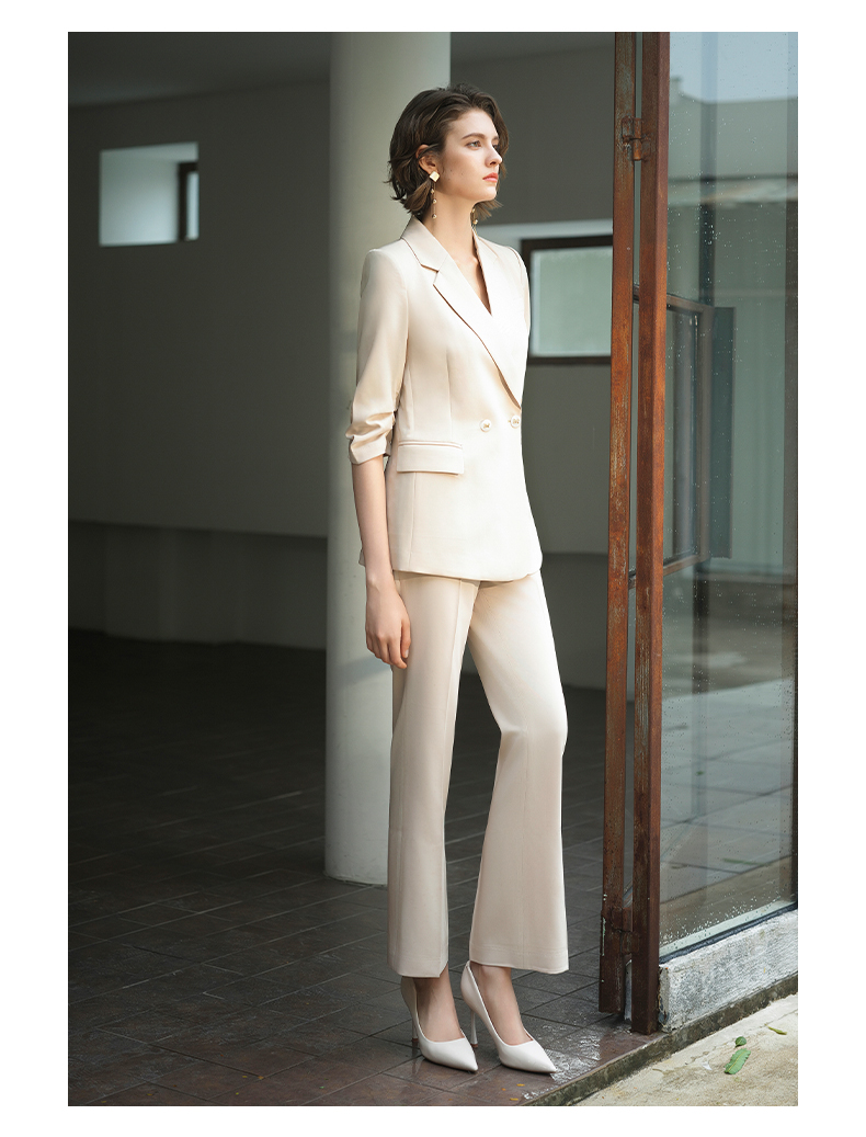 IWY/IWY秋冬季新款杏色西装微喇裤两件套通勤干练气质*职业套装女C14234+P34234