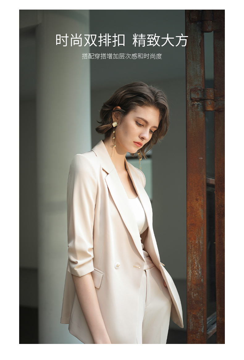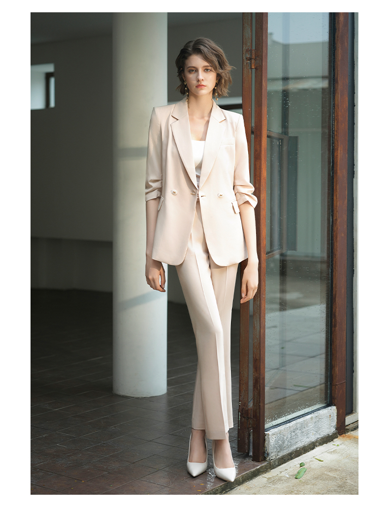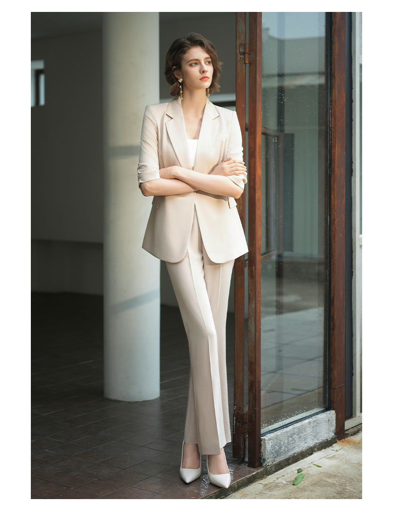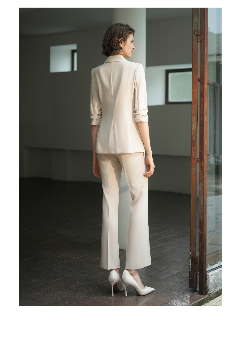 IWY/IWY秋冬季新款杏色西装微喇裤两件套通勤干练气质*职业套装女C14234+P34234