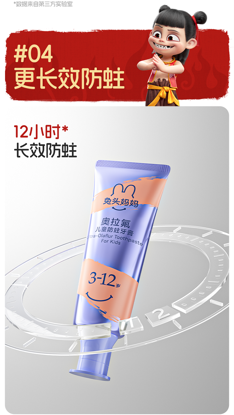 【哪吒系列】兔头妈妈儿童高纯奥拉氟防蛀牙膏50g
