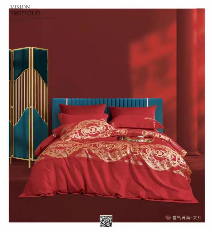 产品特点:采用全棉面料高支高密,舒适透气,触感细腻亲肤,中式传统经典刺绣工艺,新颖花型亮丽夺目,展现中式婚嫁之美,整体效果奢华大气,彰显奢华有档次!
