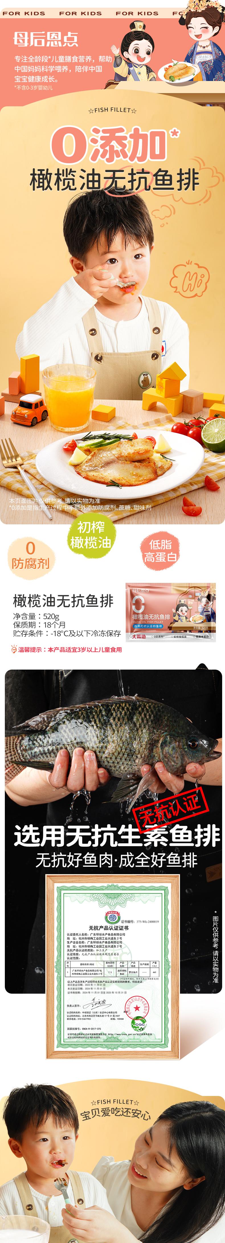 【发出后不支持拦截退货】母后恩点 橄榄油无抗鱼排 520g*2