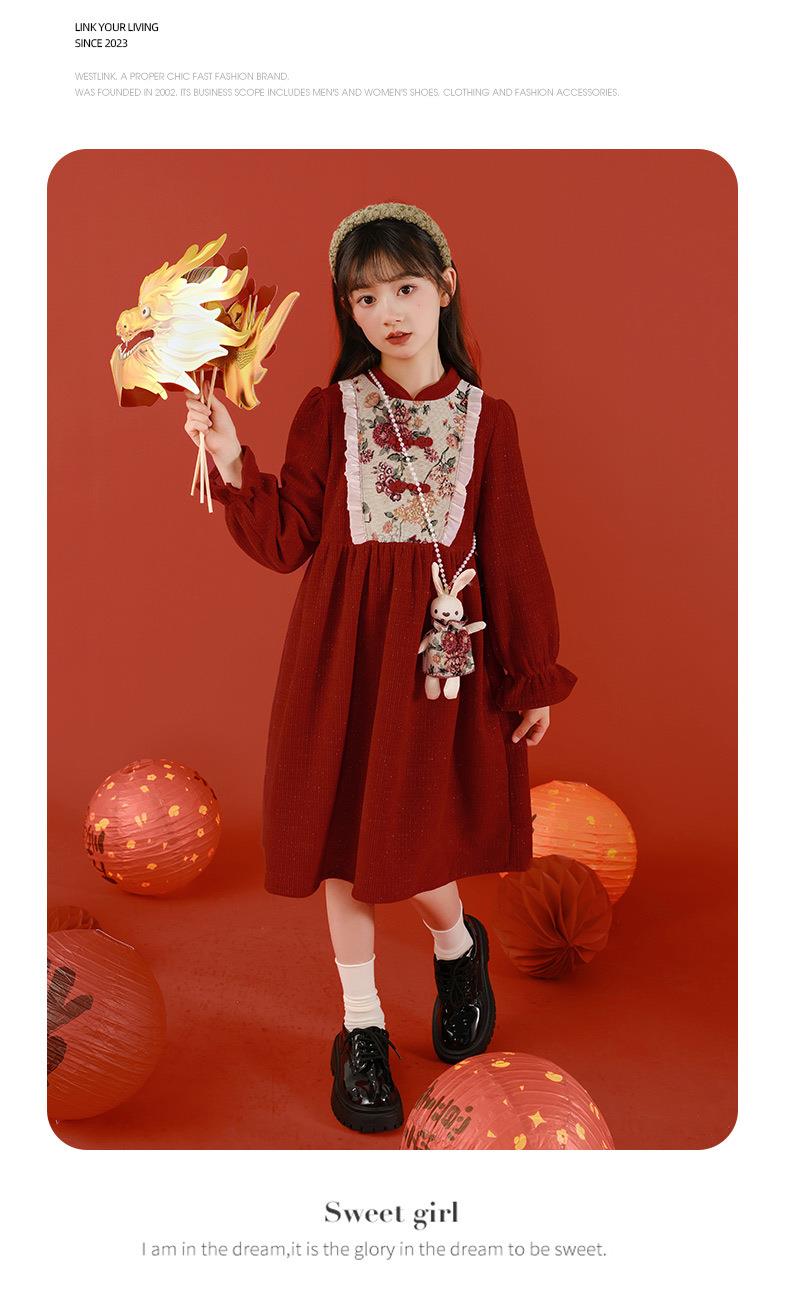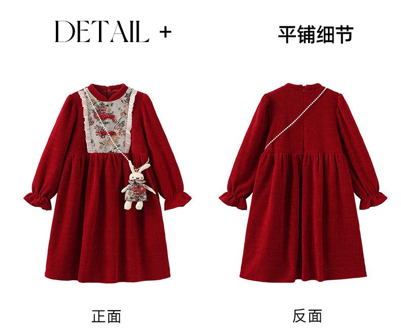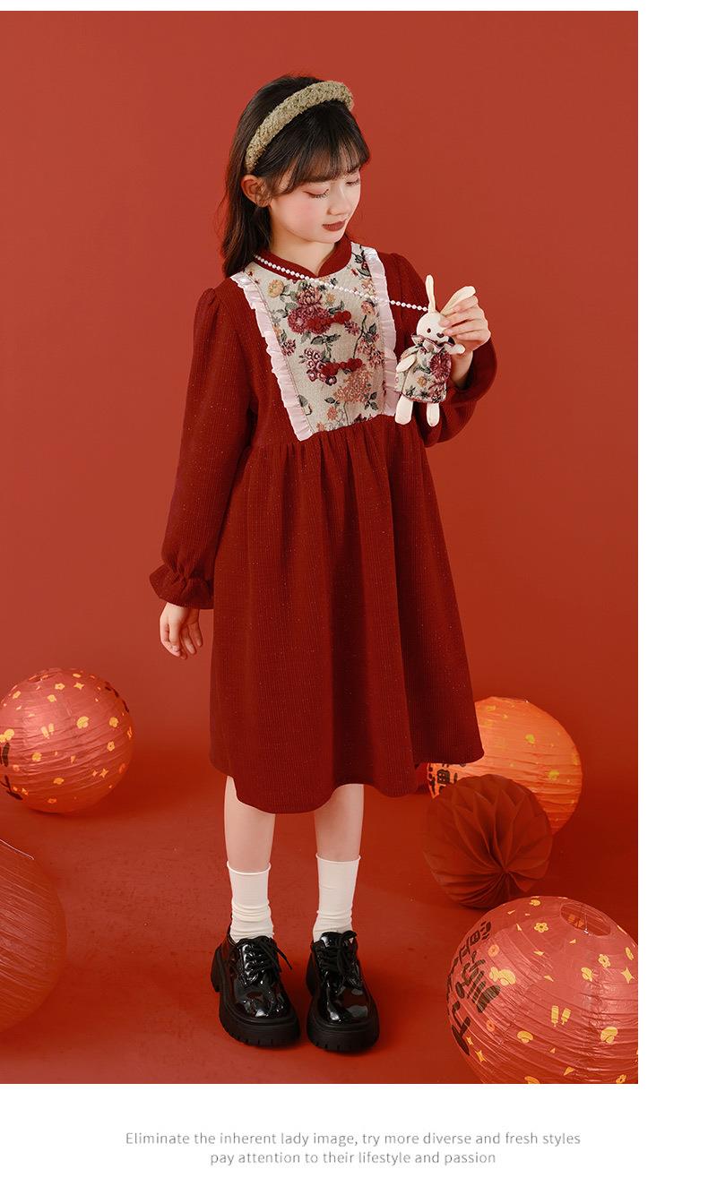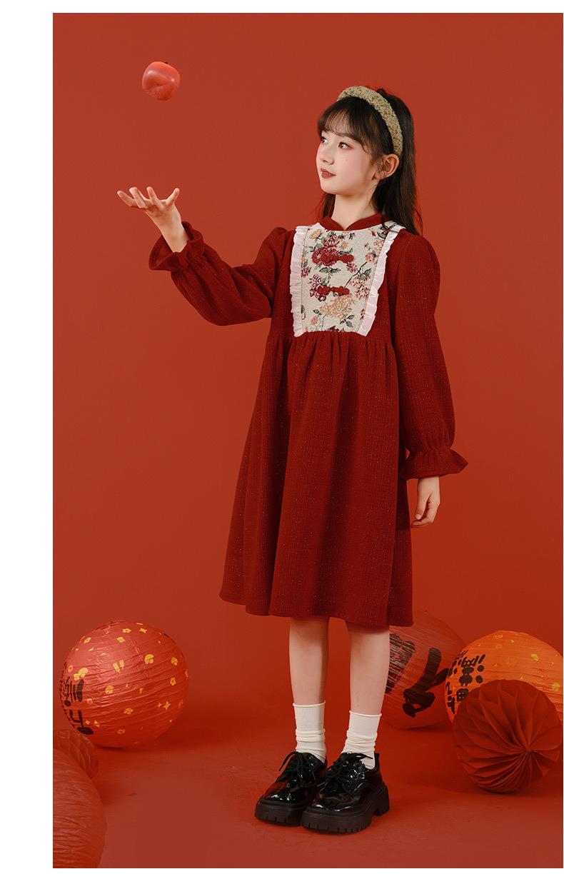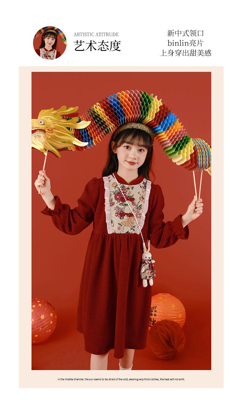 女童冬装年服红色新年主持儿童女孩连衣裙丝绒女中大童喜庆裙子