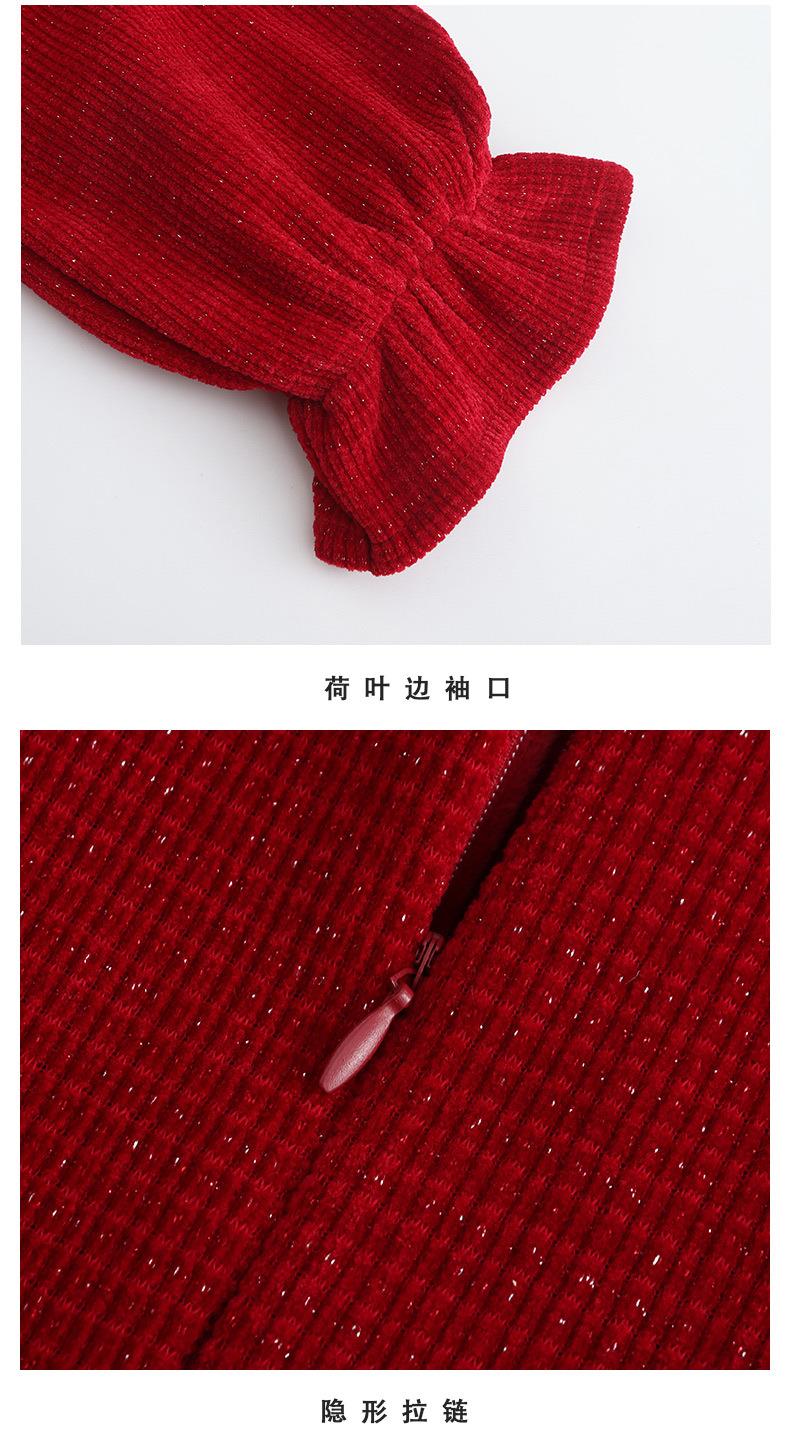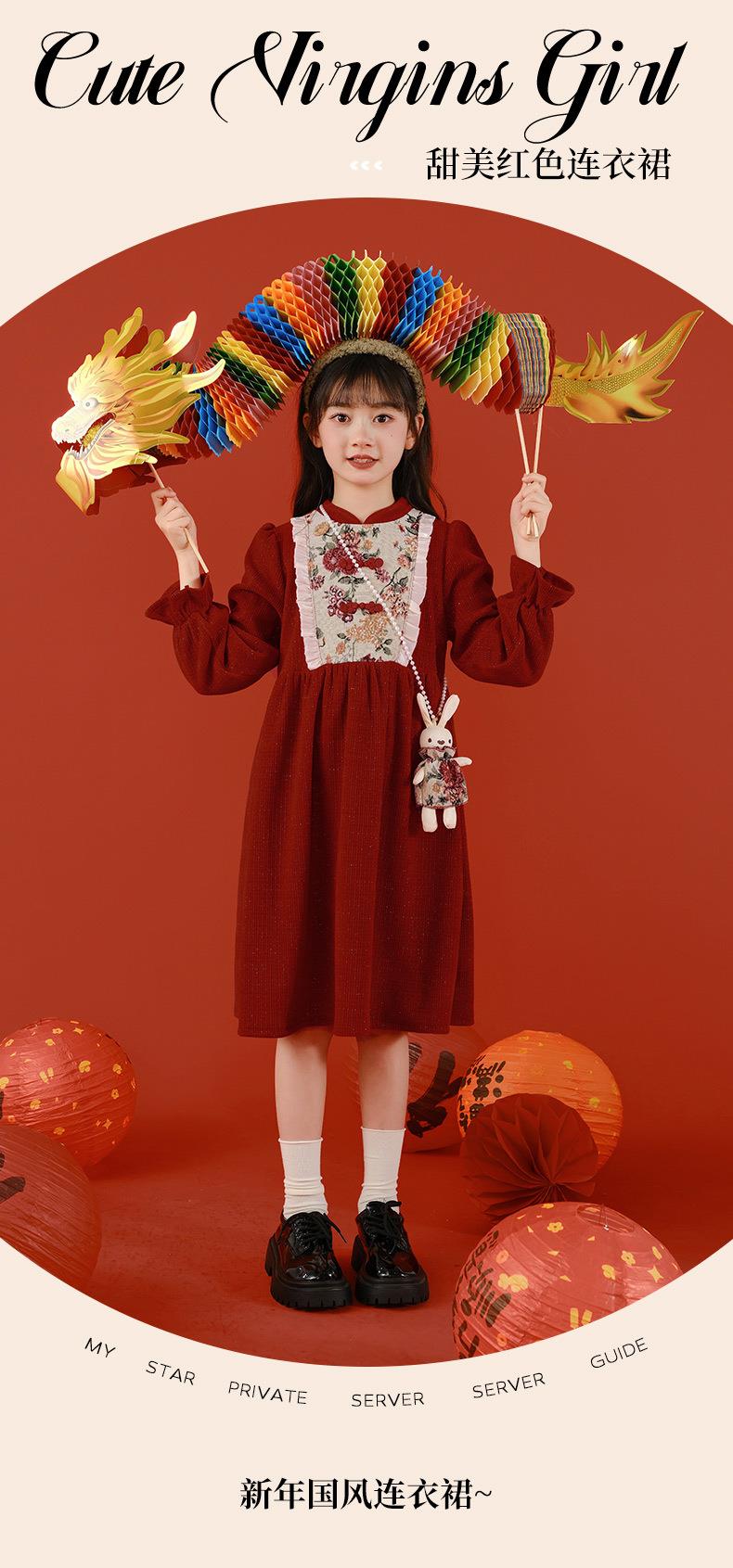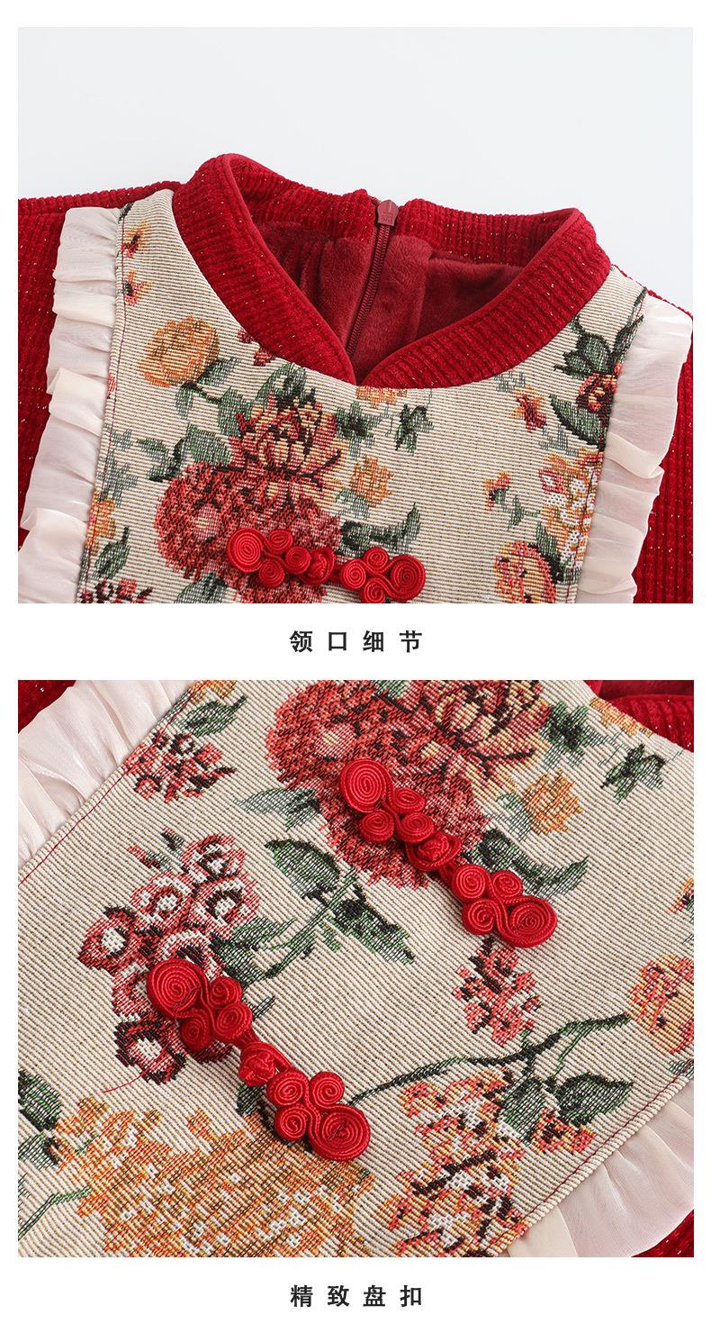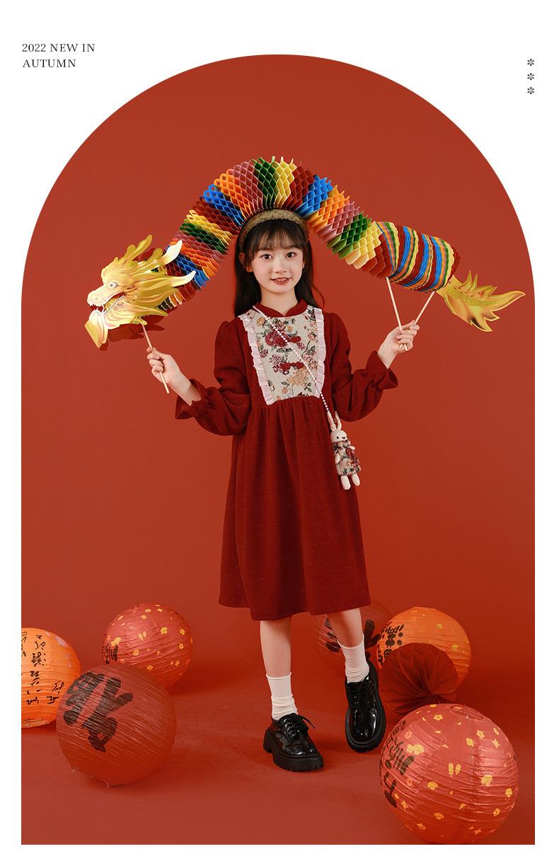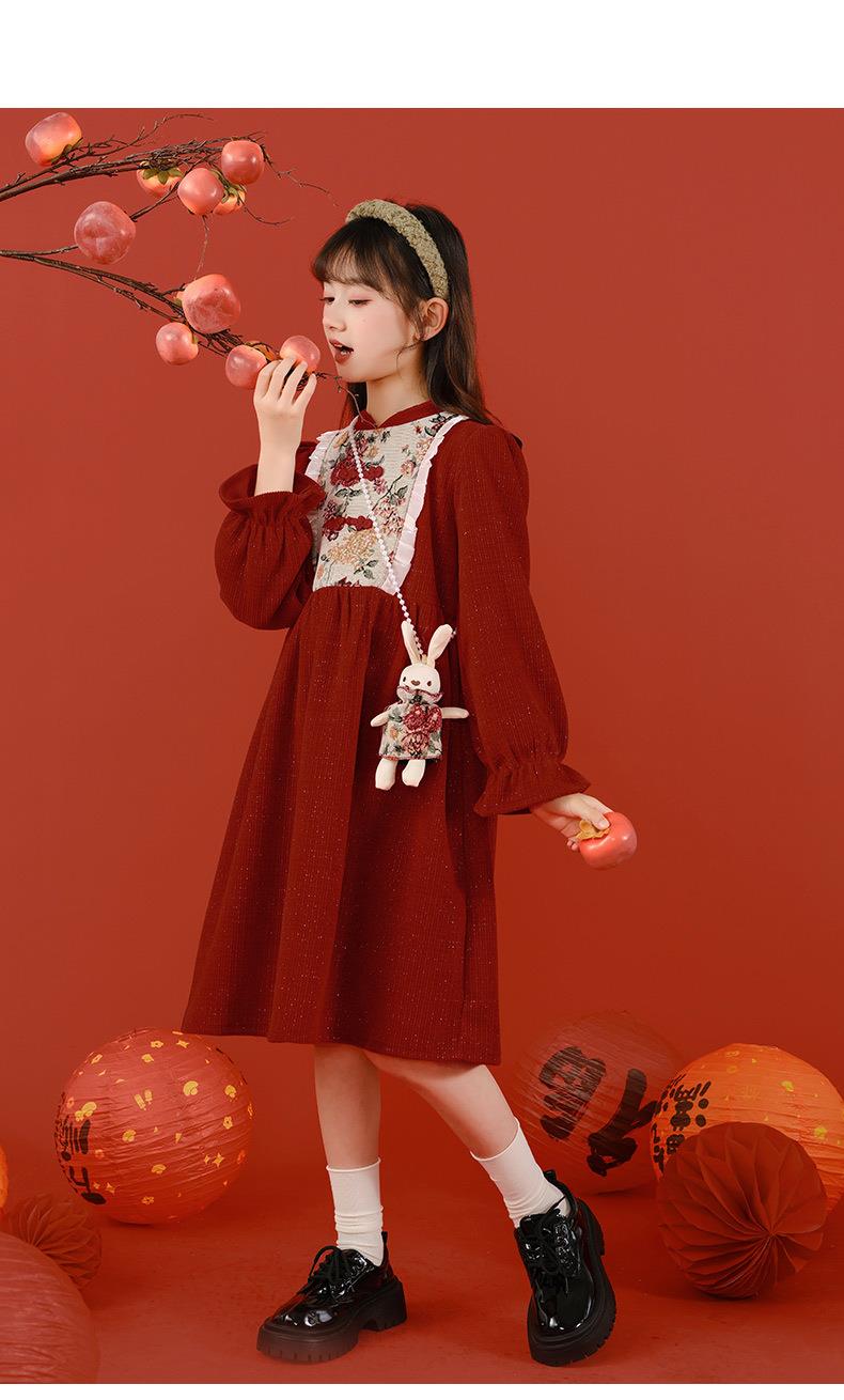 女童冬装年服红色新年主持儿童女孩连衣裙丝绒女中大童喜庆裙子