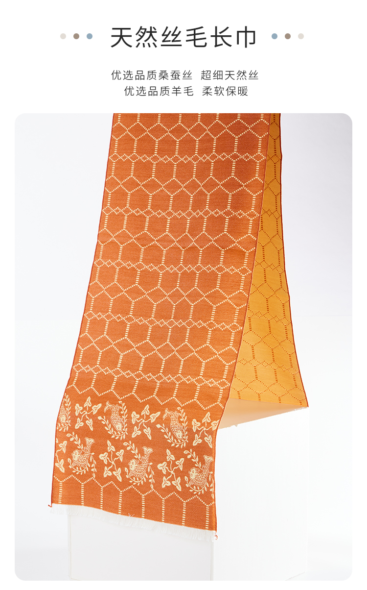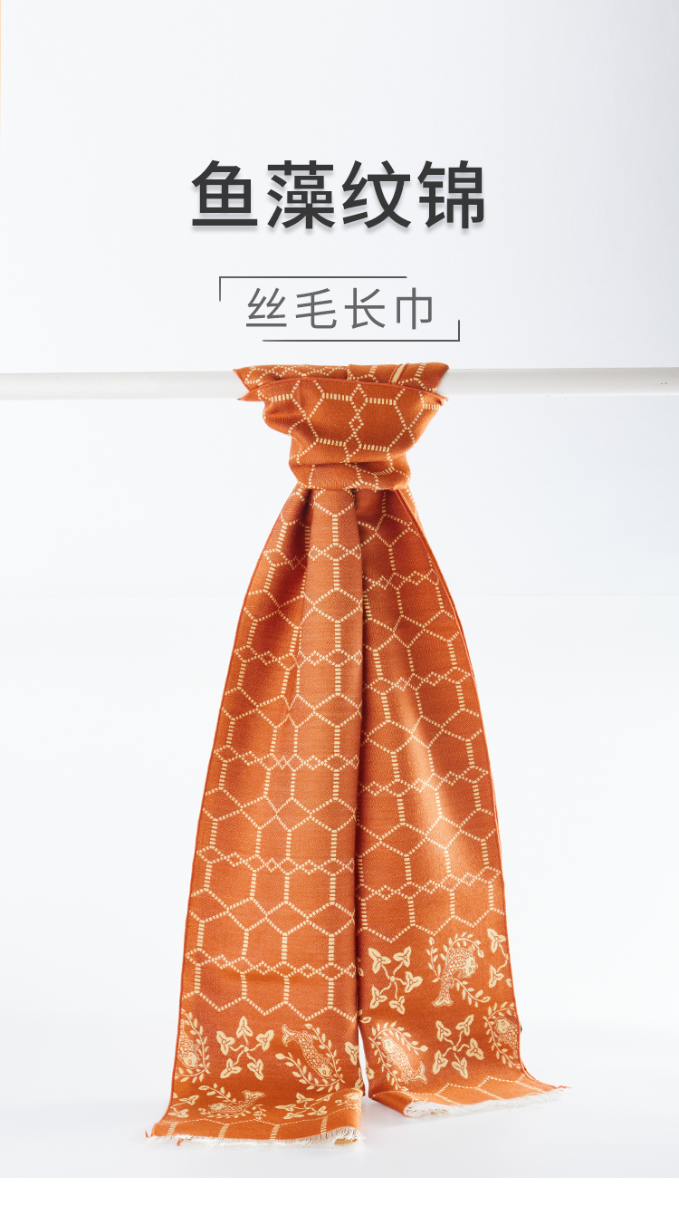 SAINTJOY/上久楷 丝毛围巾 丝毛长巾 鱼藻纹锦 CJS23025