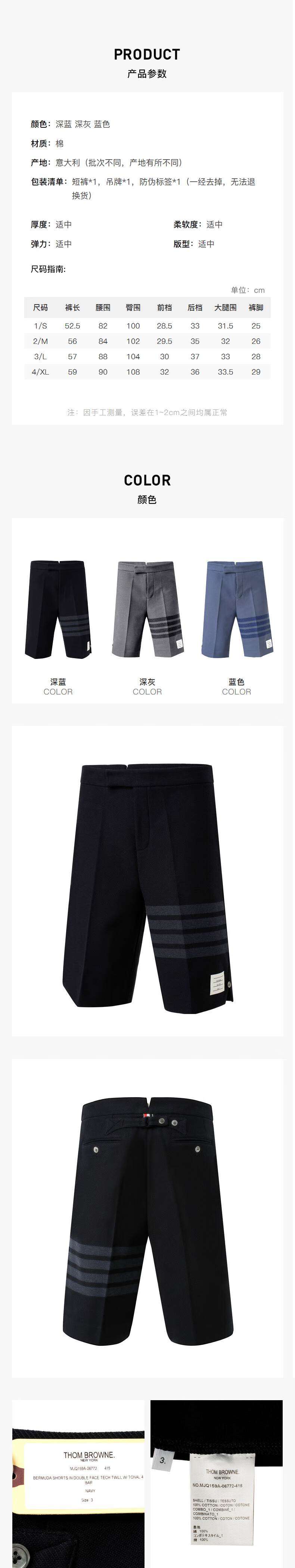 THOM BROWNE 汤姆·布朗 男士经典4条纹休闲短裤五分裤 MJQ159A 06772