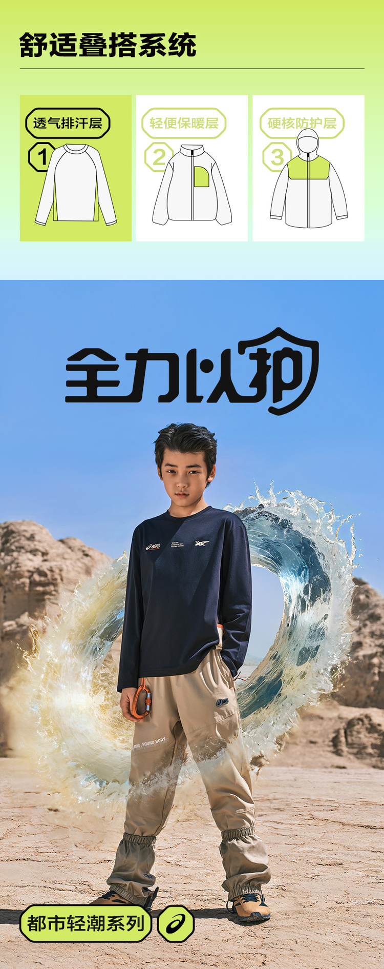 【商城同款】ASICS/亚瑟士童装男童落肩卫衣长袖T恤吸湿速干秋季