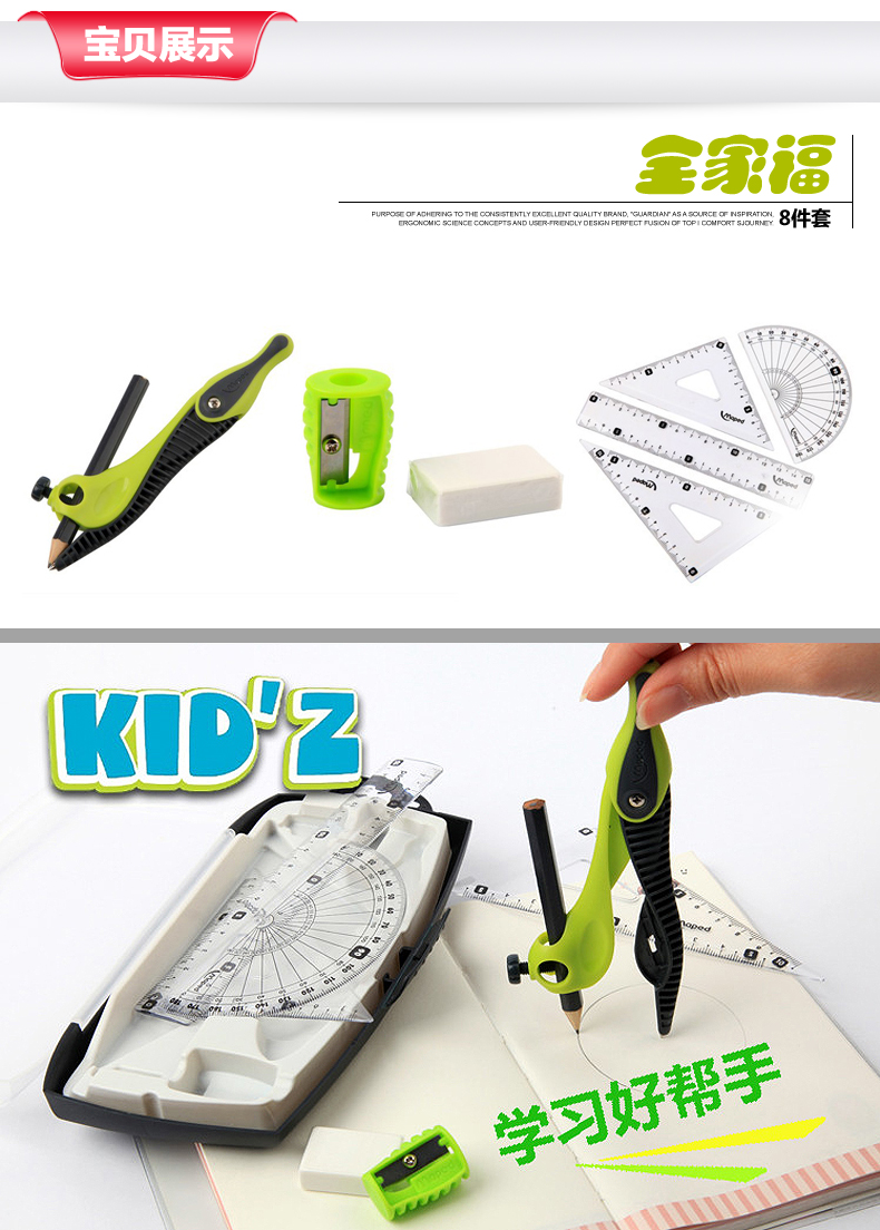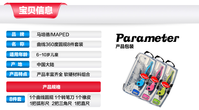 MAPED马培德曲线360度圆规 尺 量角器 文具套装 519118数学组