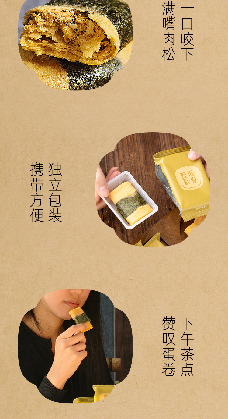 新品赞叹238g海苔肉松蛋卷下午茶点下香酥薄脆美味独立包装零食