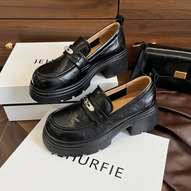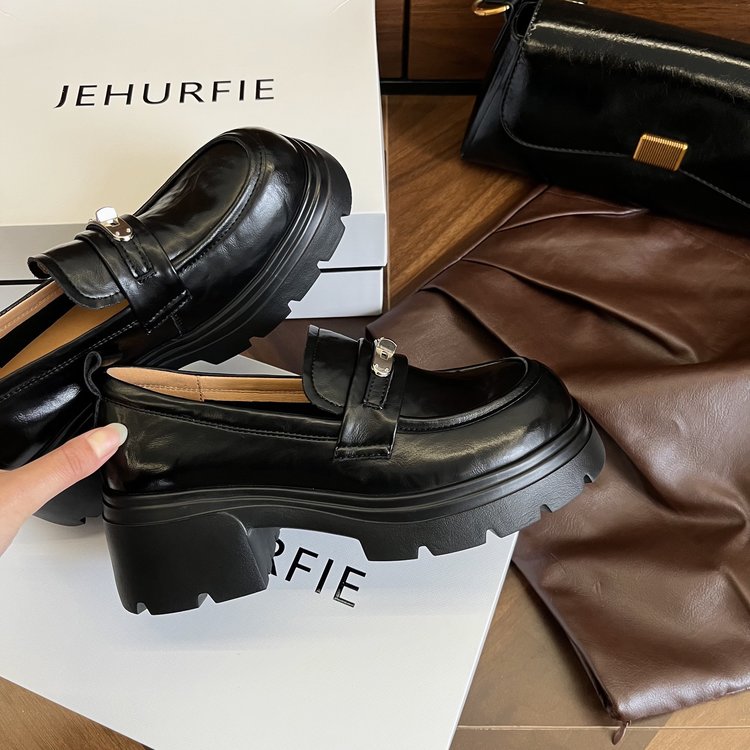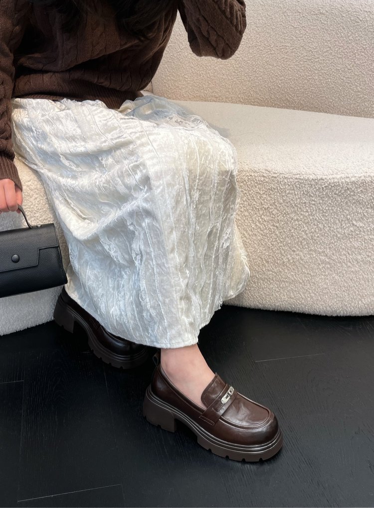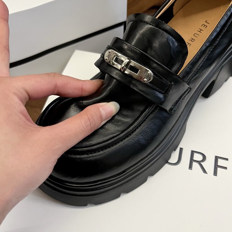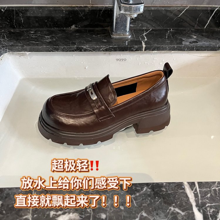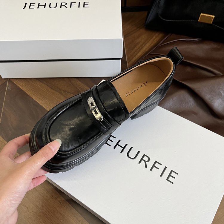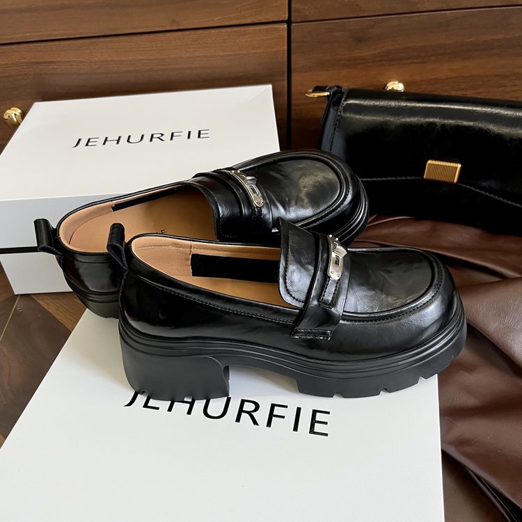 【货号】:AB26029【品牌】:JEHURFIE/纪华菲【产地】:温州【颜色】:黑色 棕色【 材质】:手抓牛皮【内里】: 单里【脚垫】:头层牛皮【鞋底】:橡胶发泡【跟高】:6CM【重量】:单只净重312g (37码)【款式】:乐福鞋【规格】: 35-40