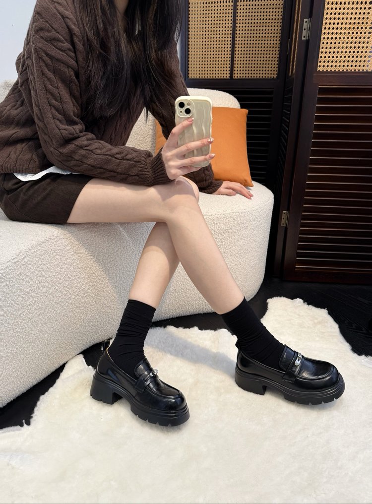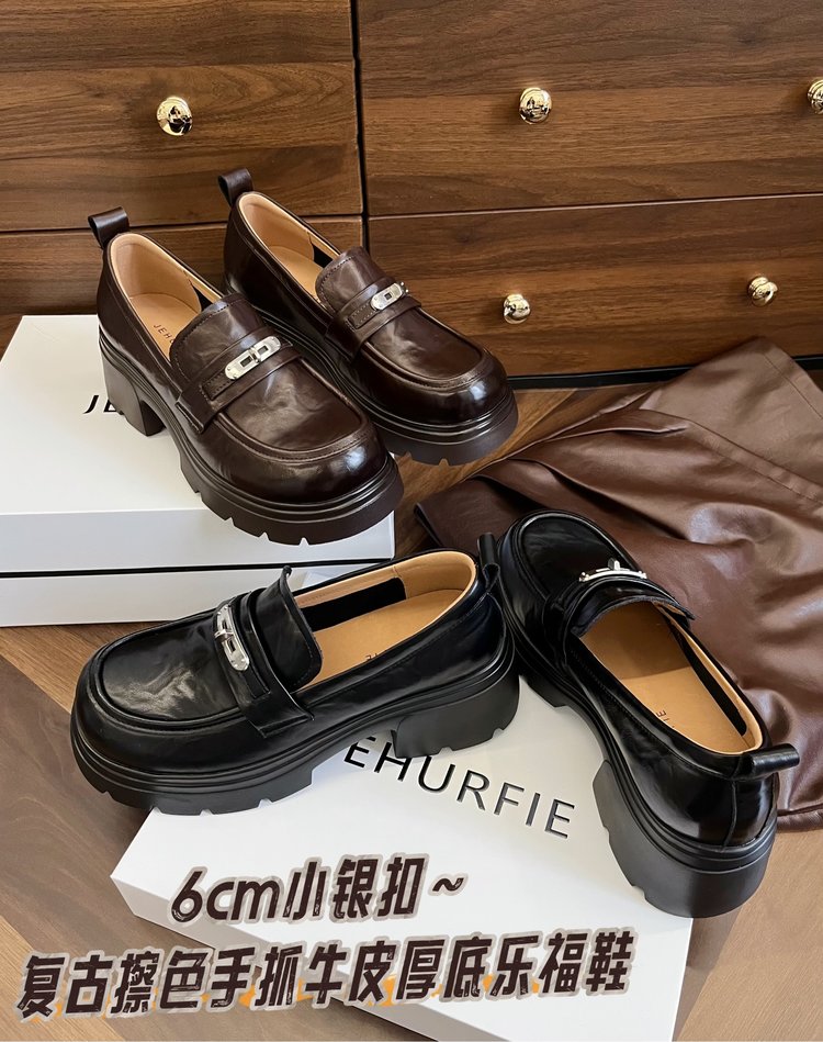 团名】:6cm小银扣~复古擦色手抓牛皮厚底乐福鞋
