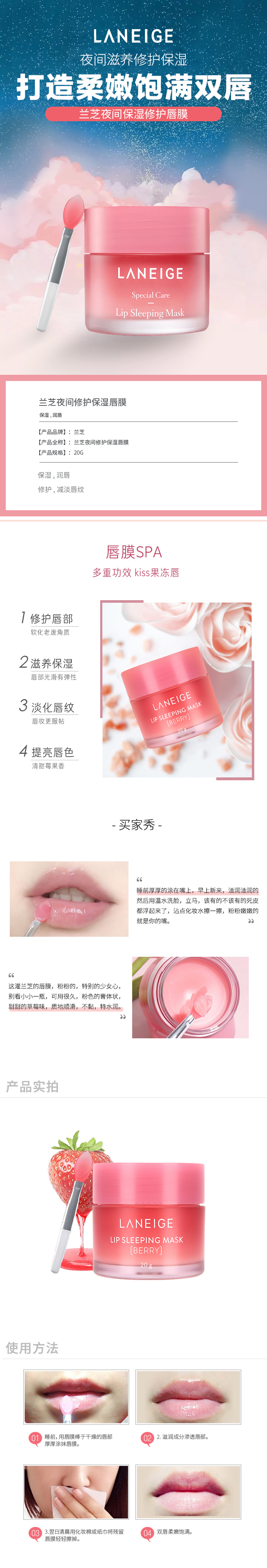LANEIGE/兰芝 夜间保湿修护唇膜/浆果味 20ml