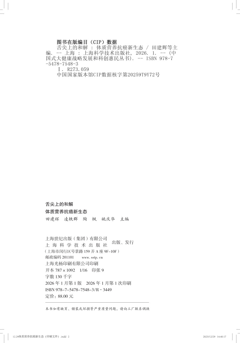 书名:舌尖上的和解:体质营养抗癌新生态