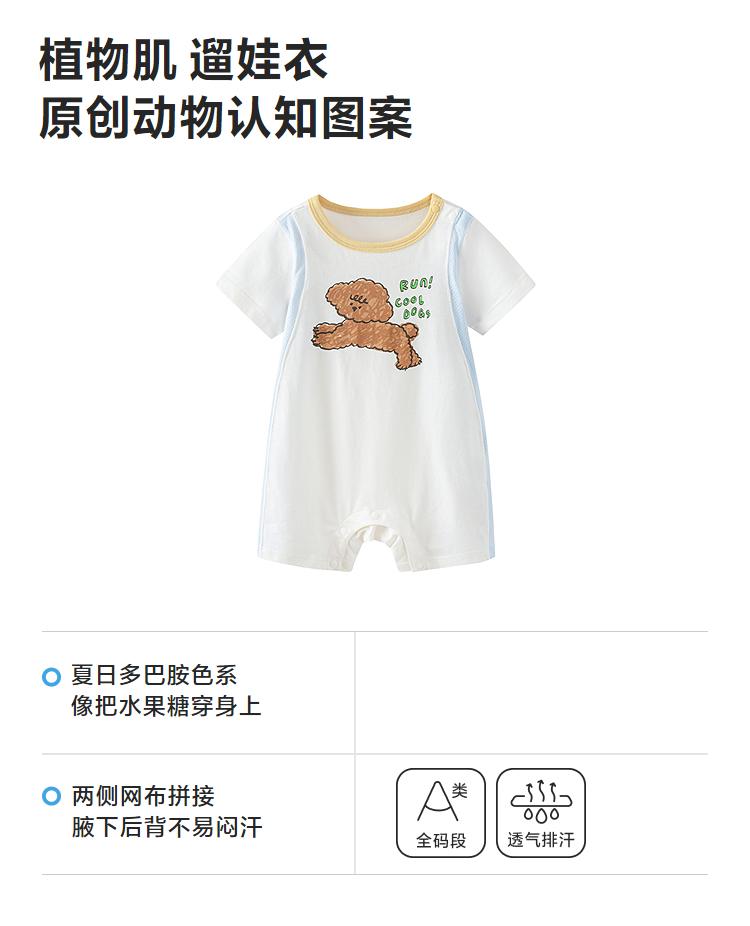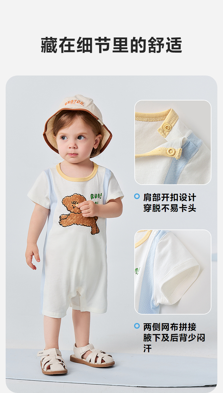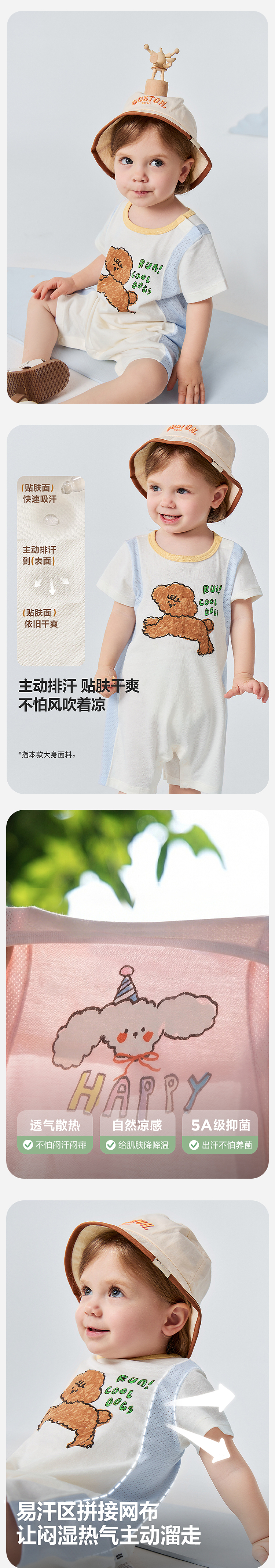 迷你巴拉巴拉婴儿连体衣亲肤速干抑菌萌趣宝宝外出爬服26夏新品