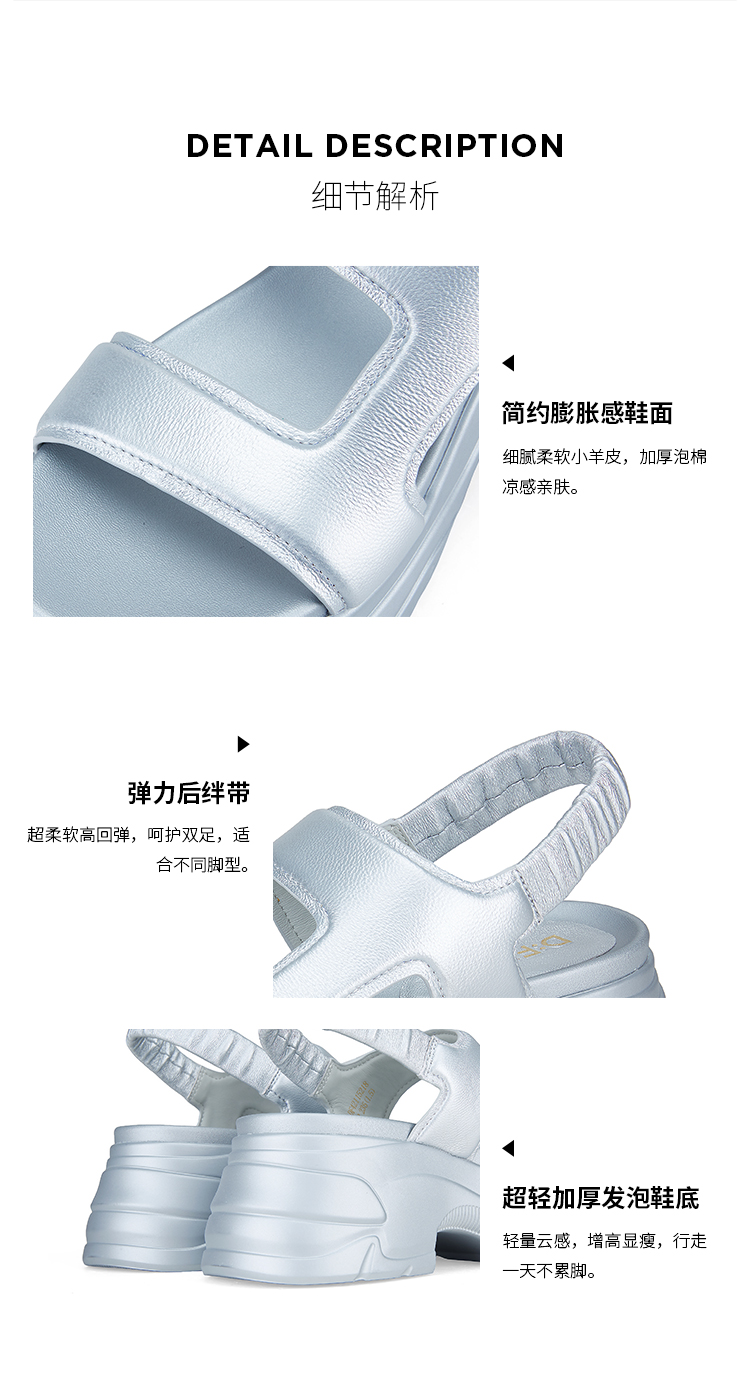 D:FUSE迪芙斯2024夏季新款松糕厚底不对称膨胀感罗马凉鞋DF42115218