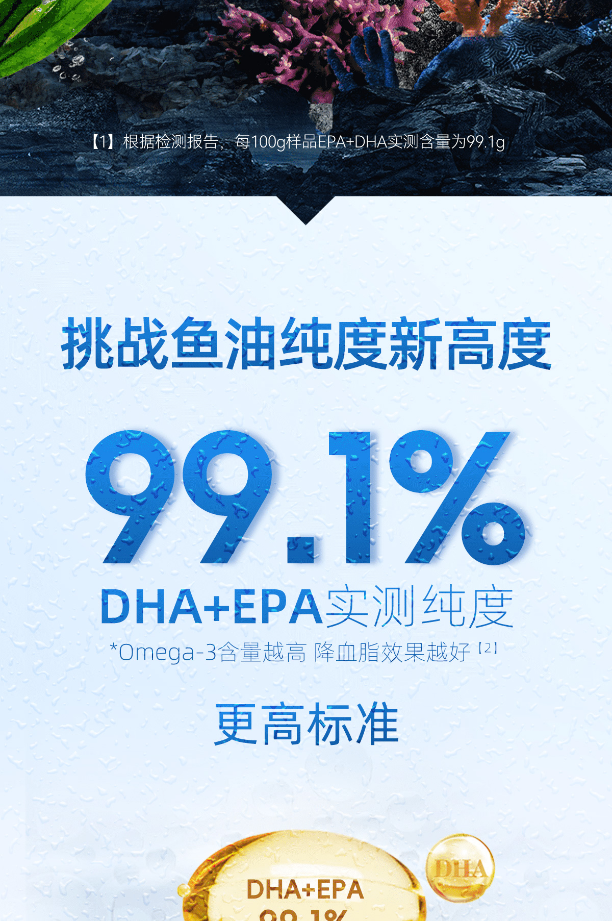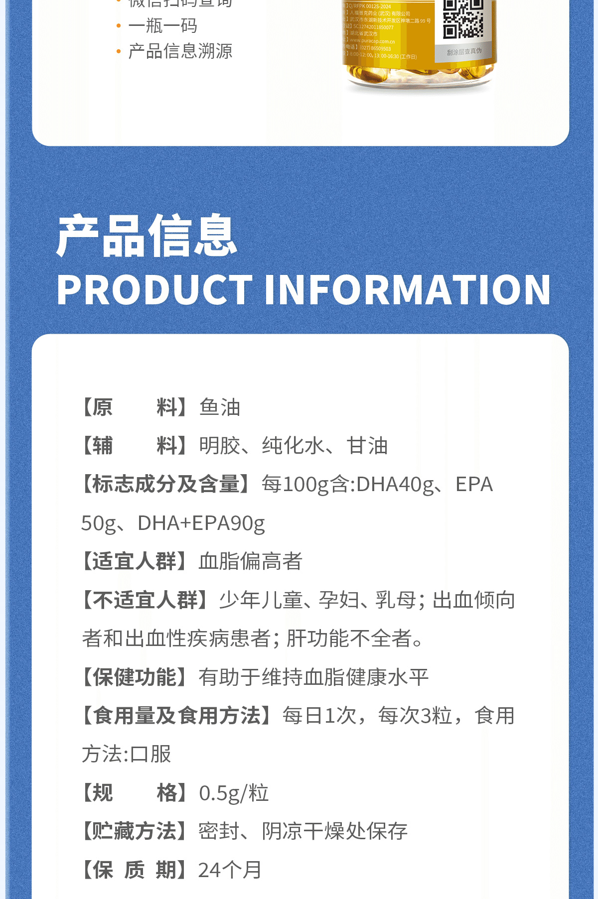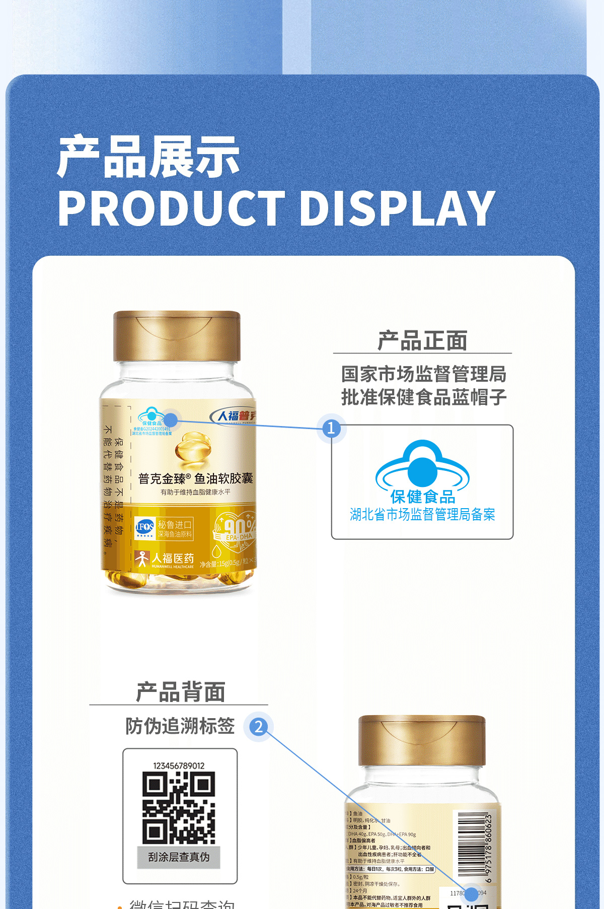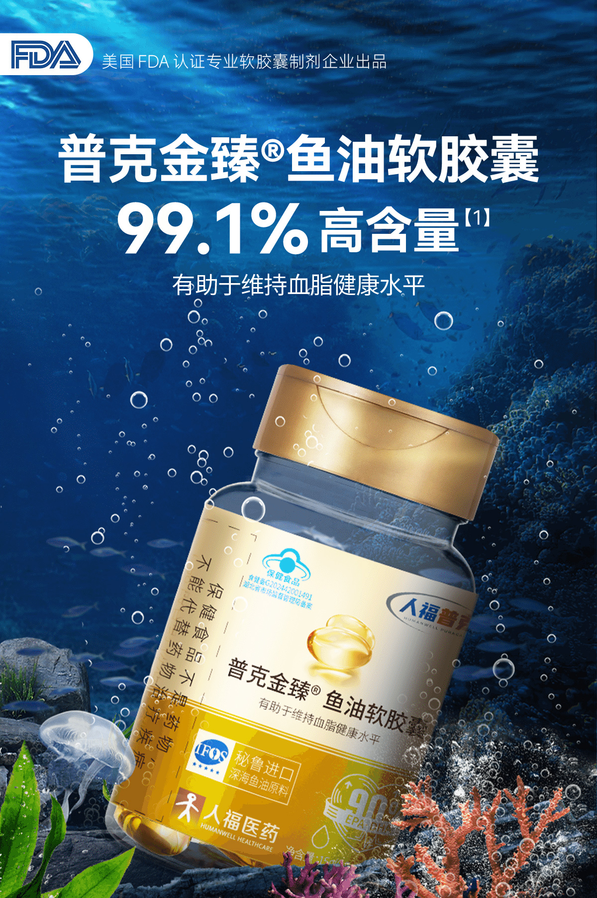 人福普克99.1%高纯度金臻鱼油软胶囊人福普克深海鱼油Omega3 0.5g/粒 30粒/瓶