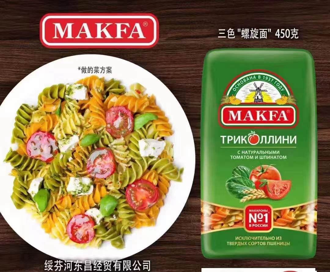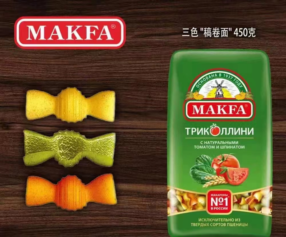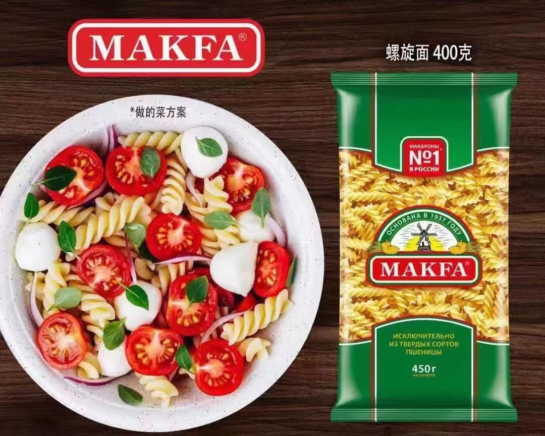 俄罗斯马克发通心面三色螺旋意面空心粉意大利面速食