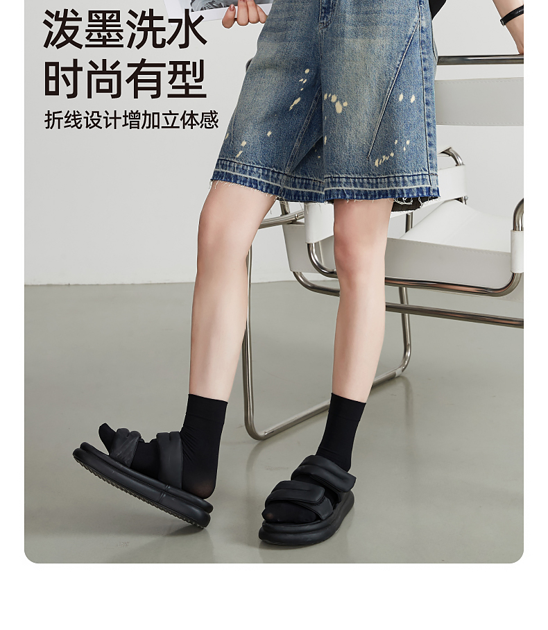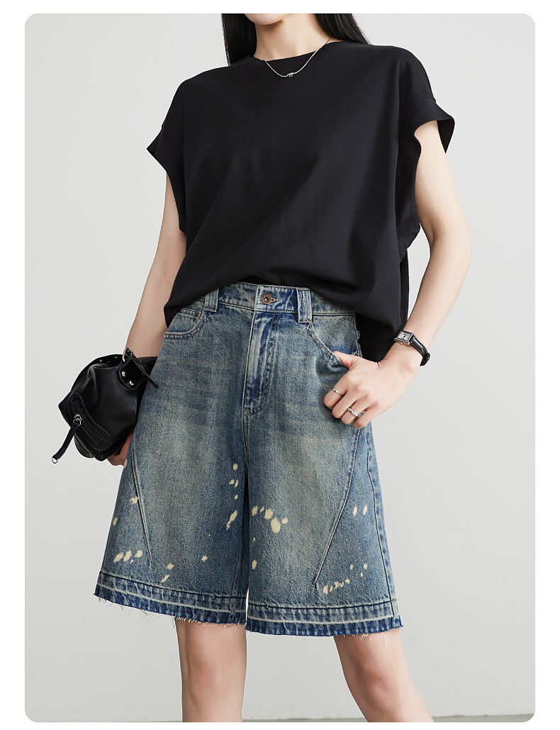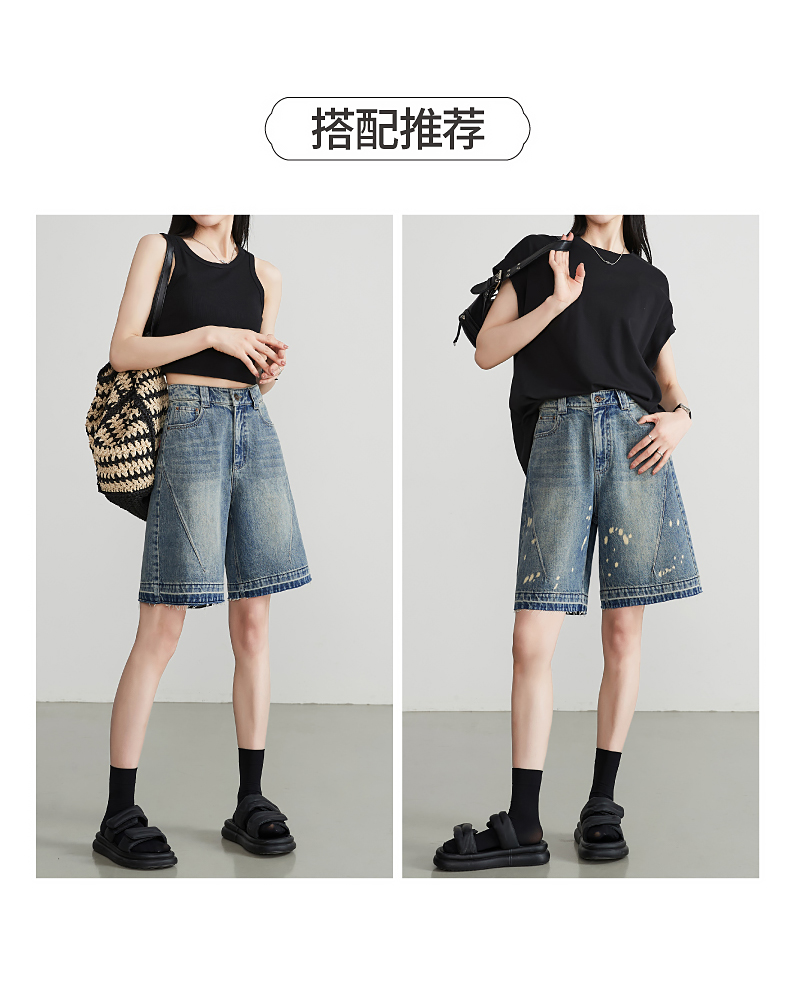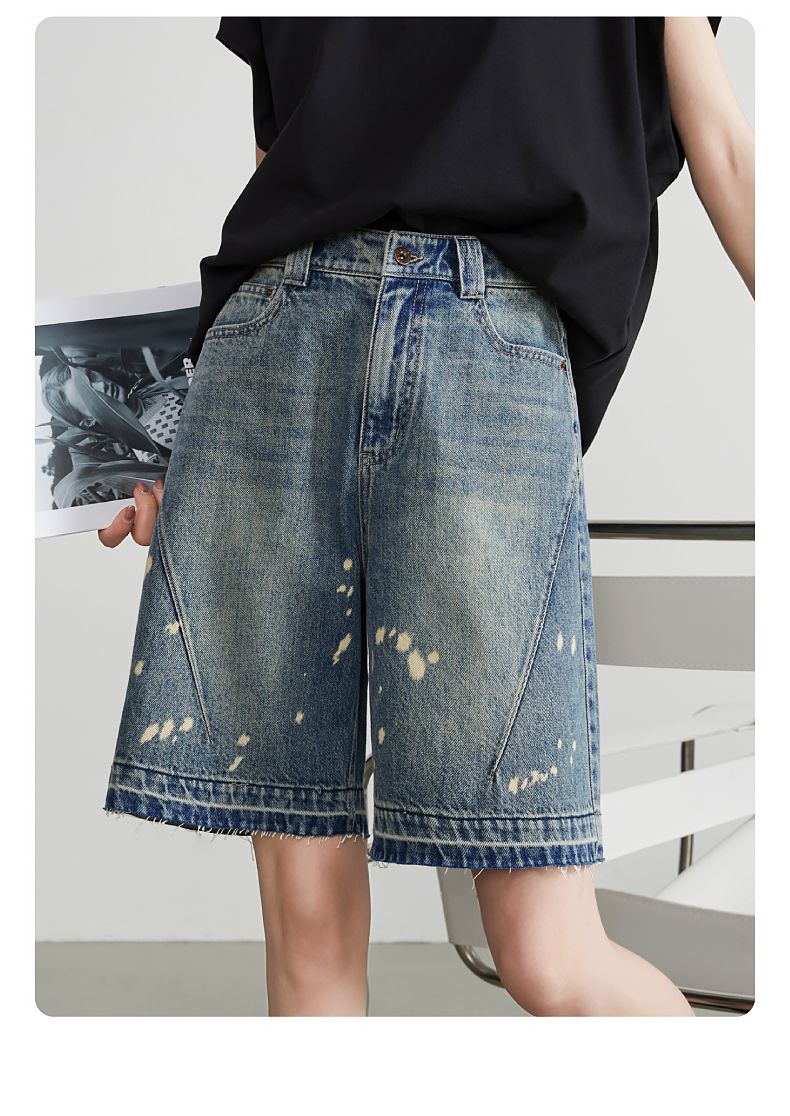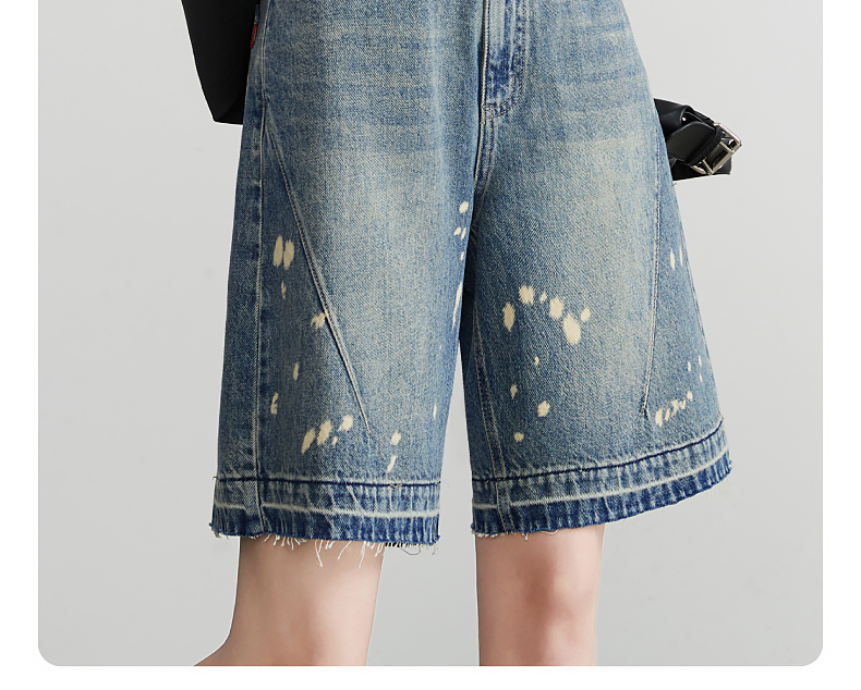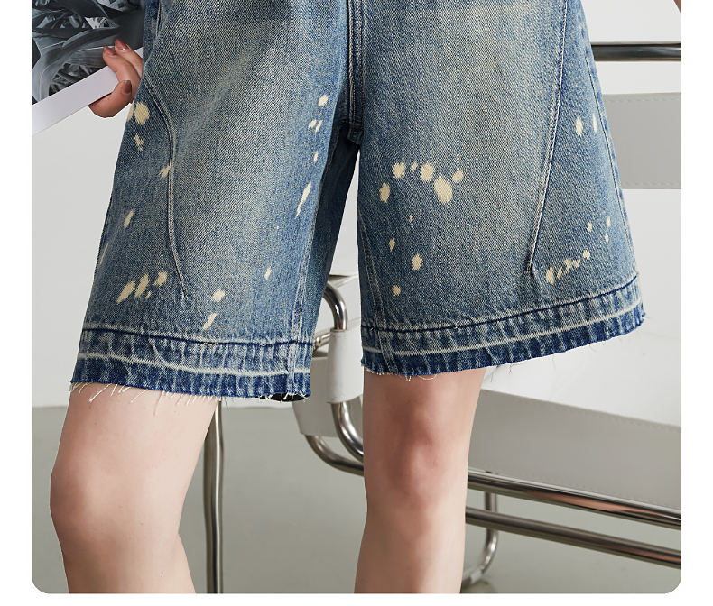 【五分牛仔短裤】逸阳全棉喷绘泼墨毛边宽松显瘦直筒裤子1086
