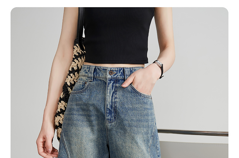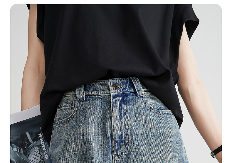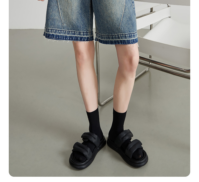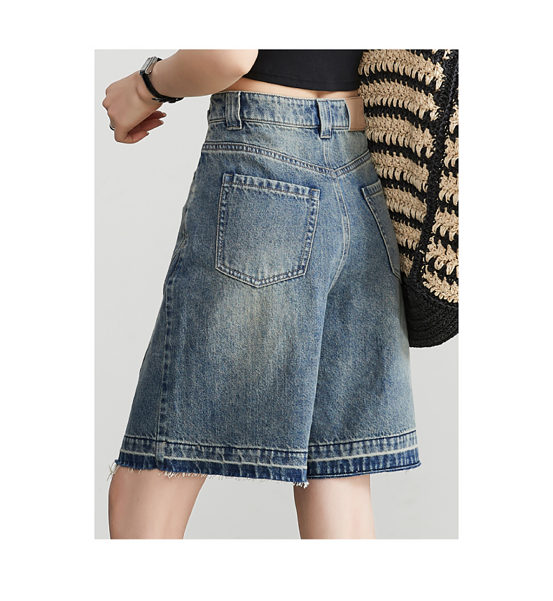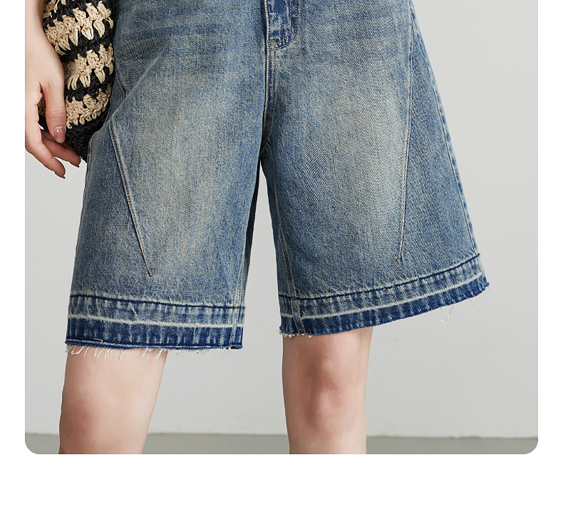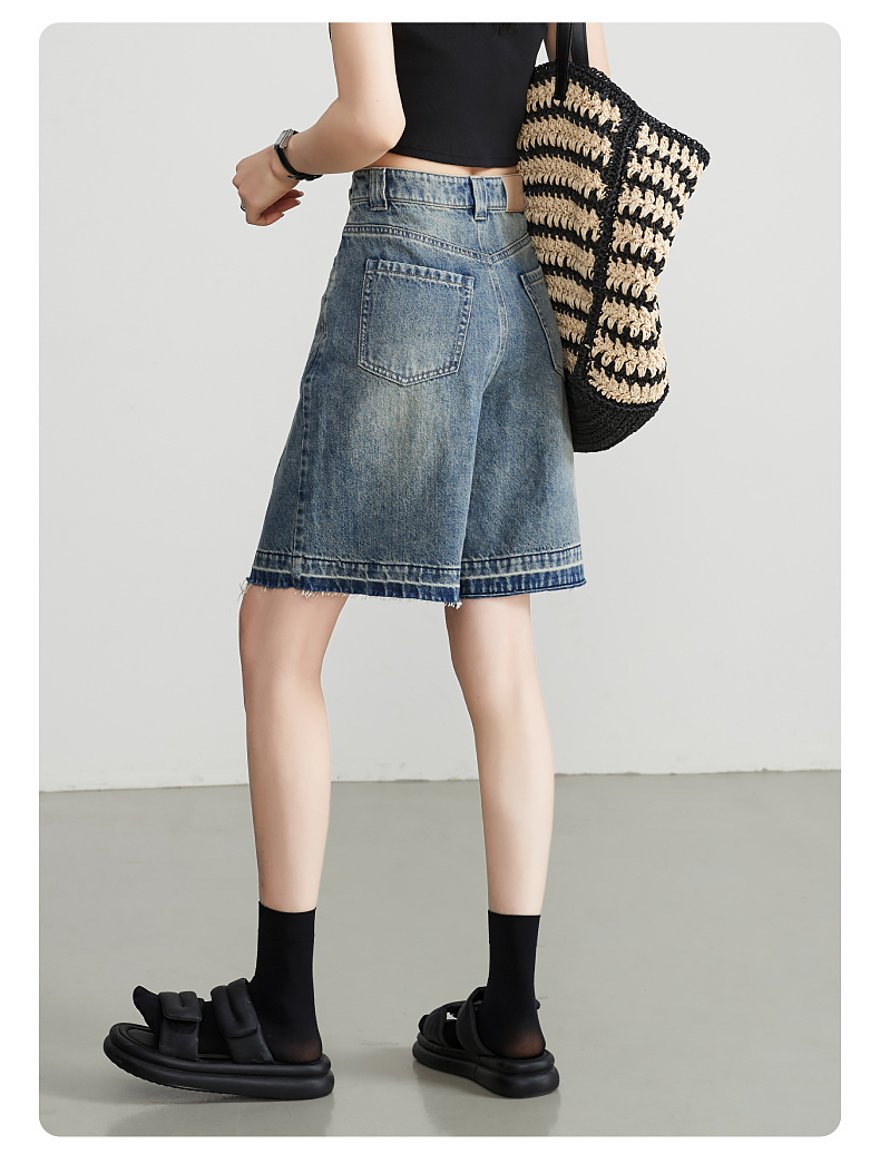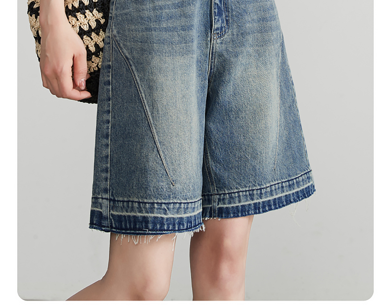 【五分牛仔短裤】逸阳全棉喷绘泼墨毛边宽松显瘦直筒裤子1086