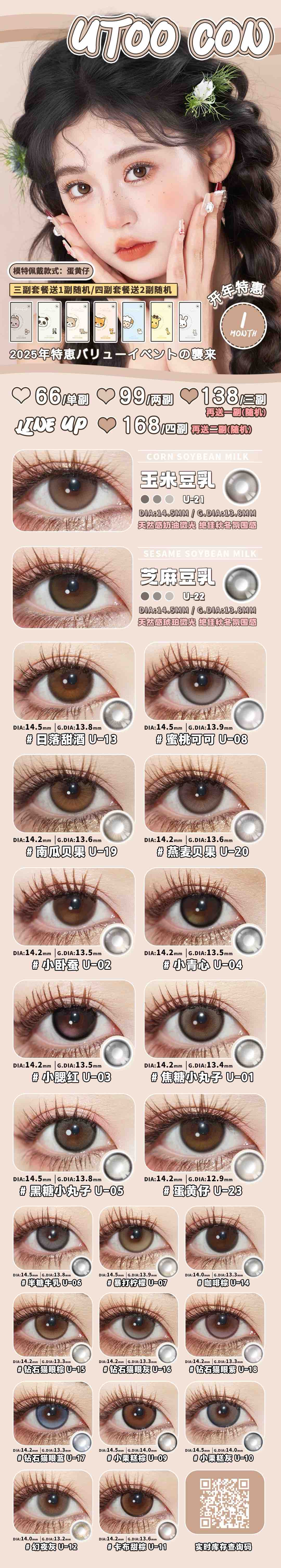 【月抛:💰95/2副💰128/3副】增加新色utoocon 度数备注0-1000度有525/575