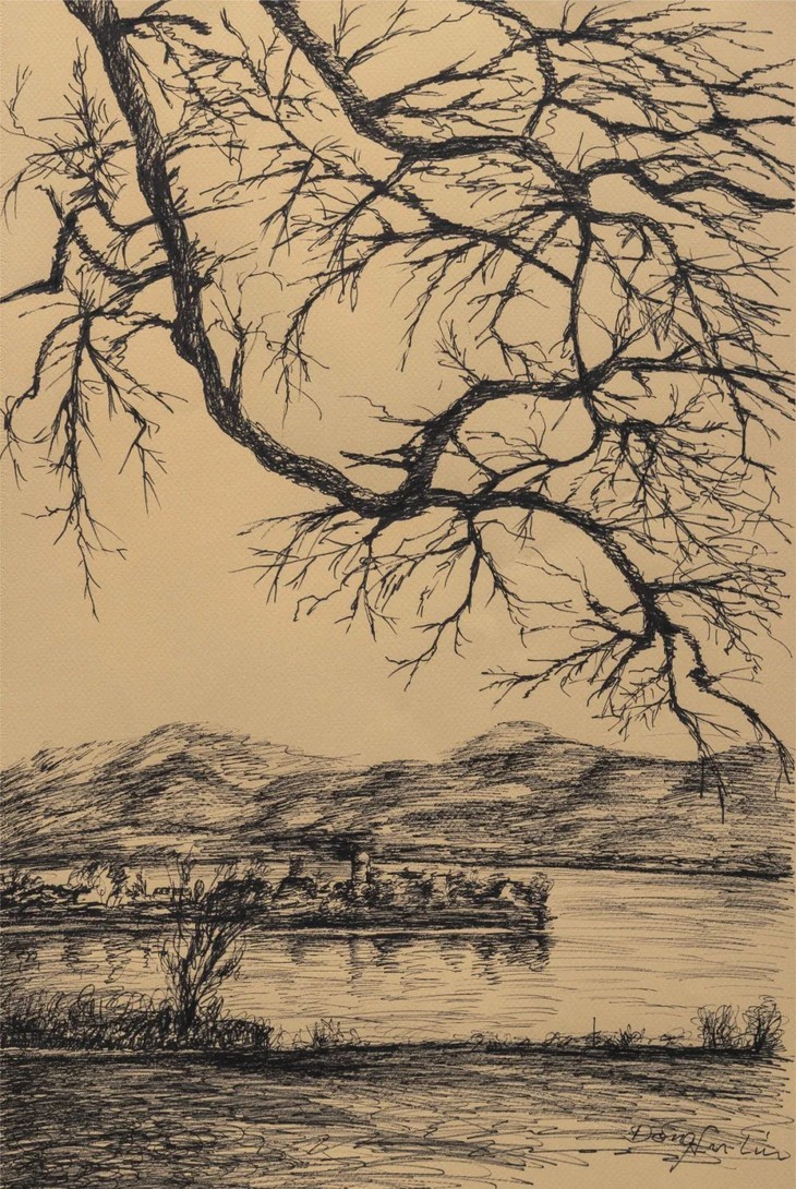 展览上,还有林栋甫的26幅人物和风景画钢笔素描。