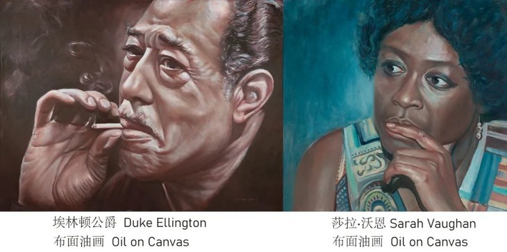 这些肖像画的作者林栋甫,1957年生于上海。他因早年的译制片配音和后来的电视节目主持,以及在影视剧里塑造的人物形象为人熟知。而他自幼酷爱绘画,年轻时坚持自习素描。2013年起他重拾画笔,师从意大利画家马泰欧(Matteo Massagrande),并以蓝调与爵士的传奇人物为自己的创作主题。通过这次爵士人物肖像画展,林栋甫要为爵士乐向巴黎致敬。