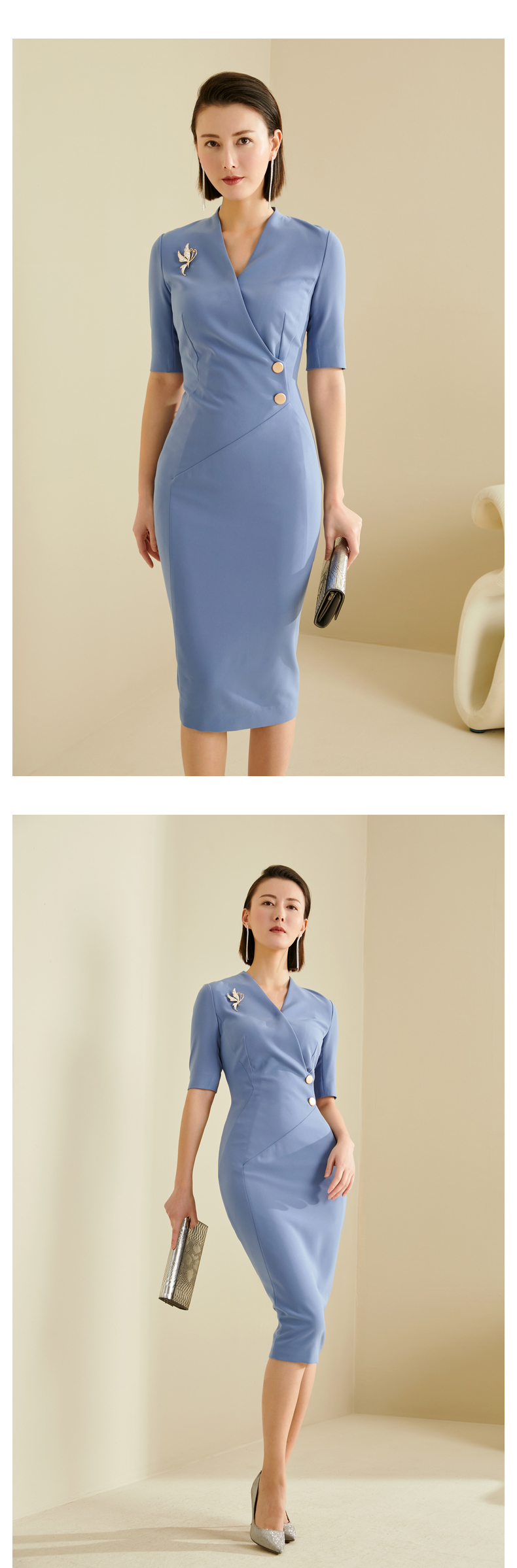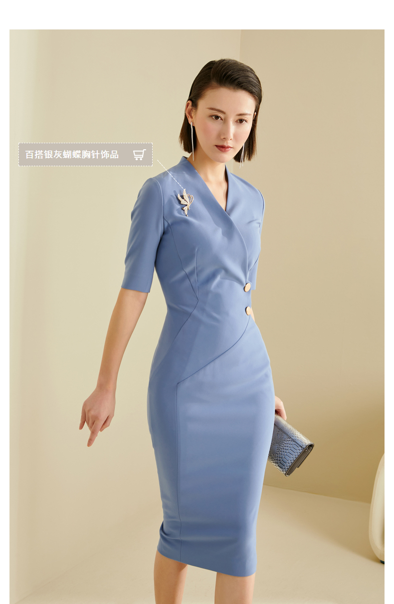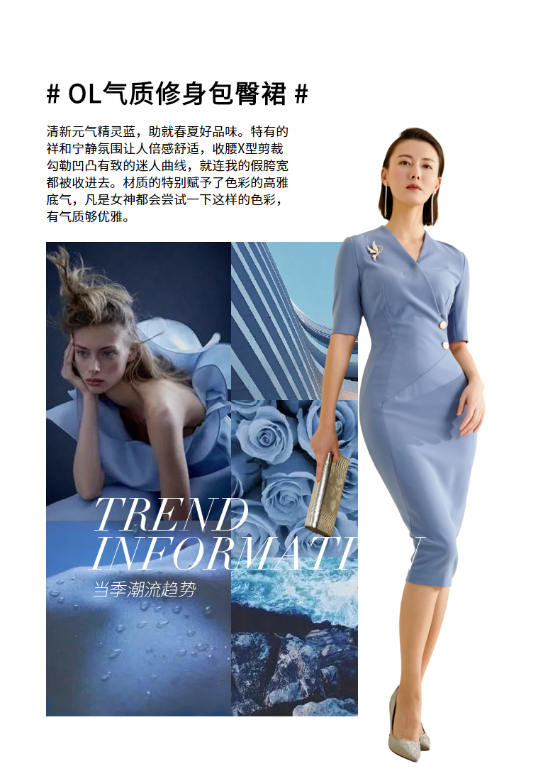 “海洋之心”J20384379T1X5 颈袖添香新款时尚气质修身包臀中长款高腰连衣裙