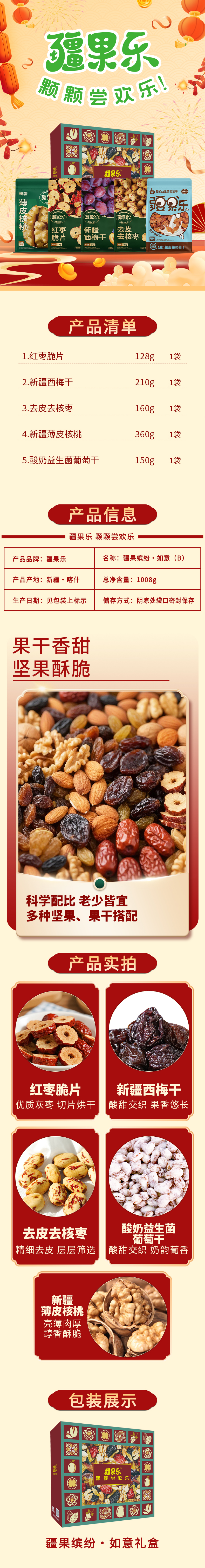【严选】疆果乐 新疆干果礼盒干货年货礼盒送礼长辈礼盒装 疆果缤纷·如意礼盒(B)1008g (厂家直发)