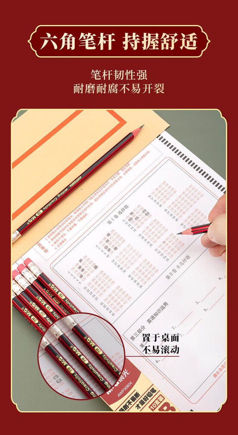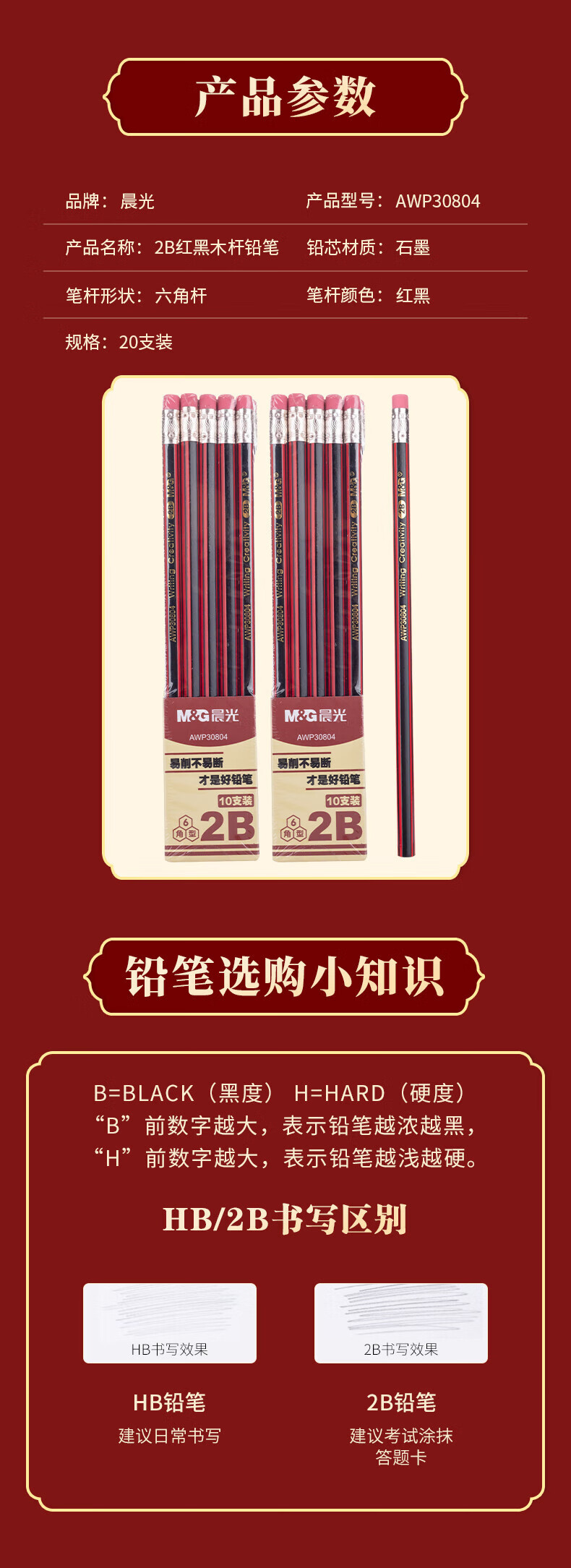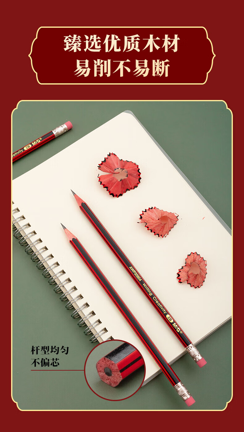 【班小二用户专享】晨光(M&G)2B铅笔经典红黑抽条六角木杆铅笔50支