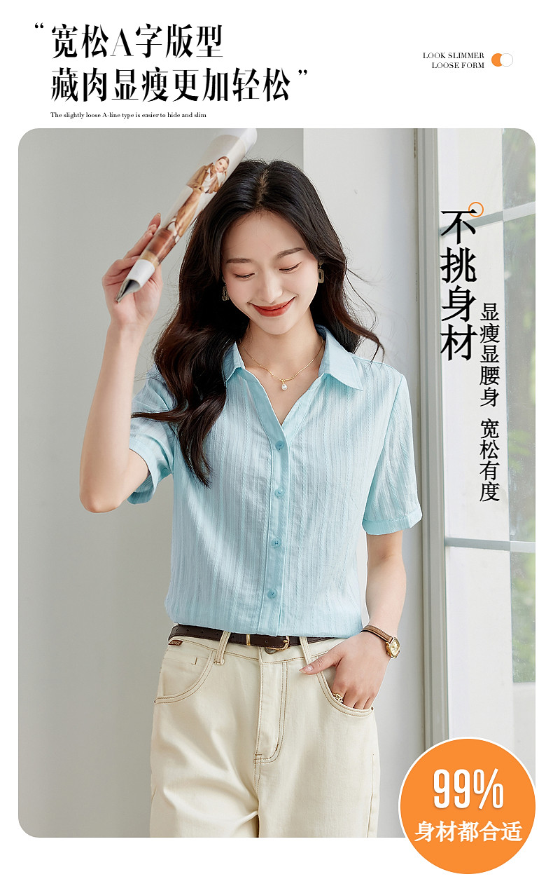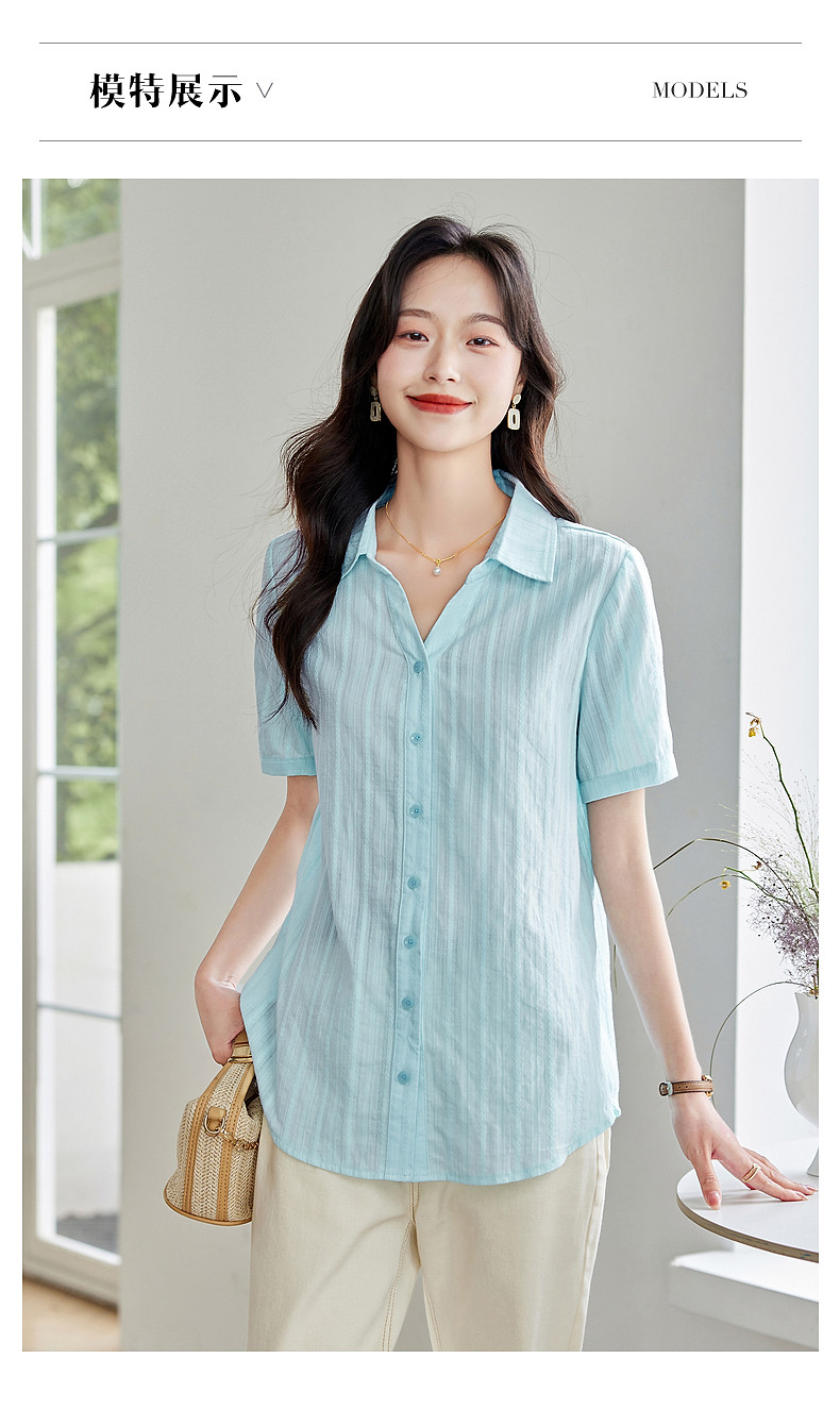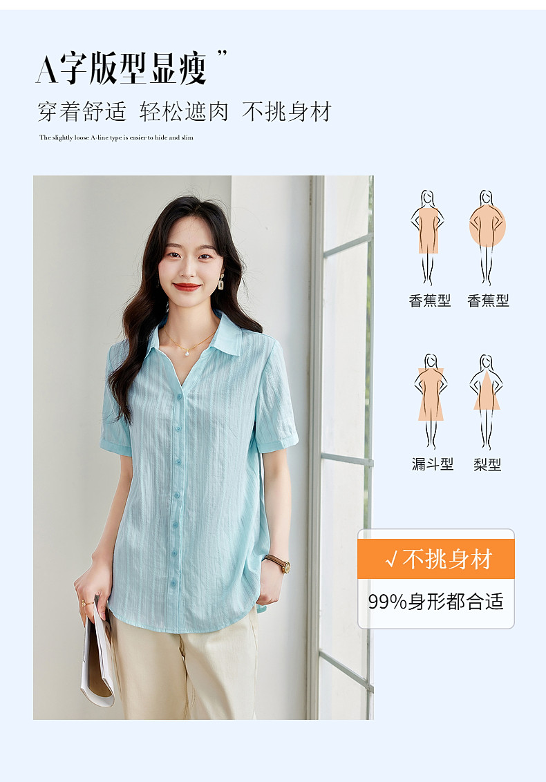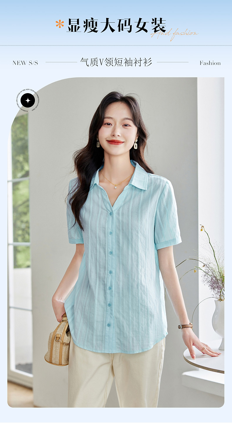 短袖衬衫女上衣夏季2025新款纯棉休闲衬衣中长款大码宽松半袖小衫
