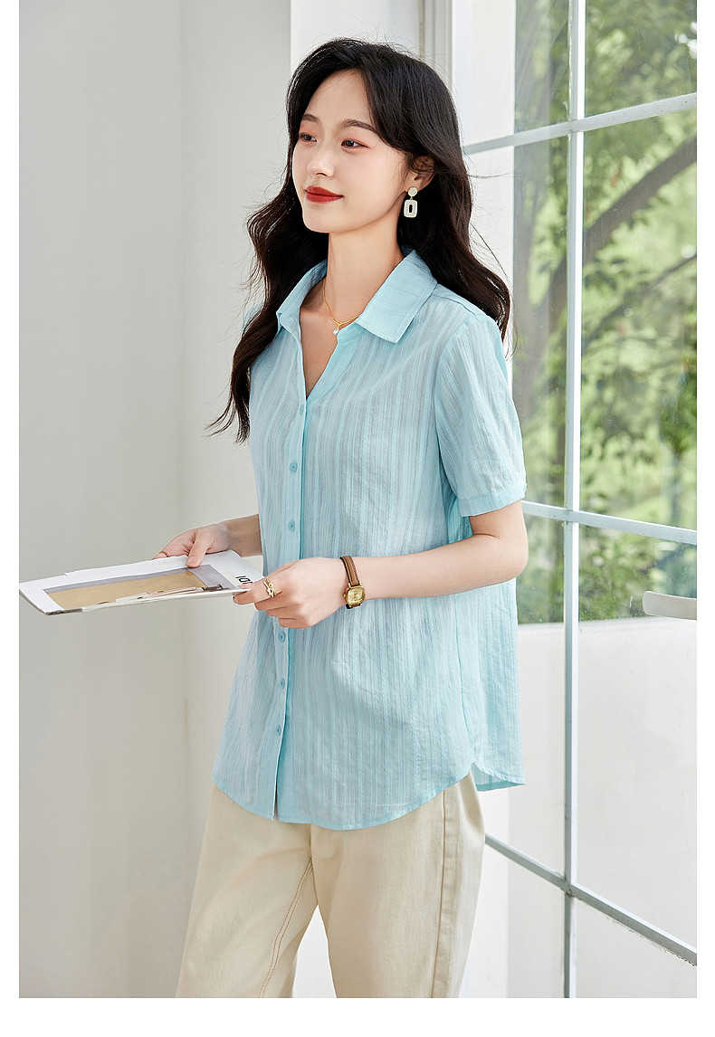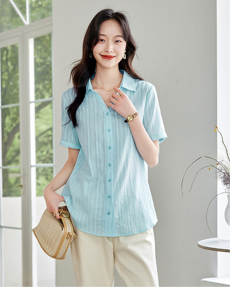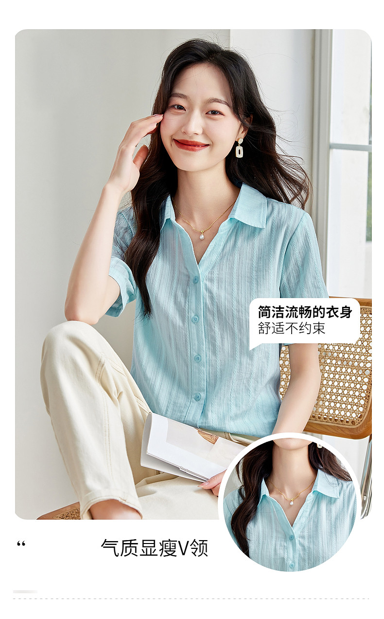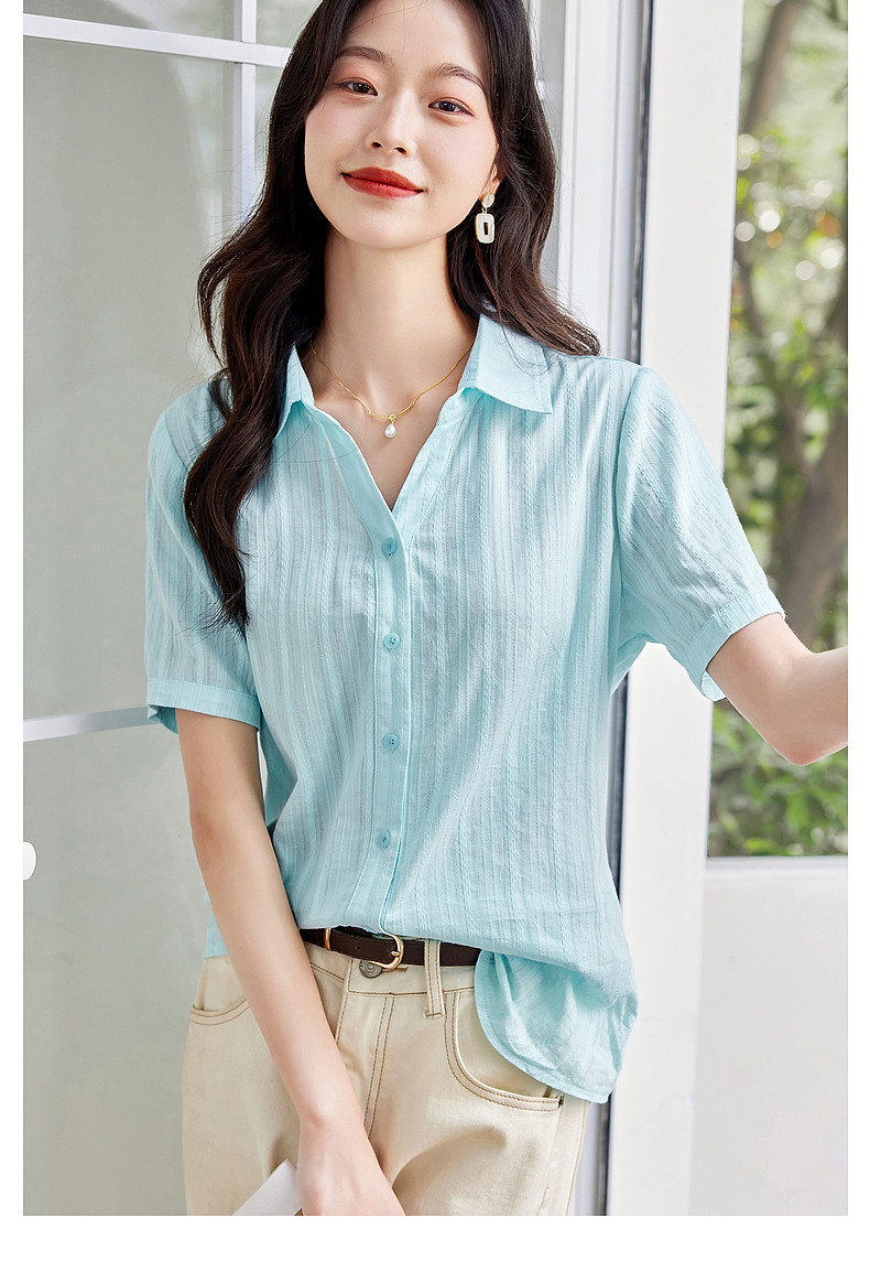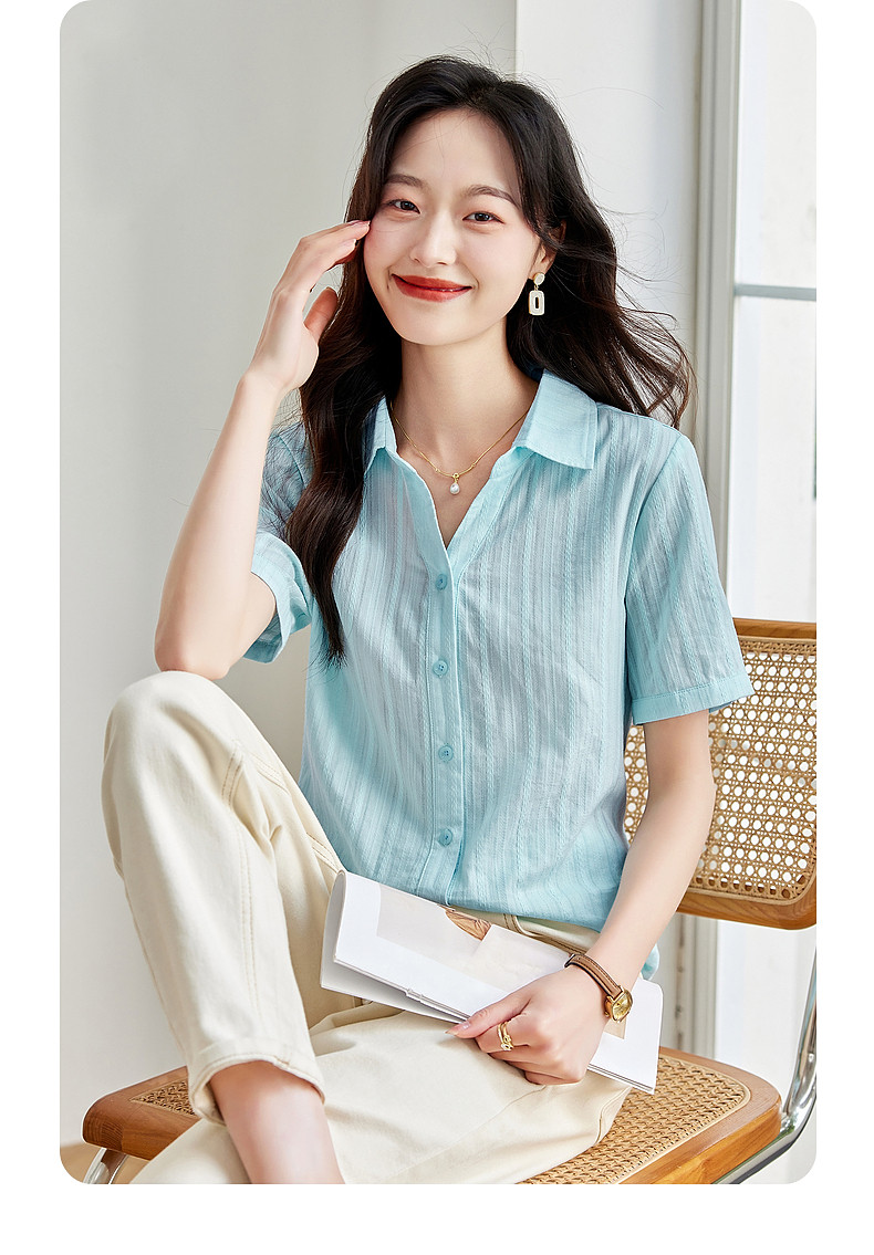 短袖衬衫女上衣夏季2025新款纯棉休闲衬衣中长款大码宽松半袖小衫