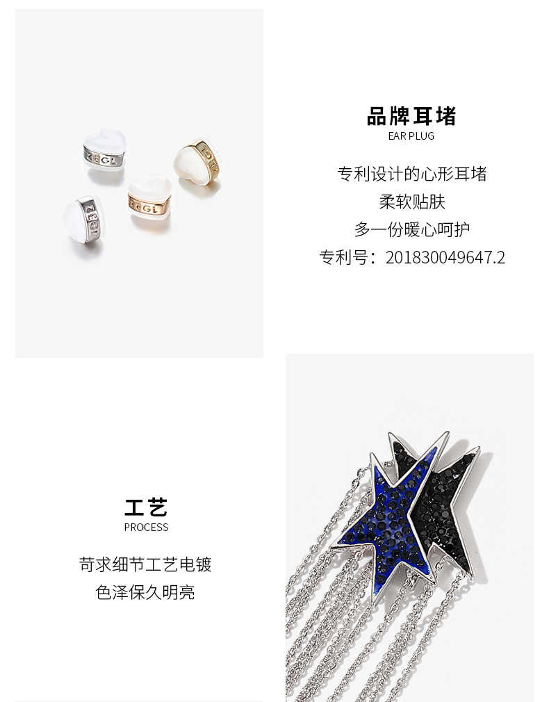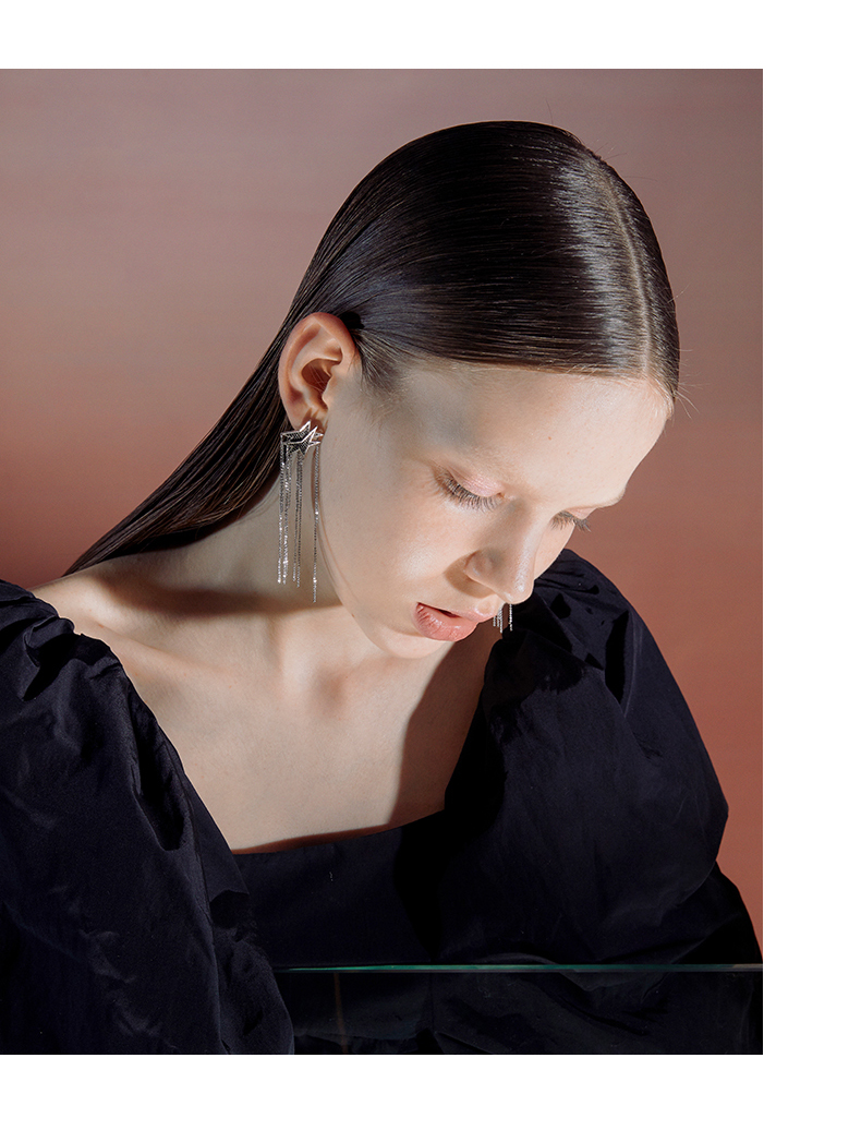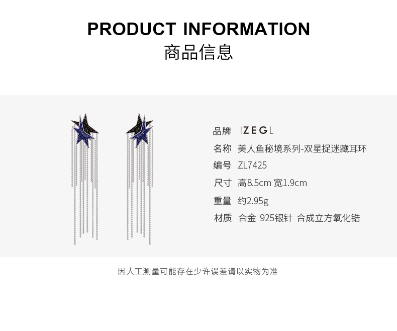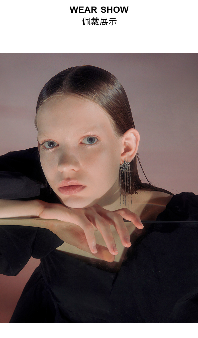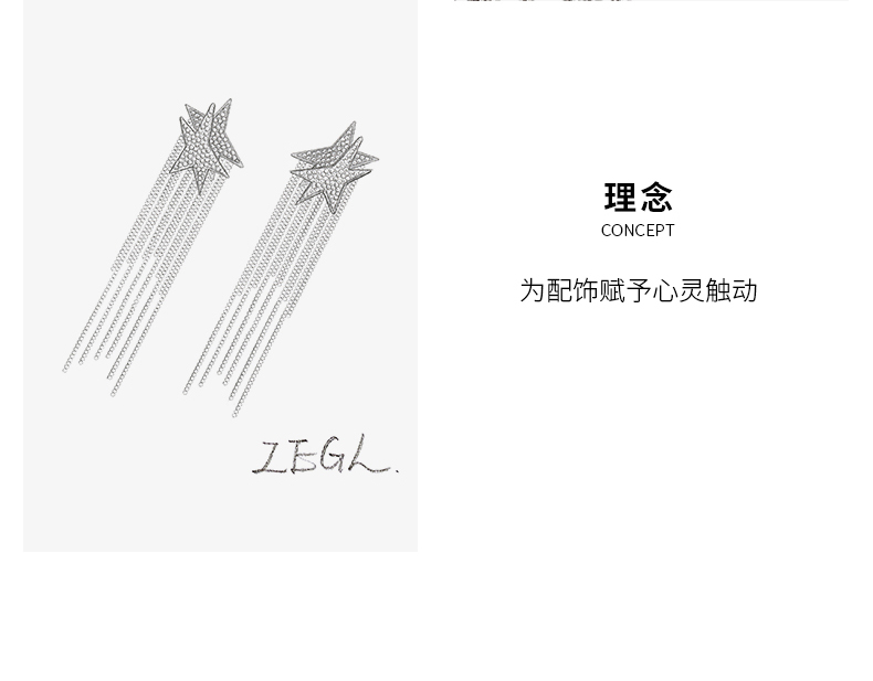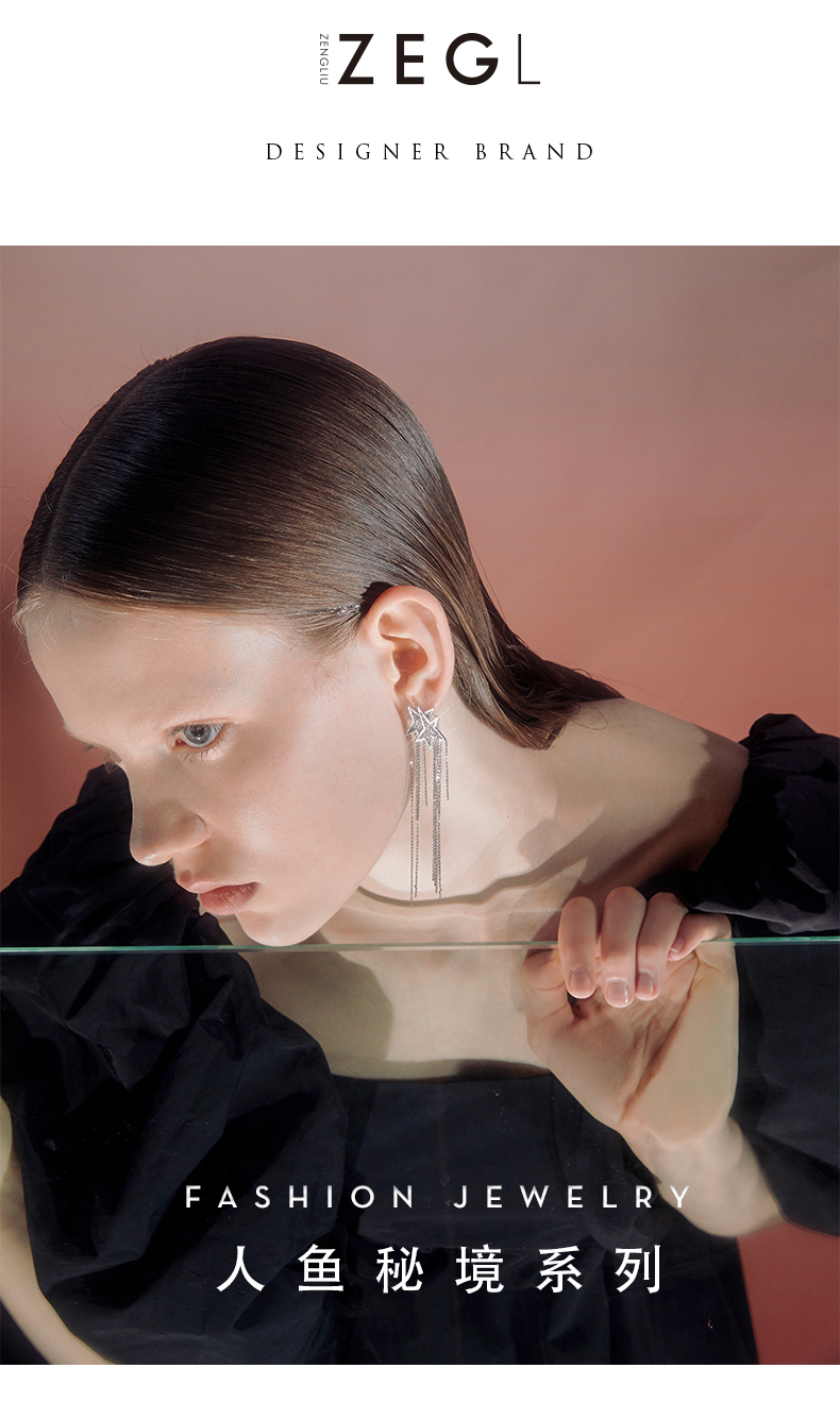 ZEGL设计师美人鱼耳环女气质长款流苏耳坠星星耳钉耳饰2021年新款