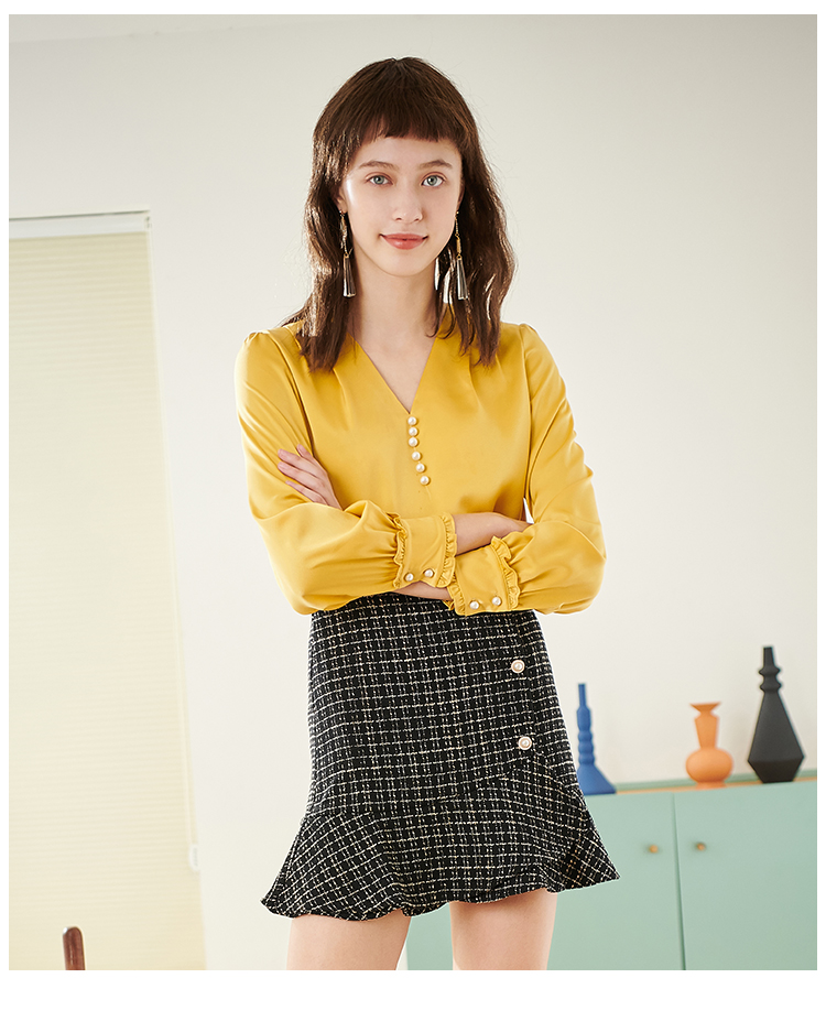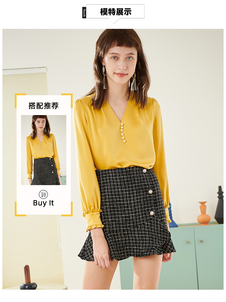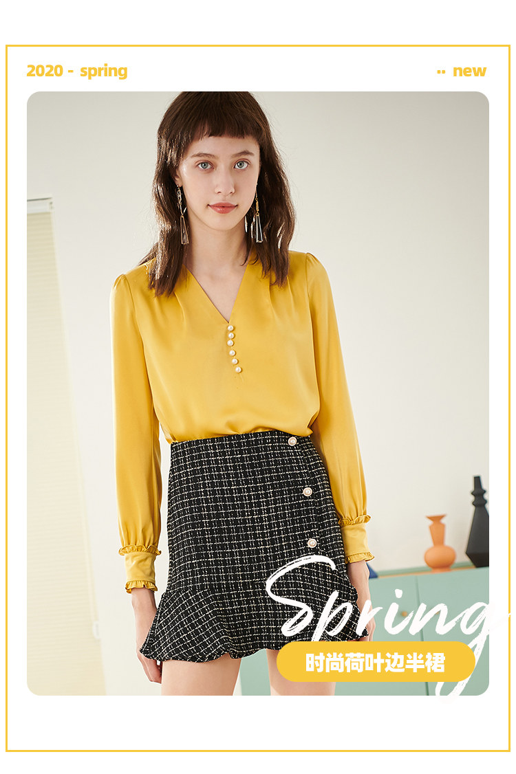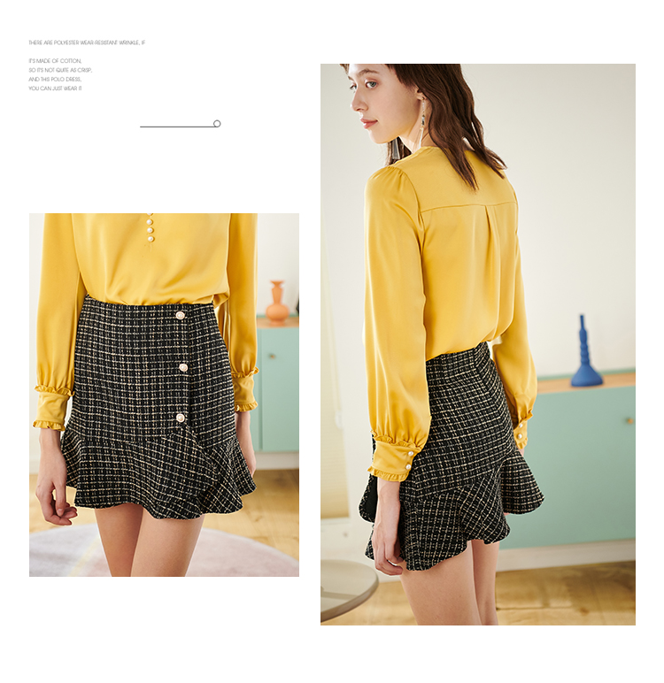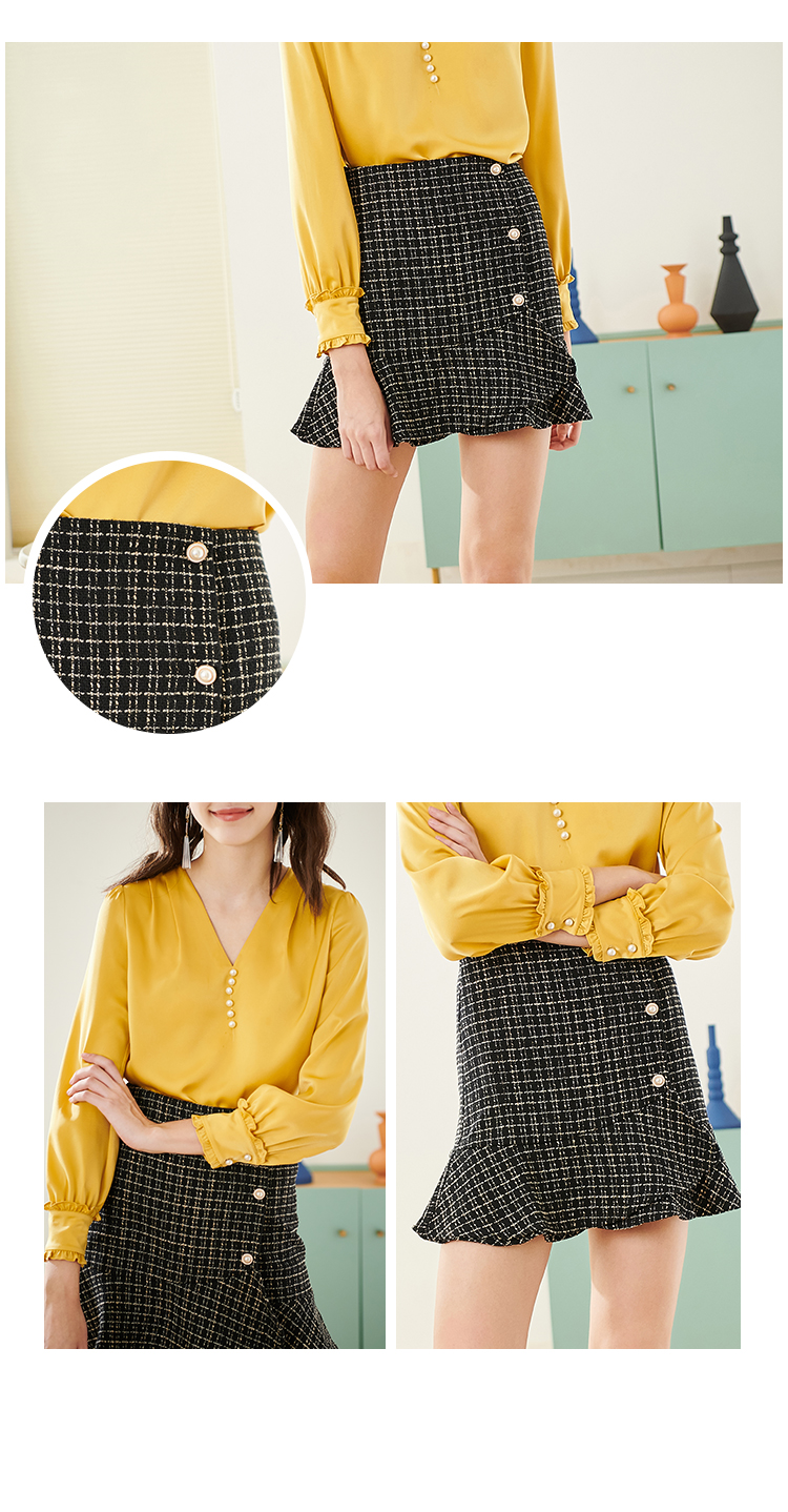 欧芮儿春新款高腰显瘦格子半身裙女小香风短裙不规则鱼尾裙
