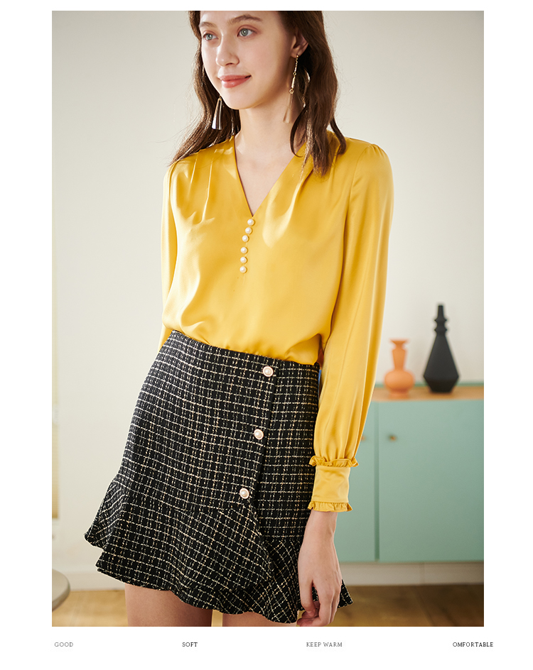 长袖衬衫女2022秋季新款印花法式缎面衬衣设计感小众波点上衣轻熟