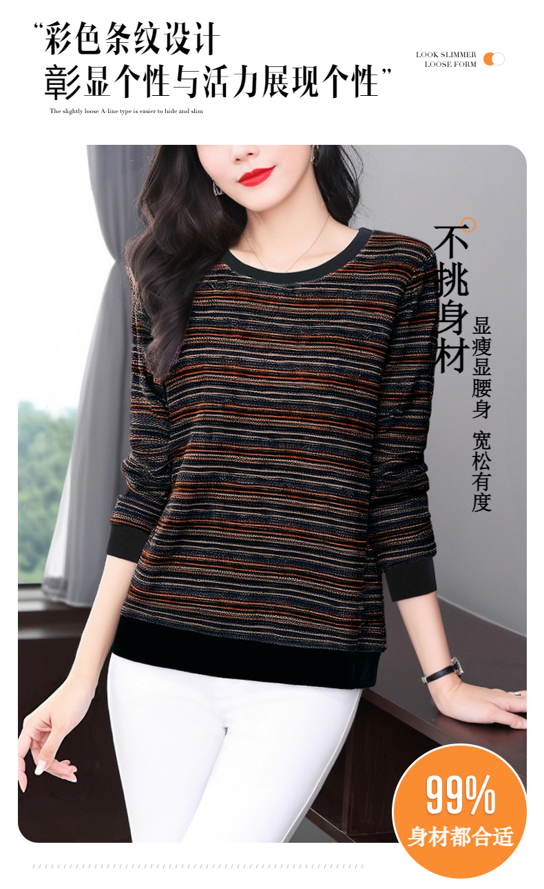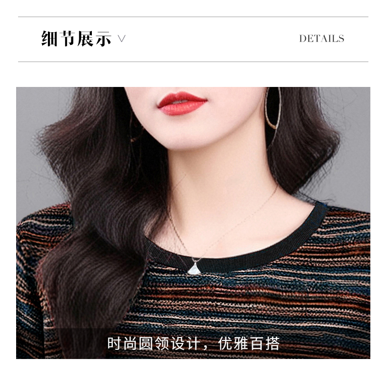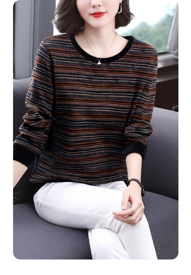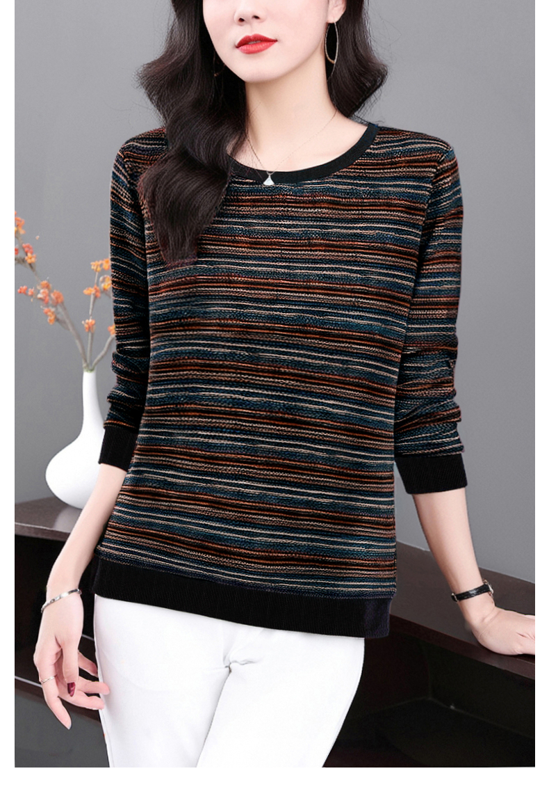 德绒长袖t恤女中年妈妈春秋新款上衣大码秋衣外穿条纹低领打底衫