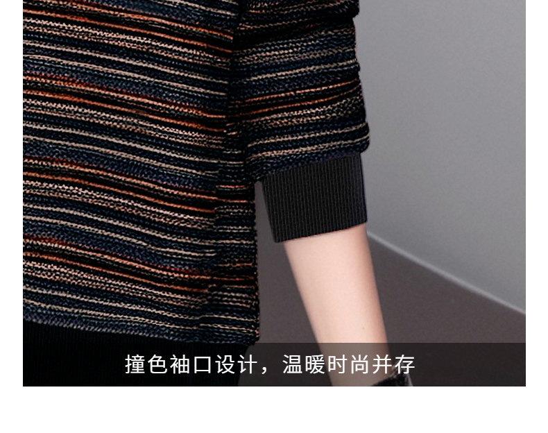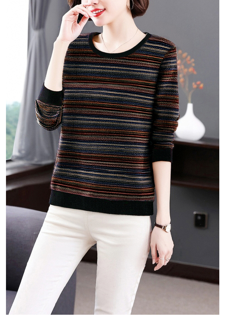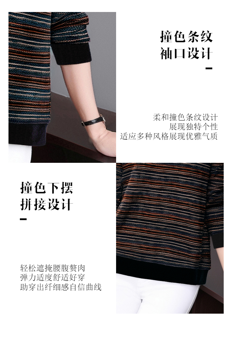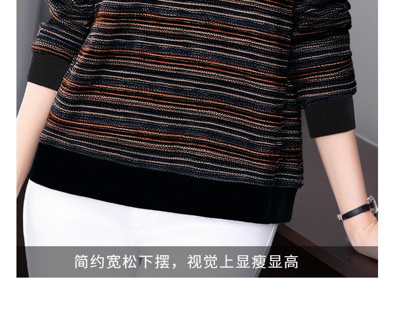 德绒长袖t恤女中年妈妈春秋新款上衣大码秋衣外穿条纹低领打底衫