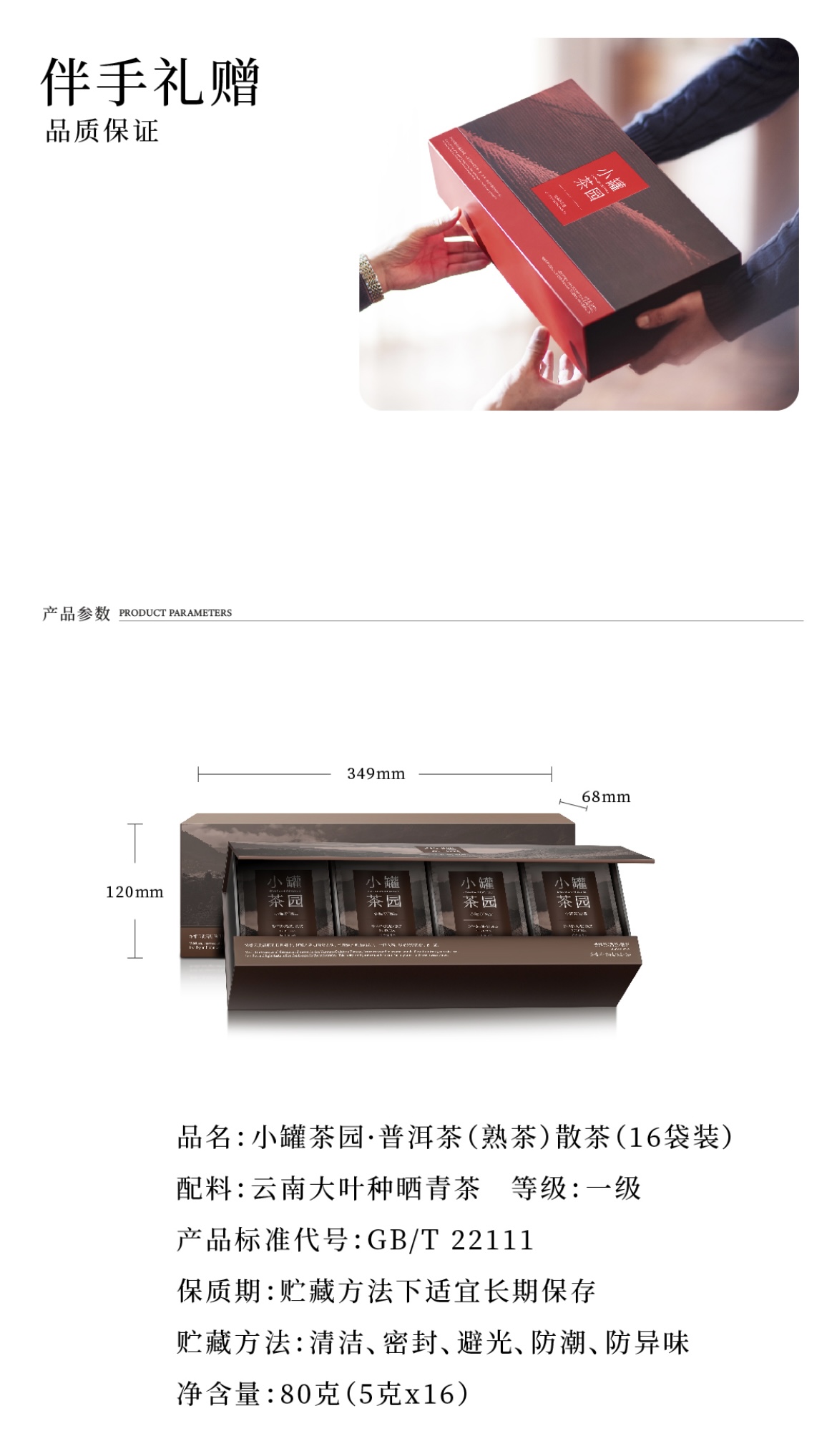 小罐茶园普洱茶(熟茶)散茶16袋装