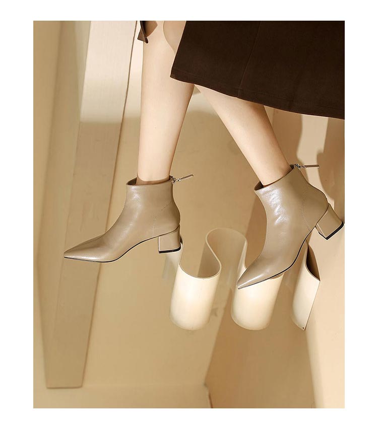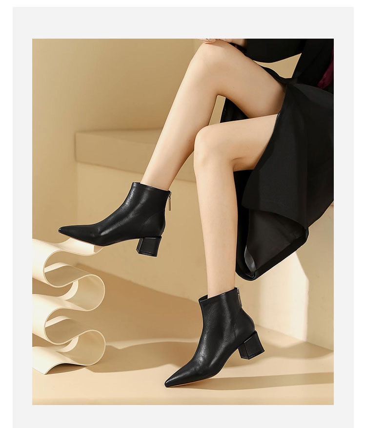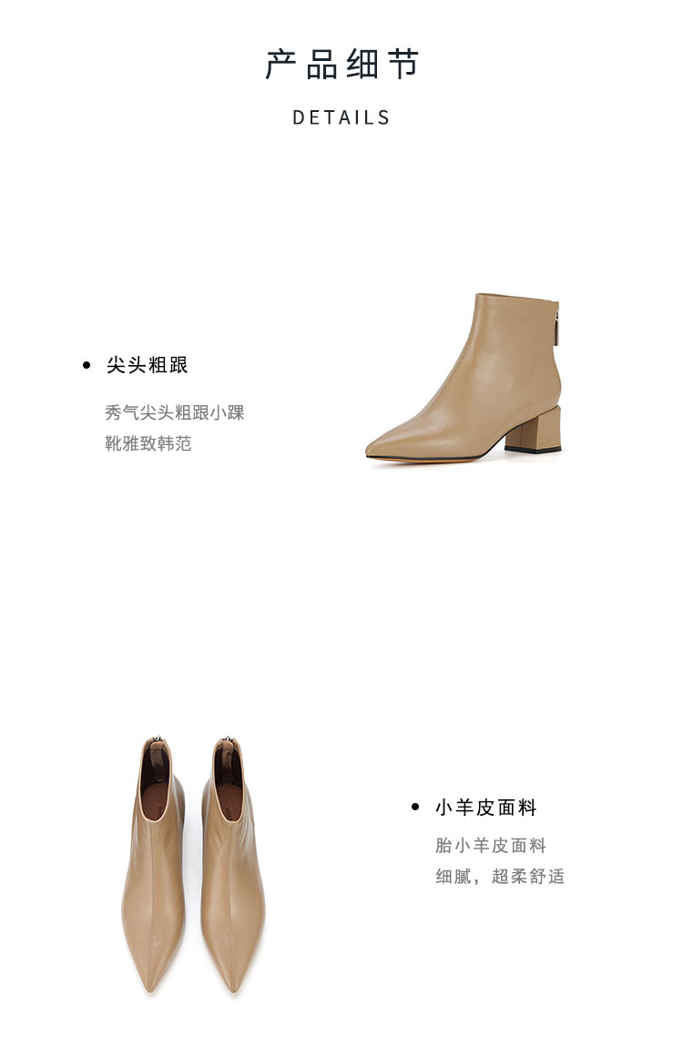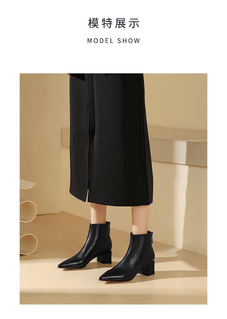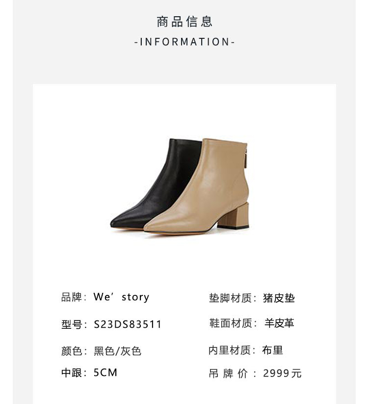 westory2023年秋季新品欧美优雅气质尖头靴中跟短靴女靴S23DS83521