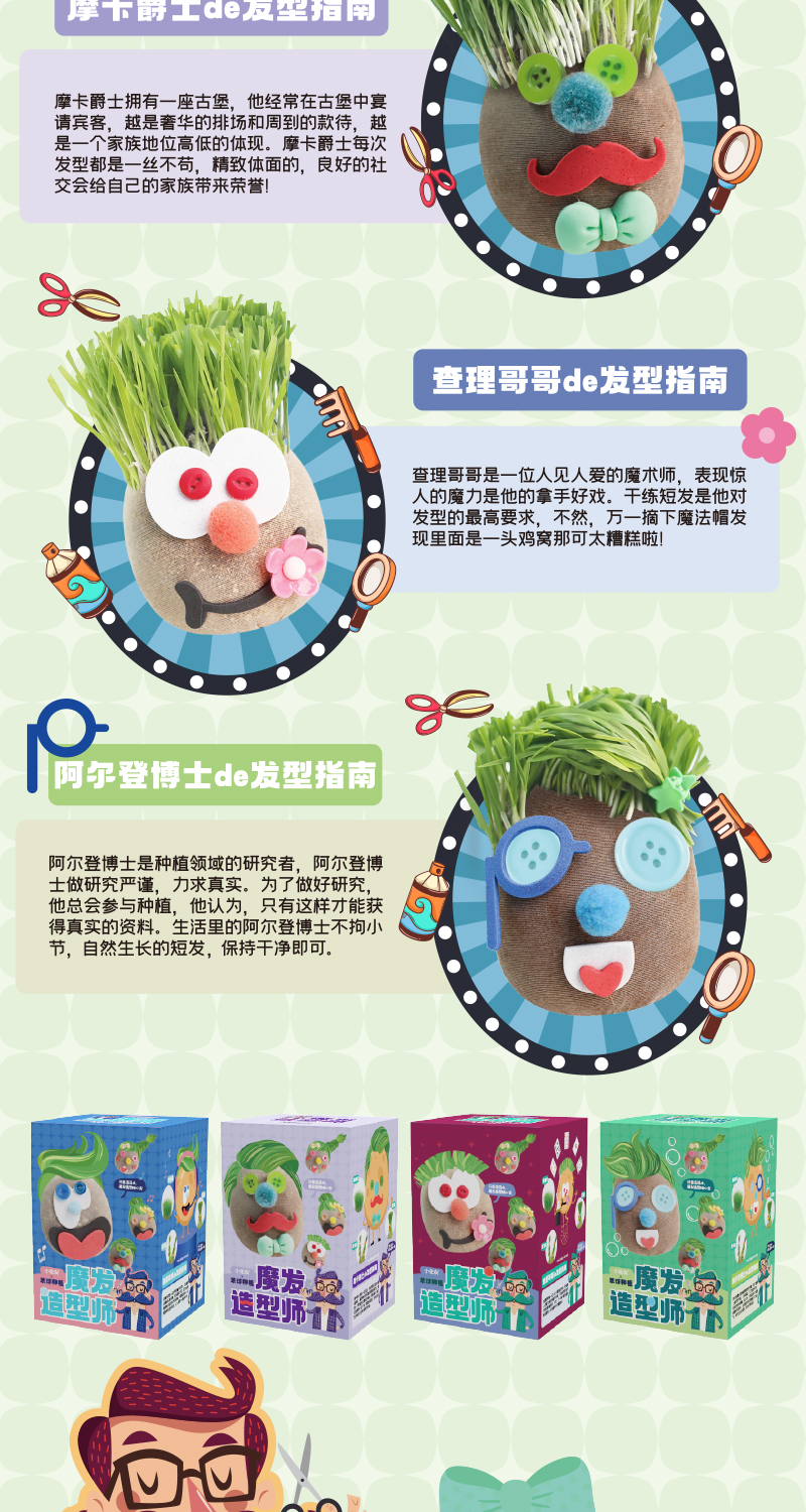 小花农魔发造型师创意DIY幼儿园学校儿童小盆栽植物栽培草头娃娃