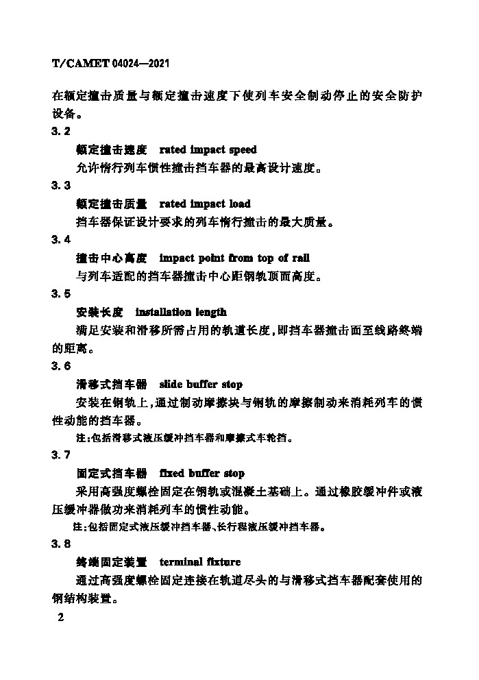 15113.6486 城市轨道交通挡车器通用技术规范(T/CAMET 04024—2021)