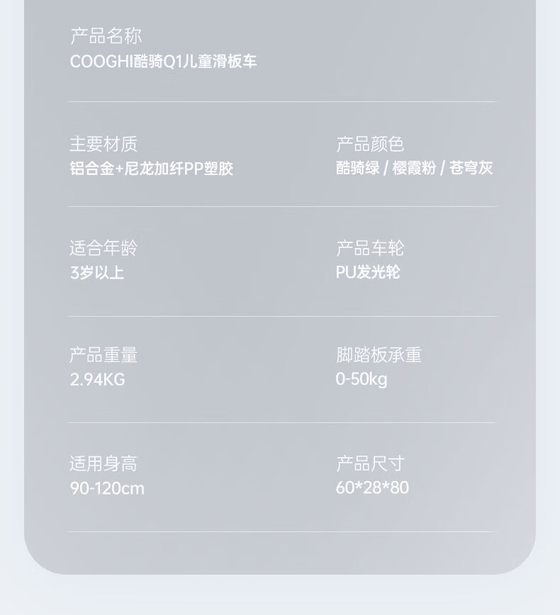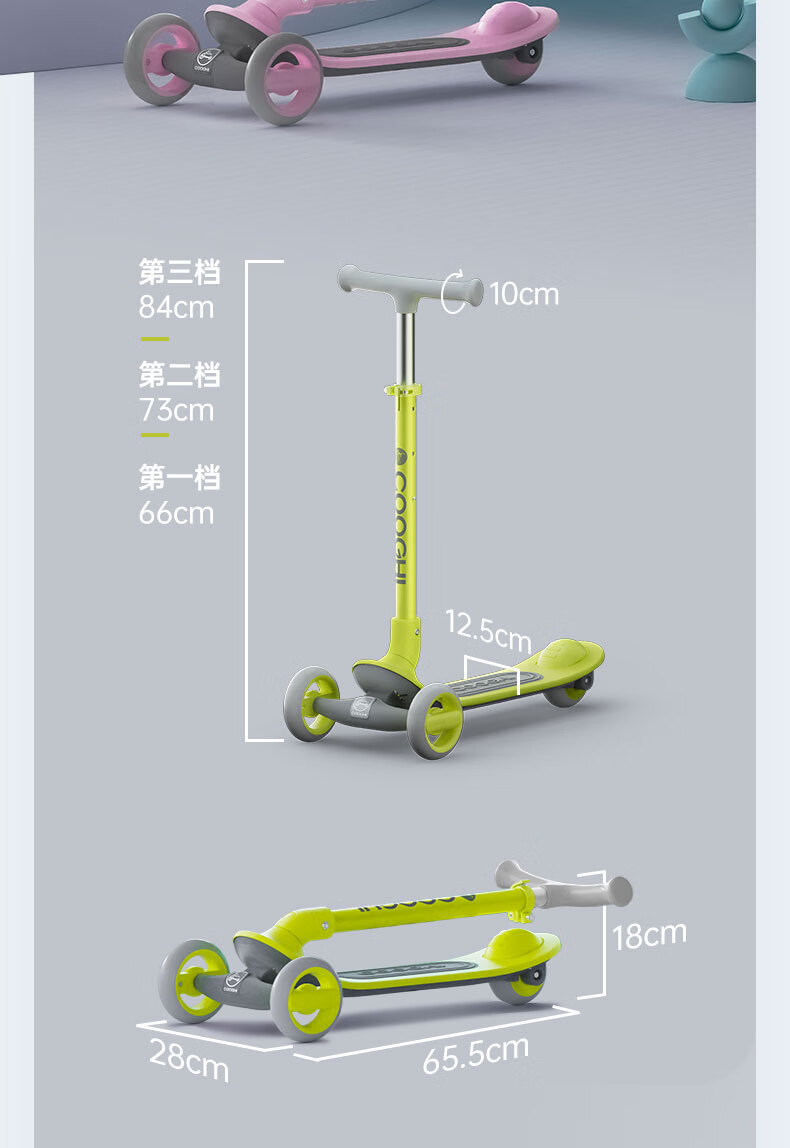 酷骑(COOGHI)酷奇 可折叠儿童滑板车2-3-6岁大童Q1发光款 KQ
