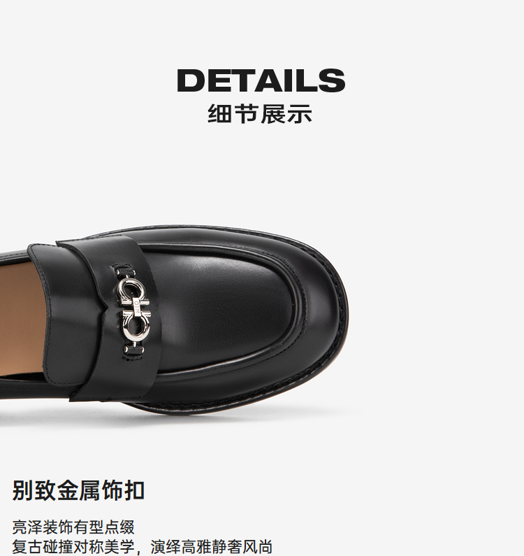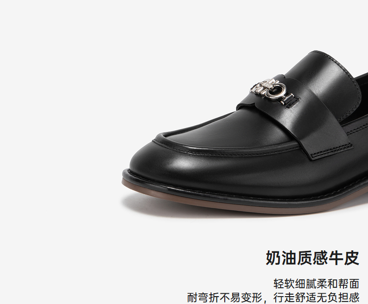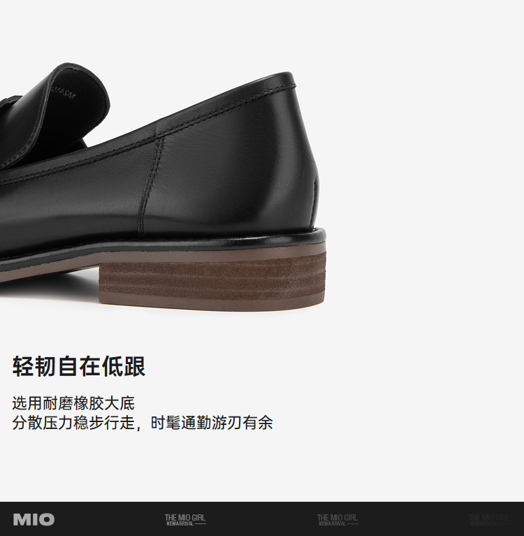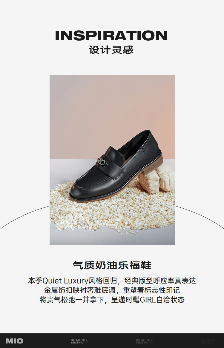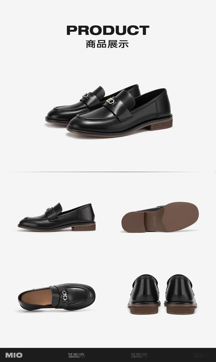MIO米奥春季纯色低跟乐福鞋金属饰扣复古时尚质感单鞋女鞋M241539092