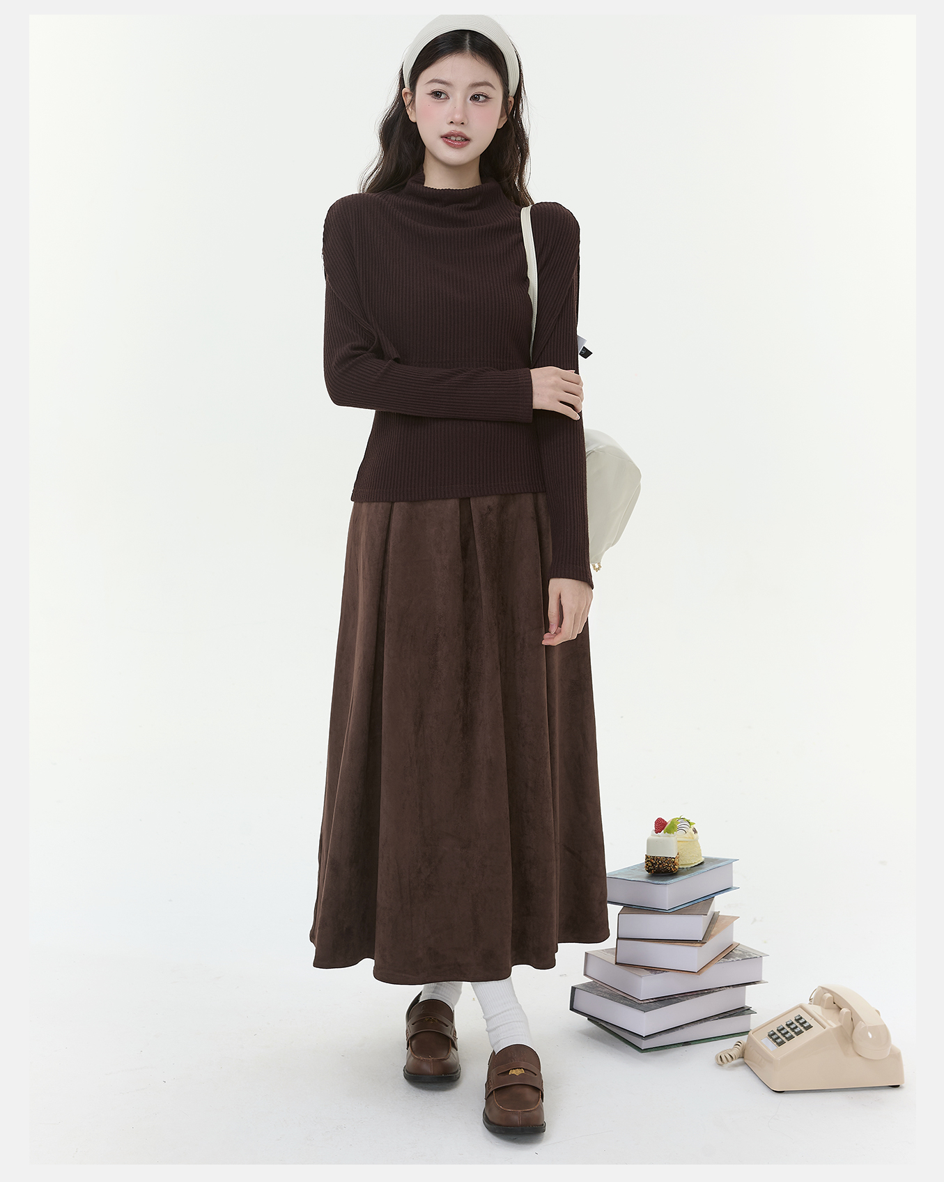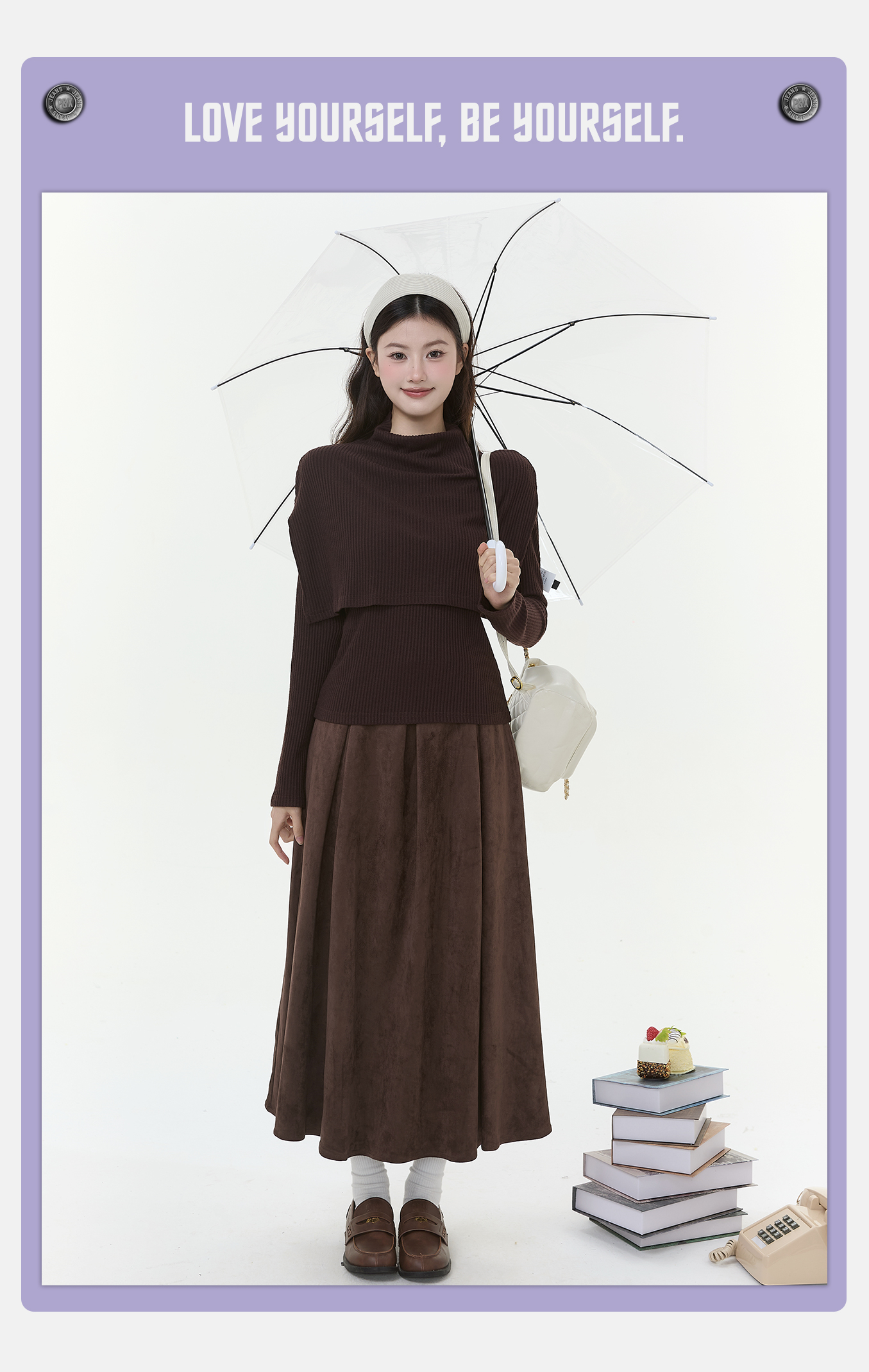 P&X设计师女装2025冬季收腰轻职风时尚套装长裙825414191 咖色