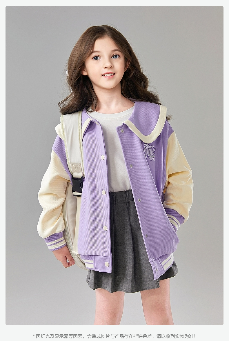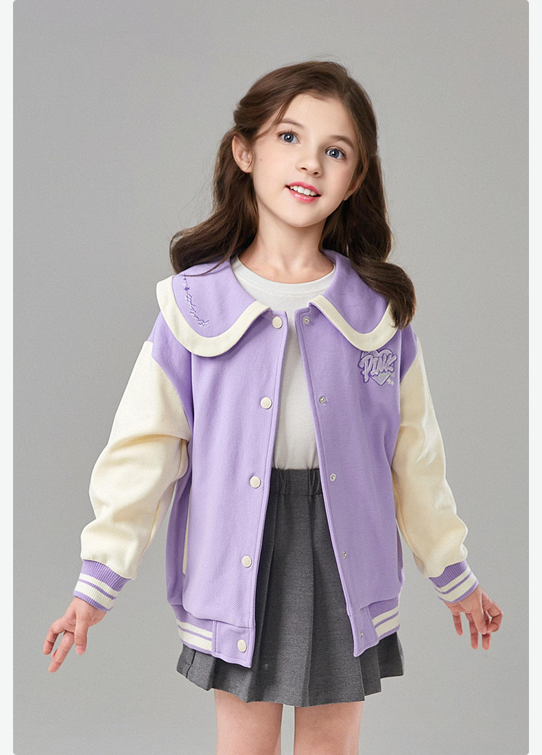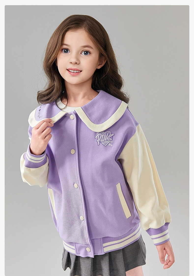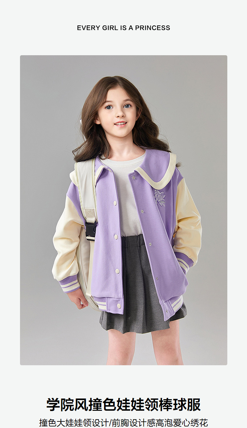 笛莎Deesha 童装女童外套2025春新款学院风撞色娃娃领棒球服